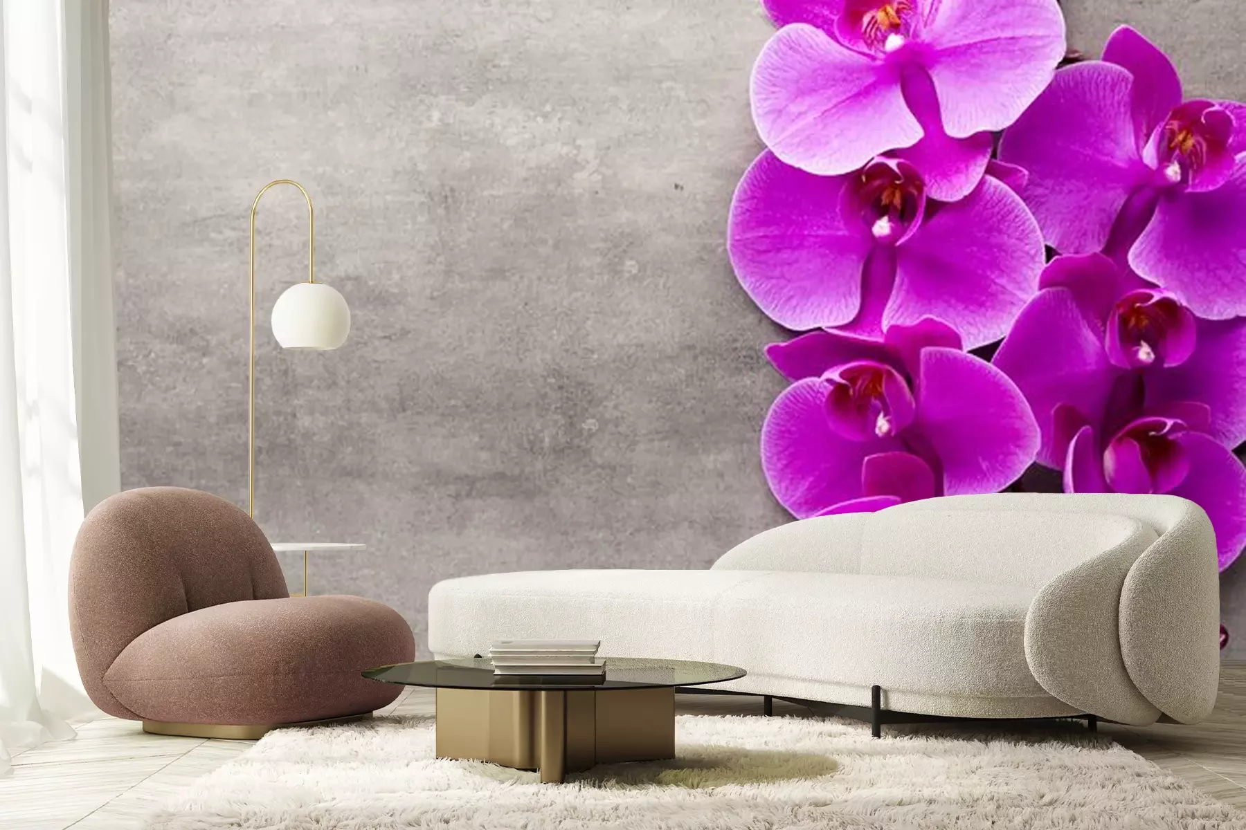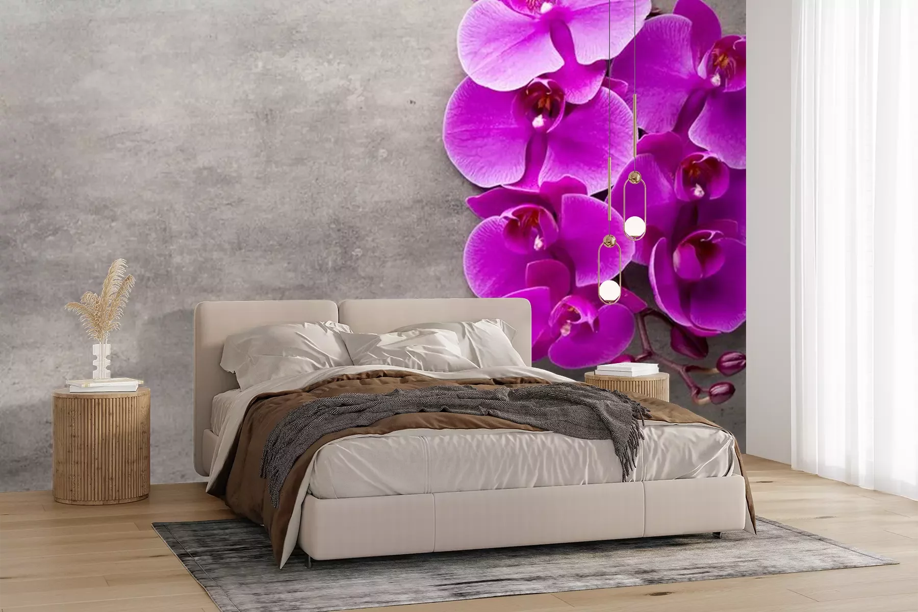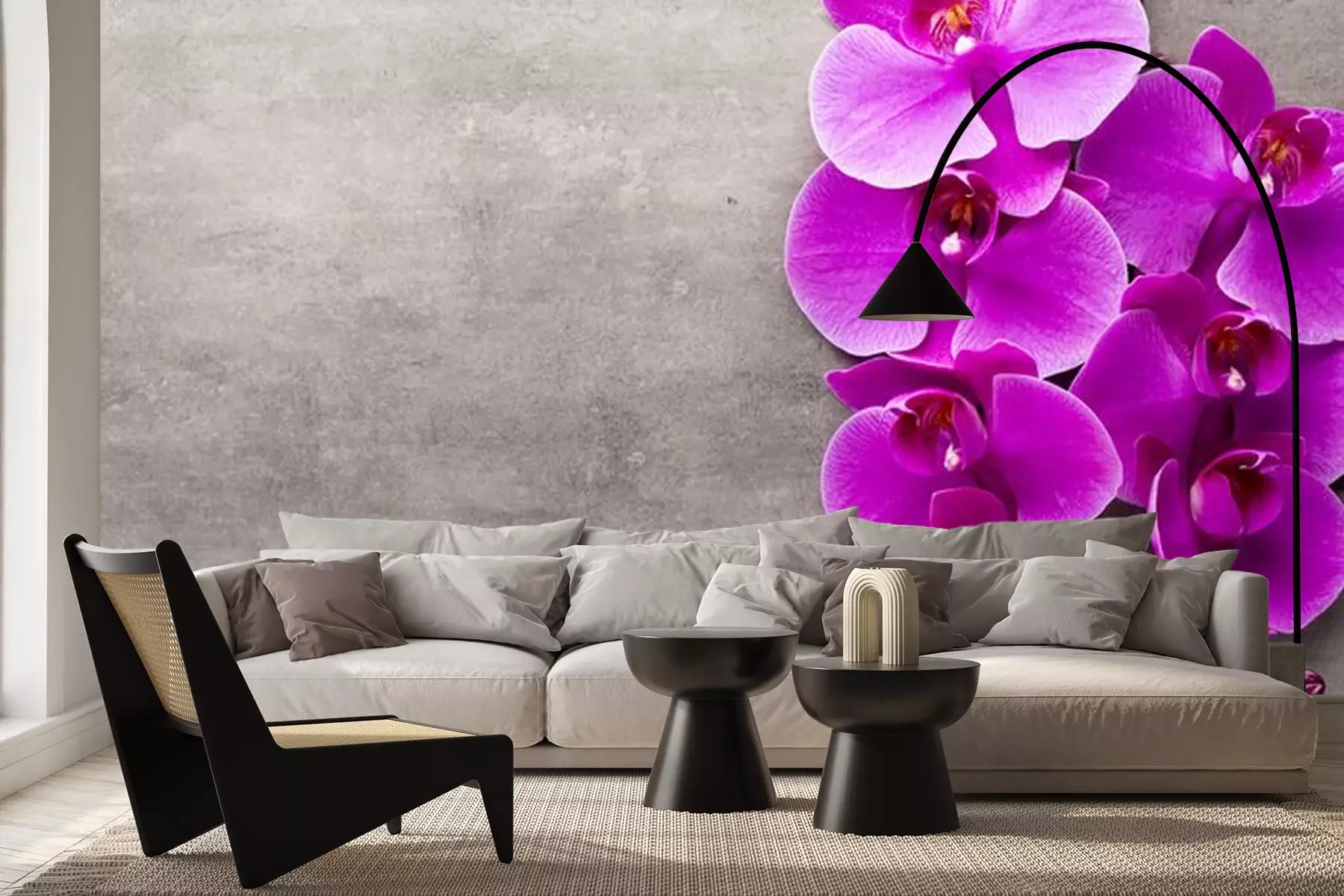 Orchidée blanche sur béton grisLivraison sans problème assurée par des transporteurs de confiance