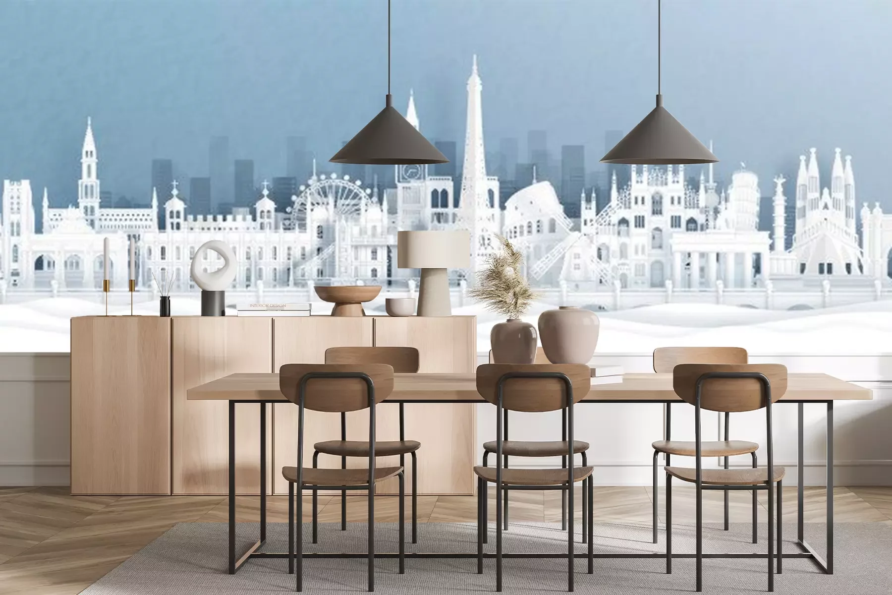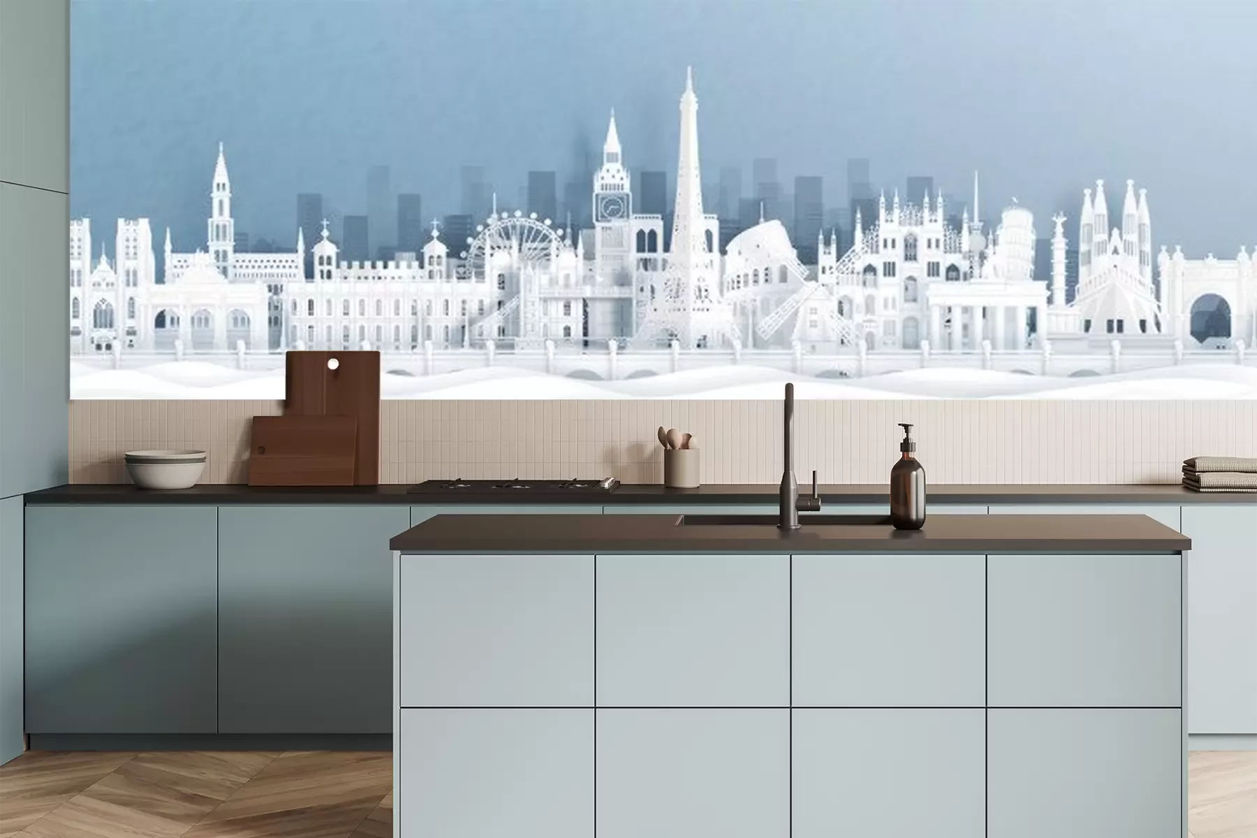 Sticker  Panorama postcard and travel poster of world famous landmarks of europe, Holland, France, Germany, Belgium, Spain and England in paper cut style vector illustration