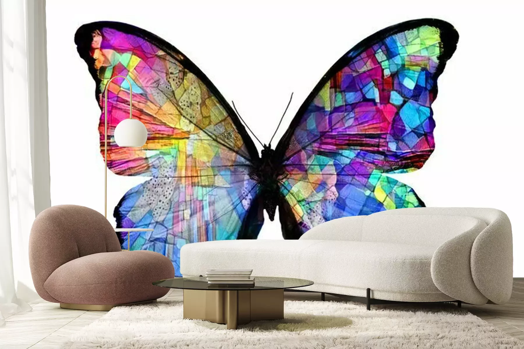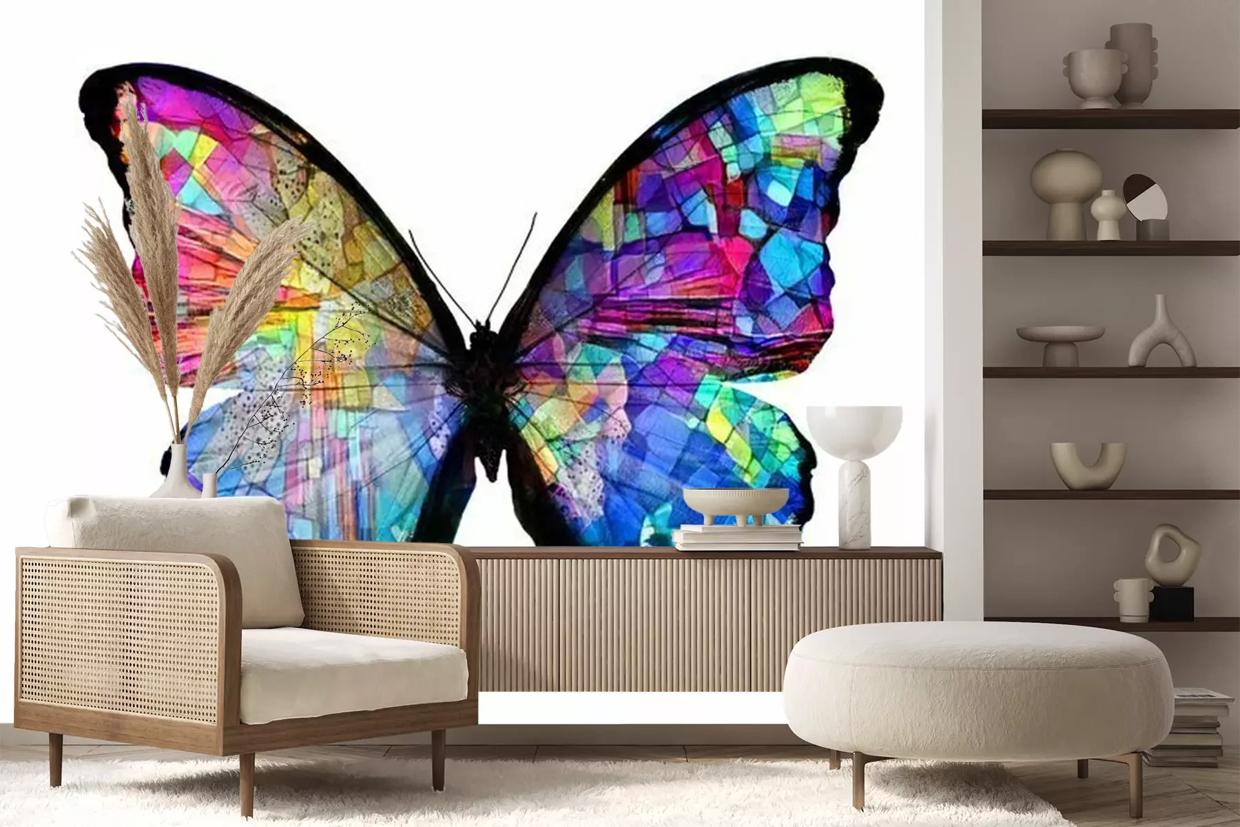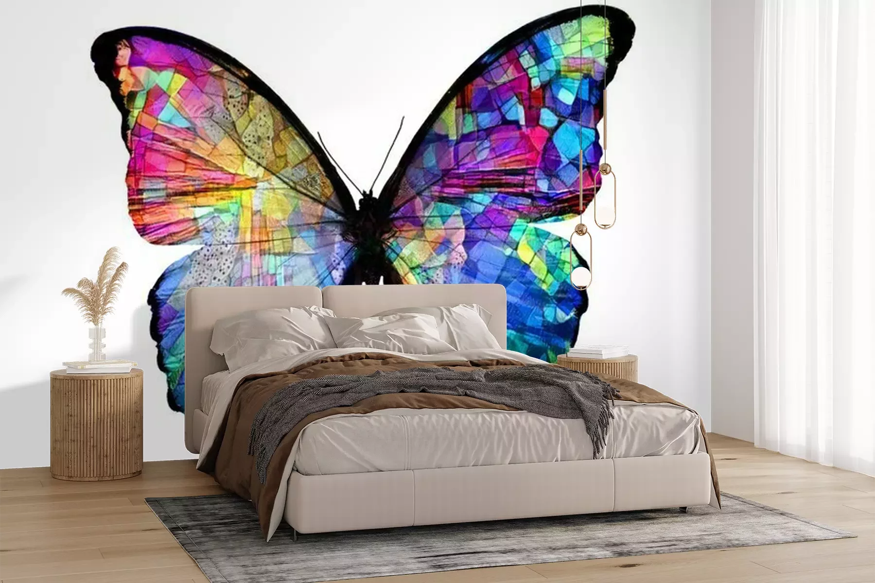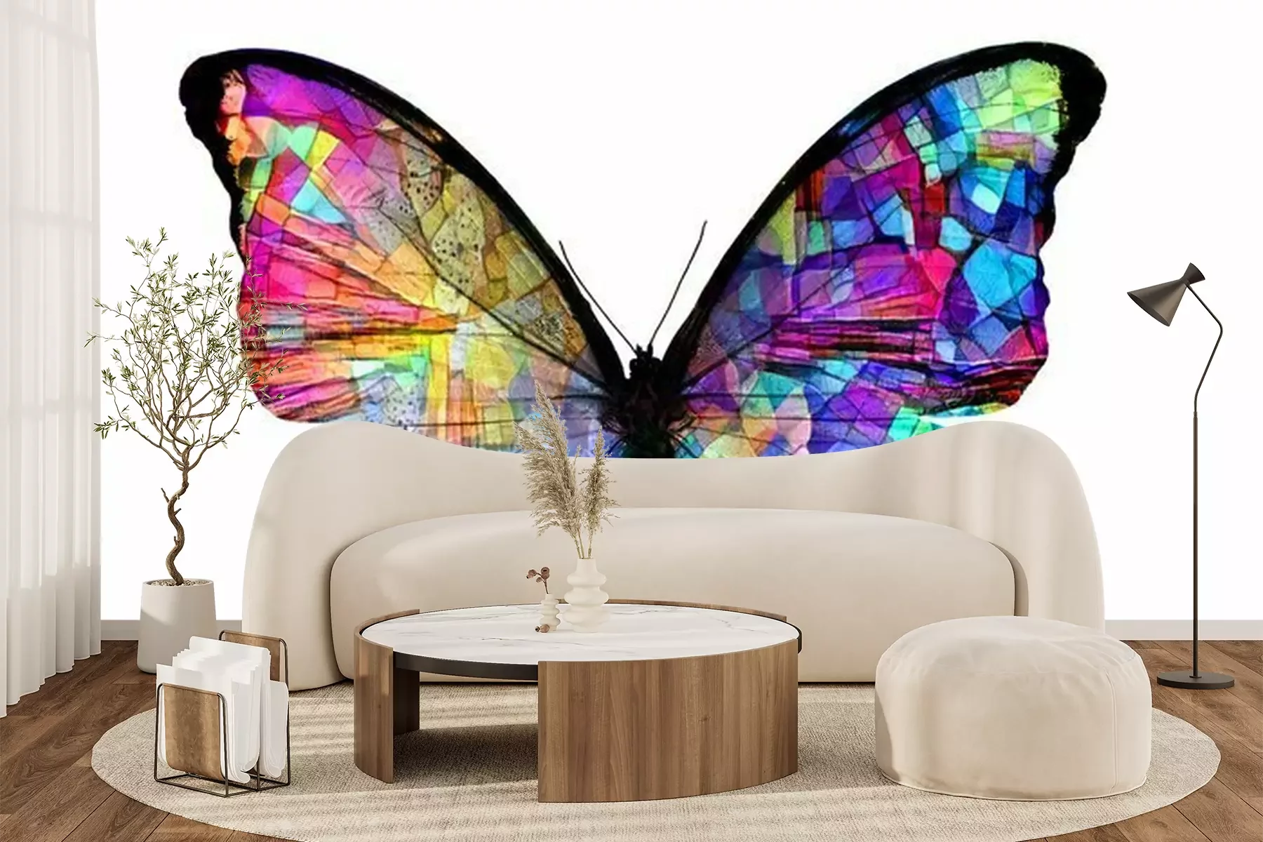 Sticker  Papillon avec des mosaïques arc-en-ciel sur les ailes