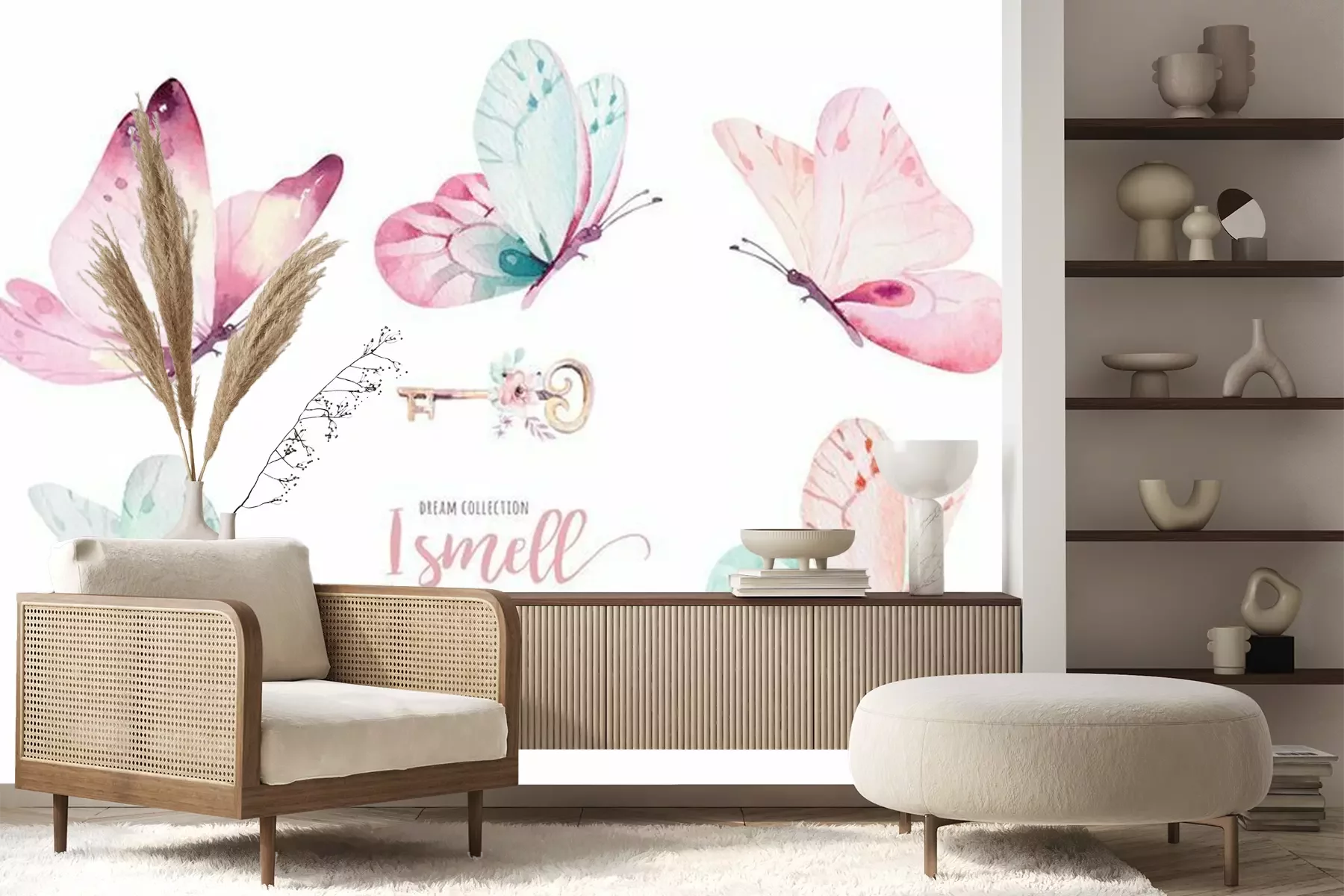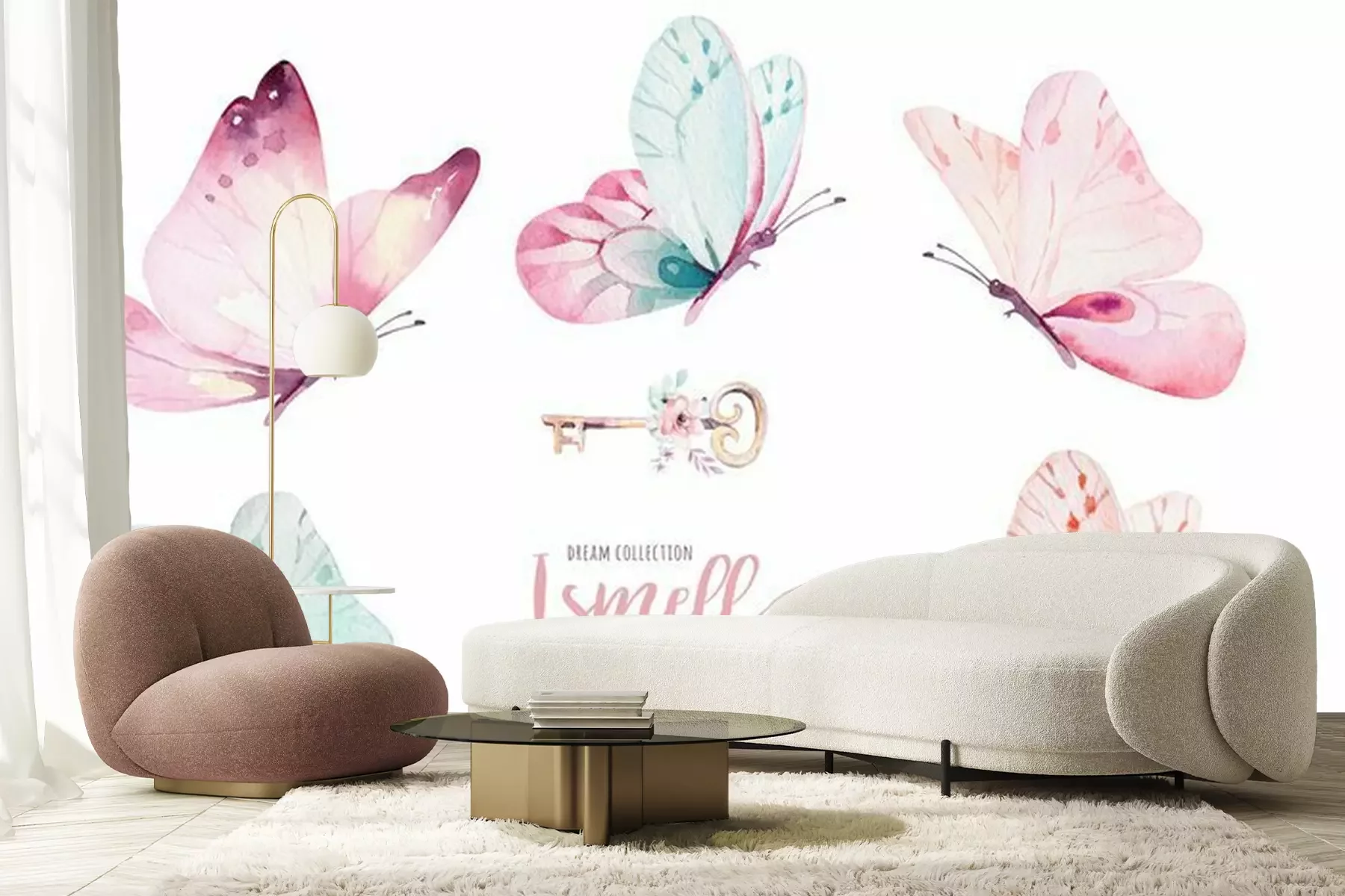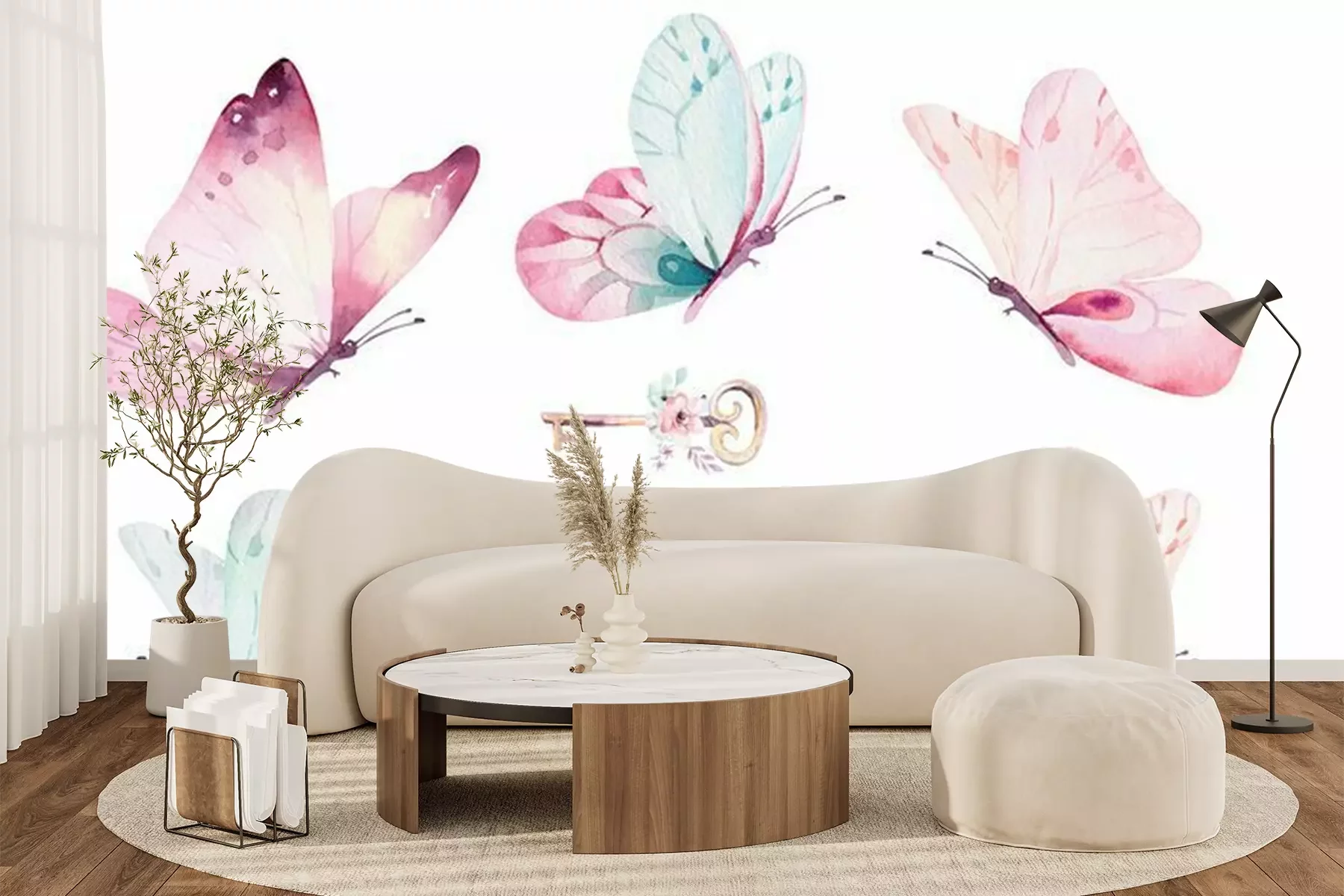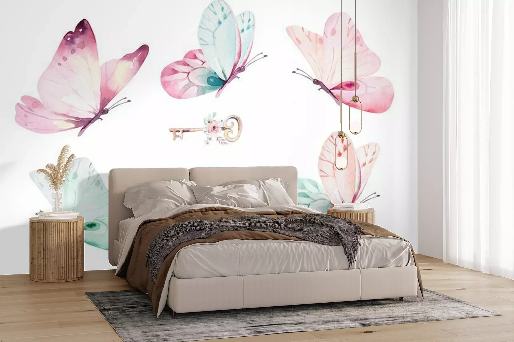 Sticker  Papillons colorés aquarelles, isolés sur fond blanc. illustration de papillon bleu, jaune, rose et rouge.