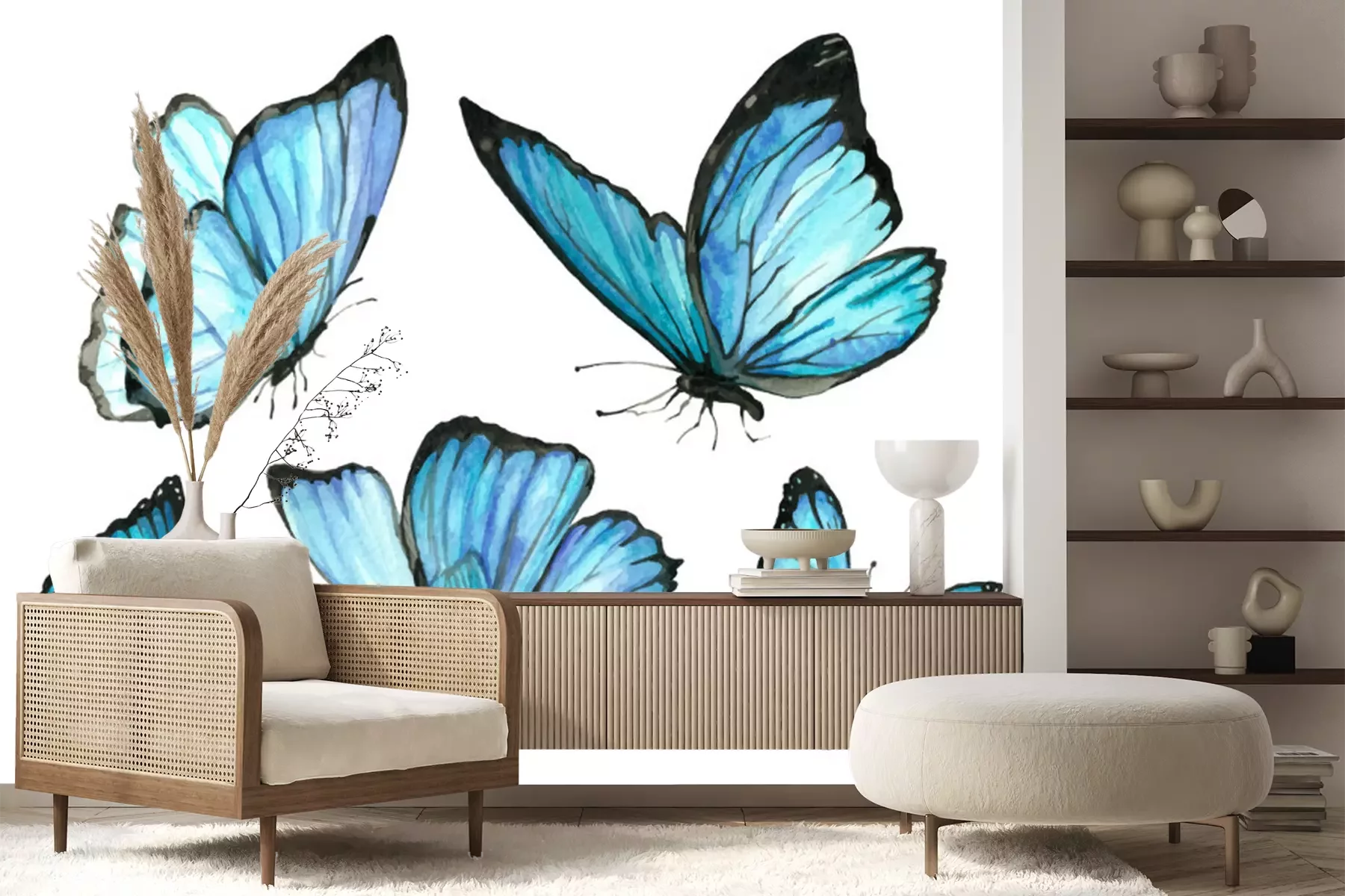 Sticker  Papillons tropicaux aux ailes bleu clair