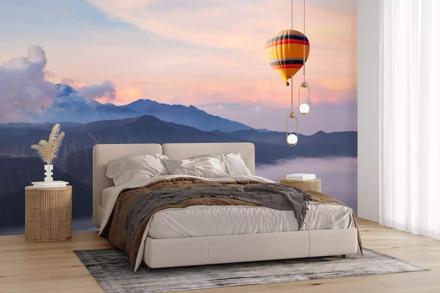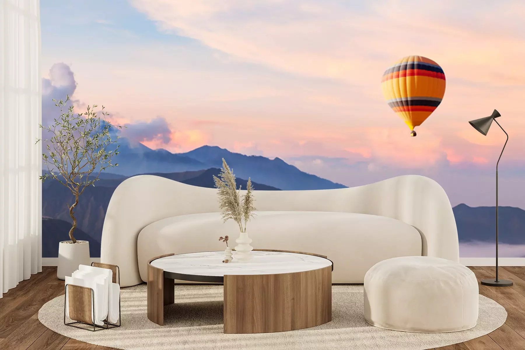 Sticker  Paysage de montagne avec une montgolfière en plein vol