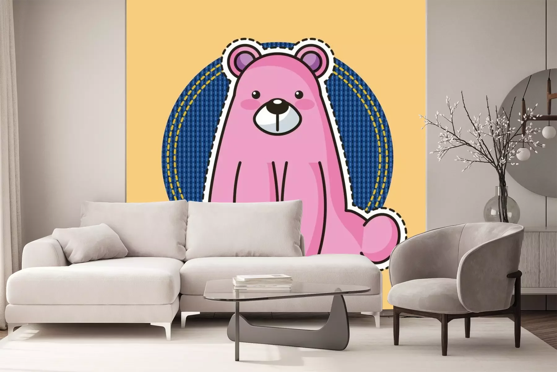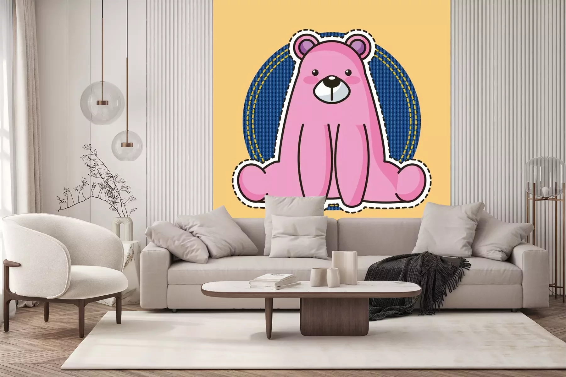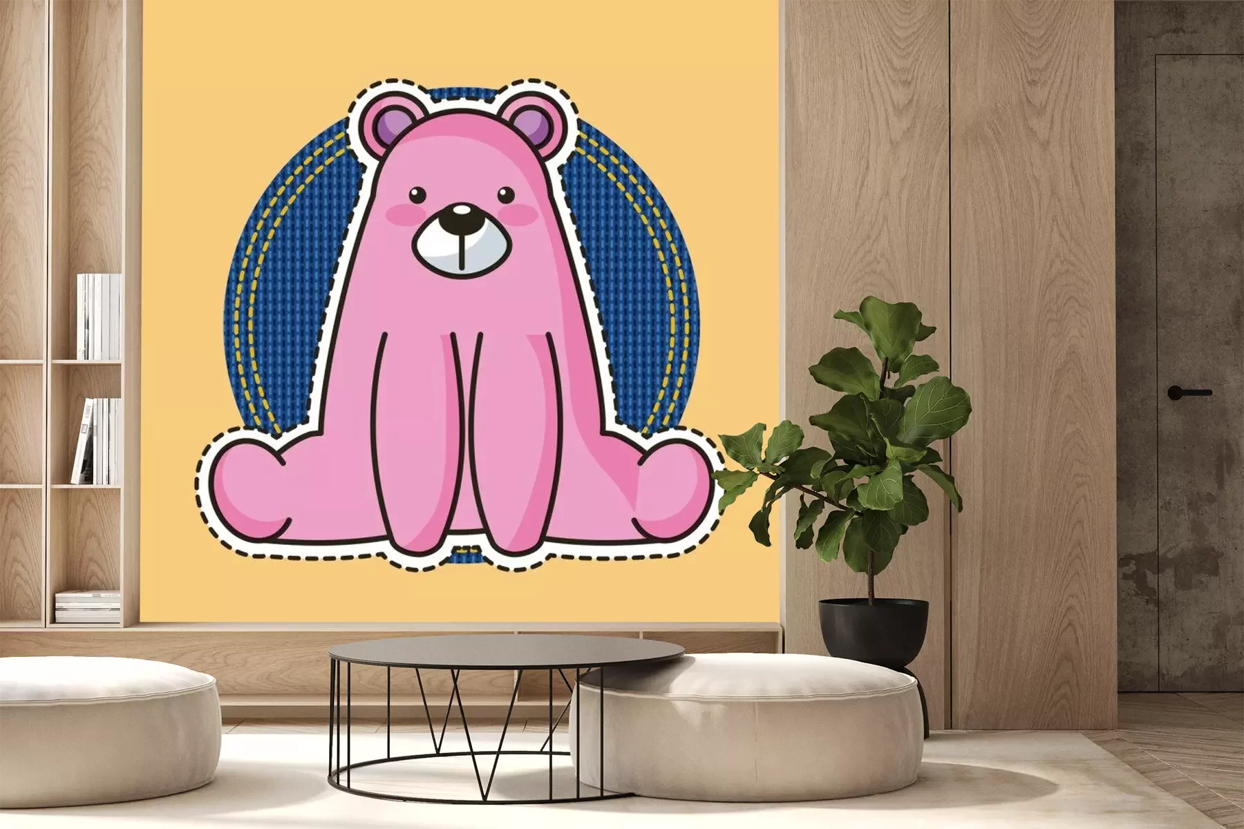 Sticker  pink bear teddy sit patch sticker fashion vector illustration