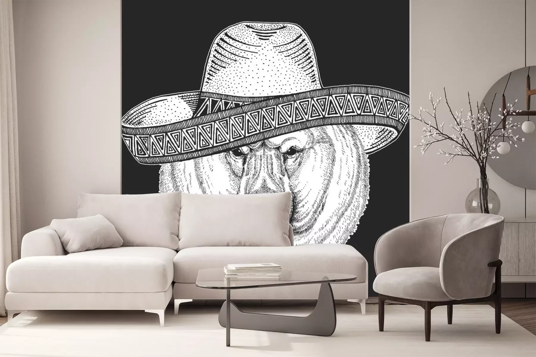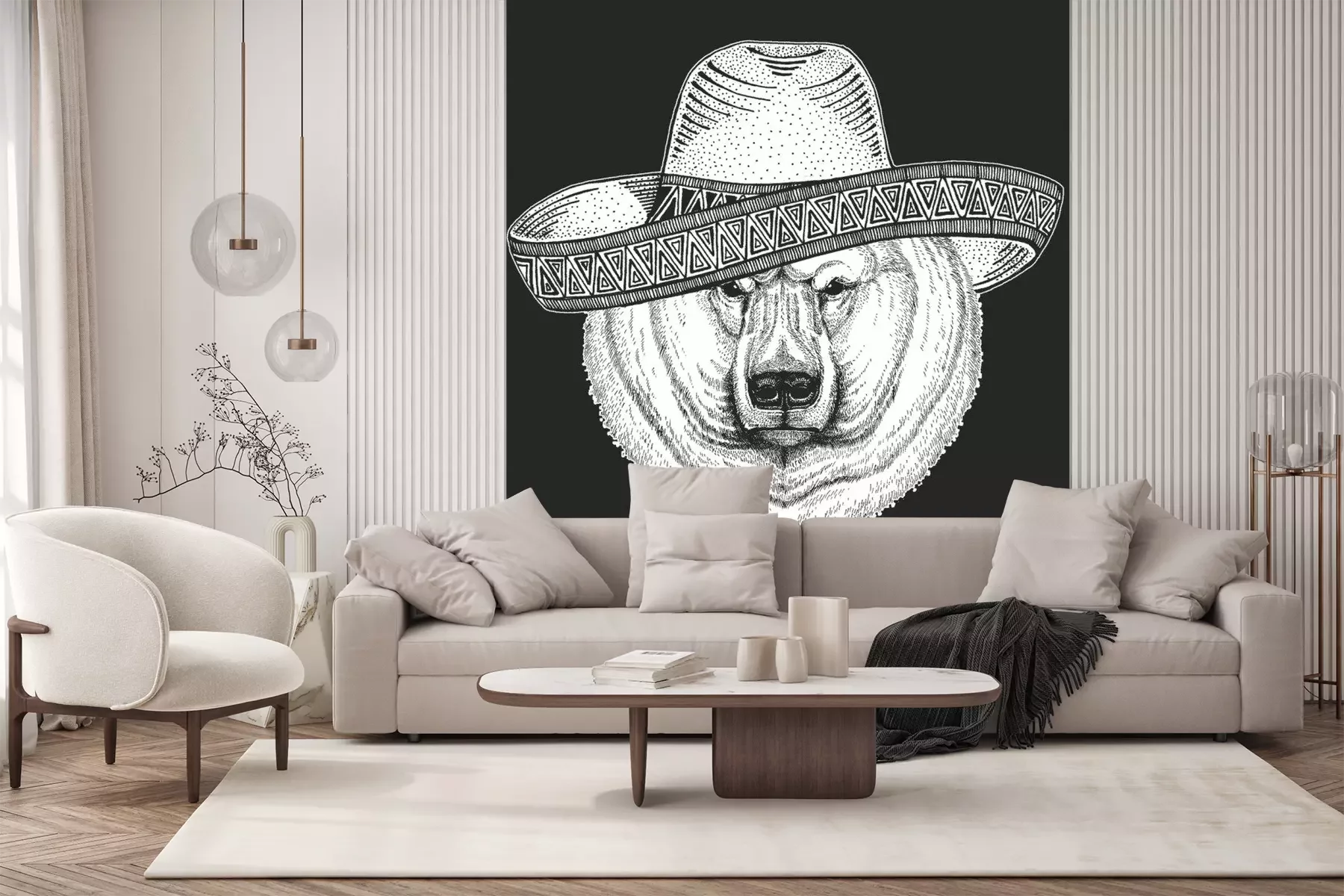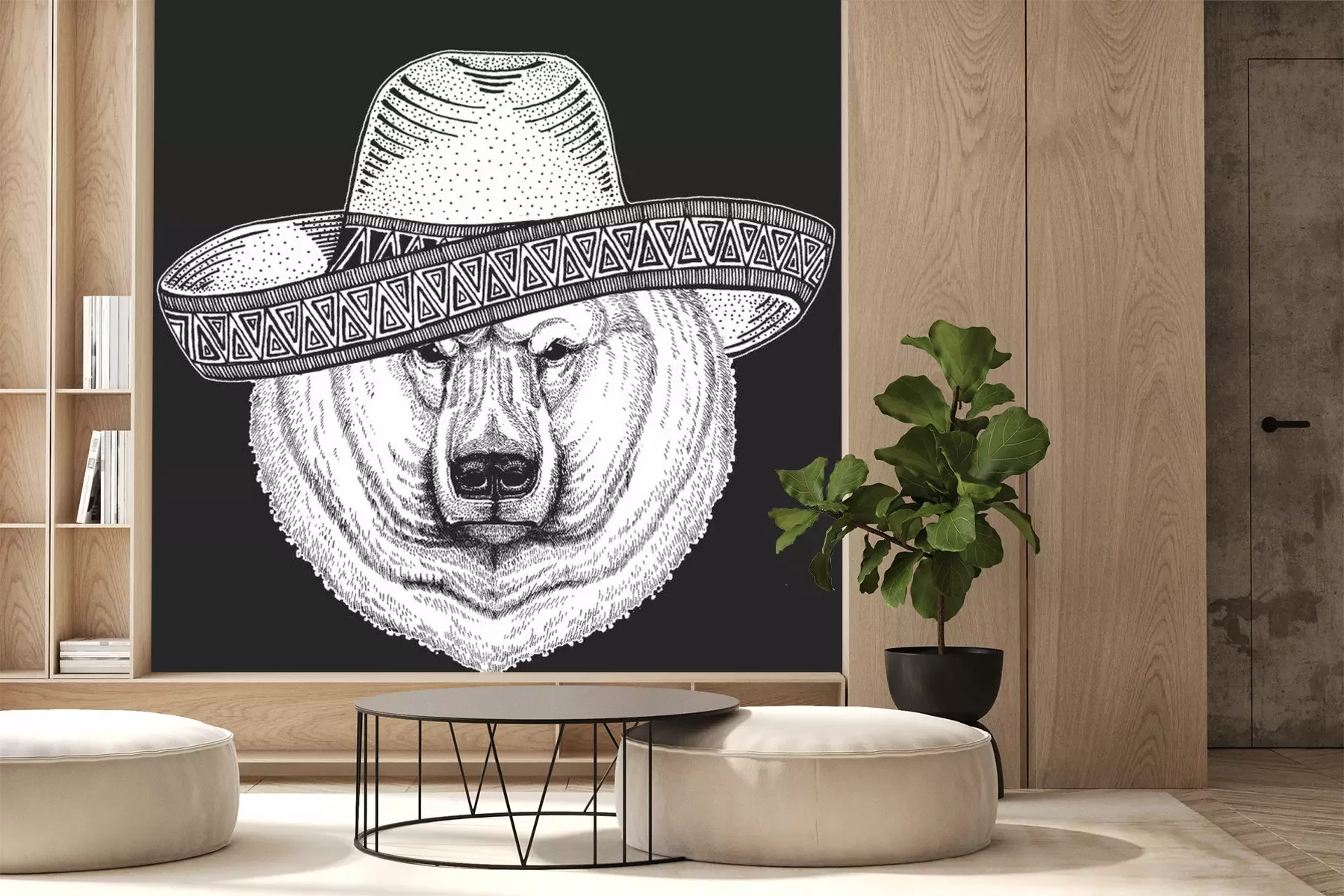 Sticker  Polar bear portrait. Sombrero is traditional mexican hat. Mexico. Head of wild animal
