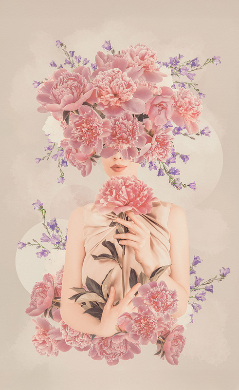 Portrait d’une femme avec des pivoines