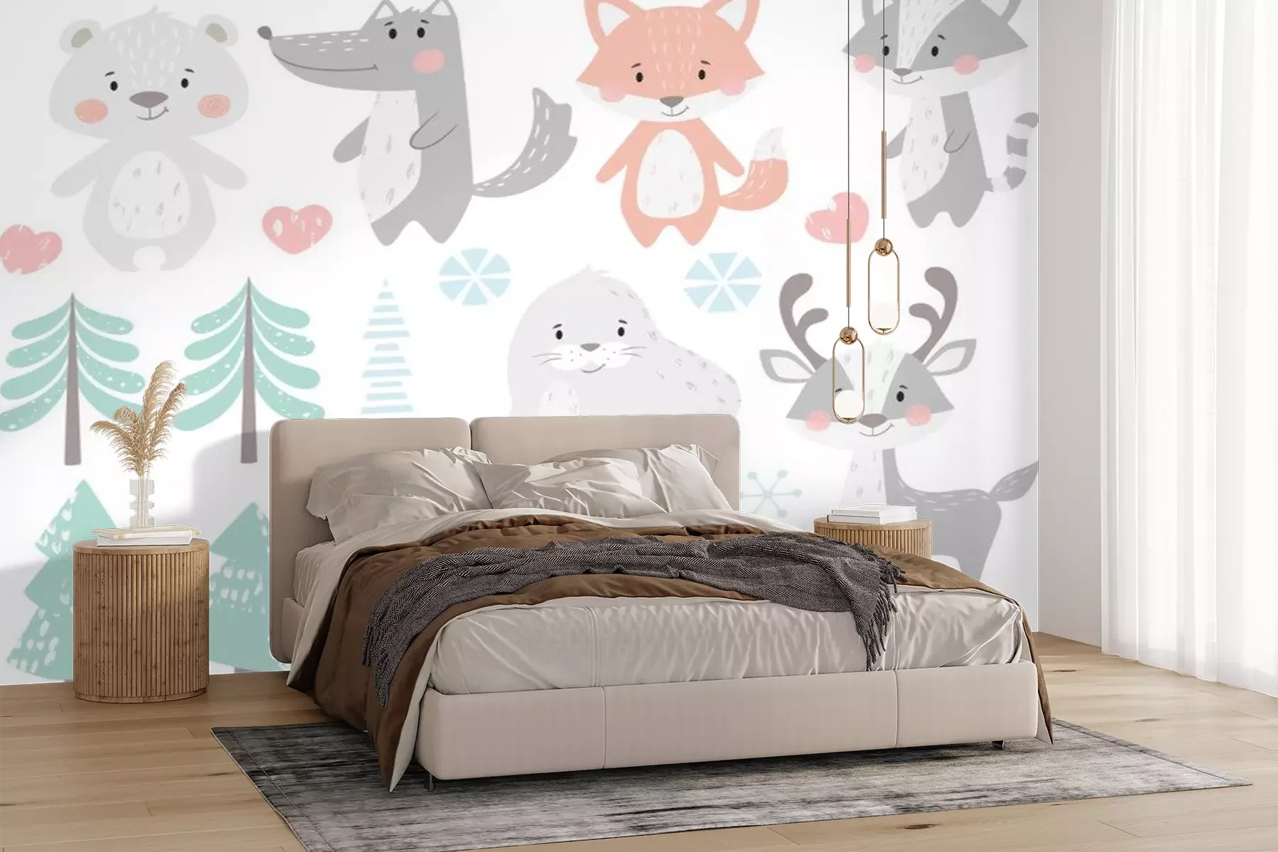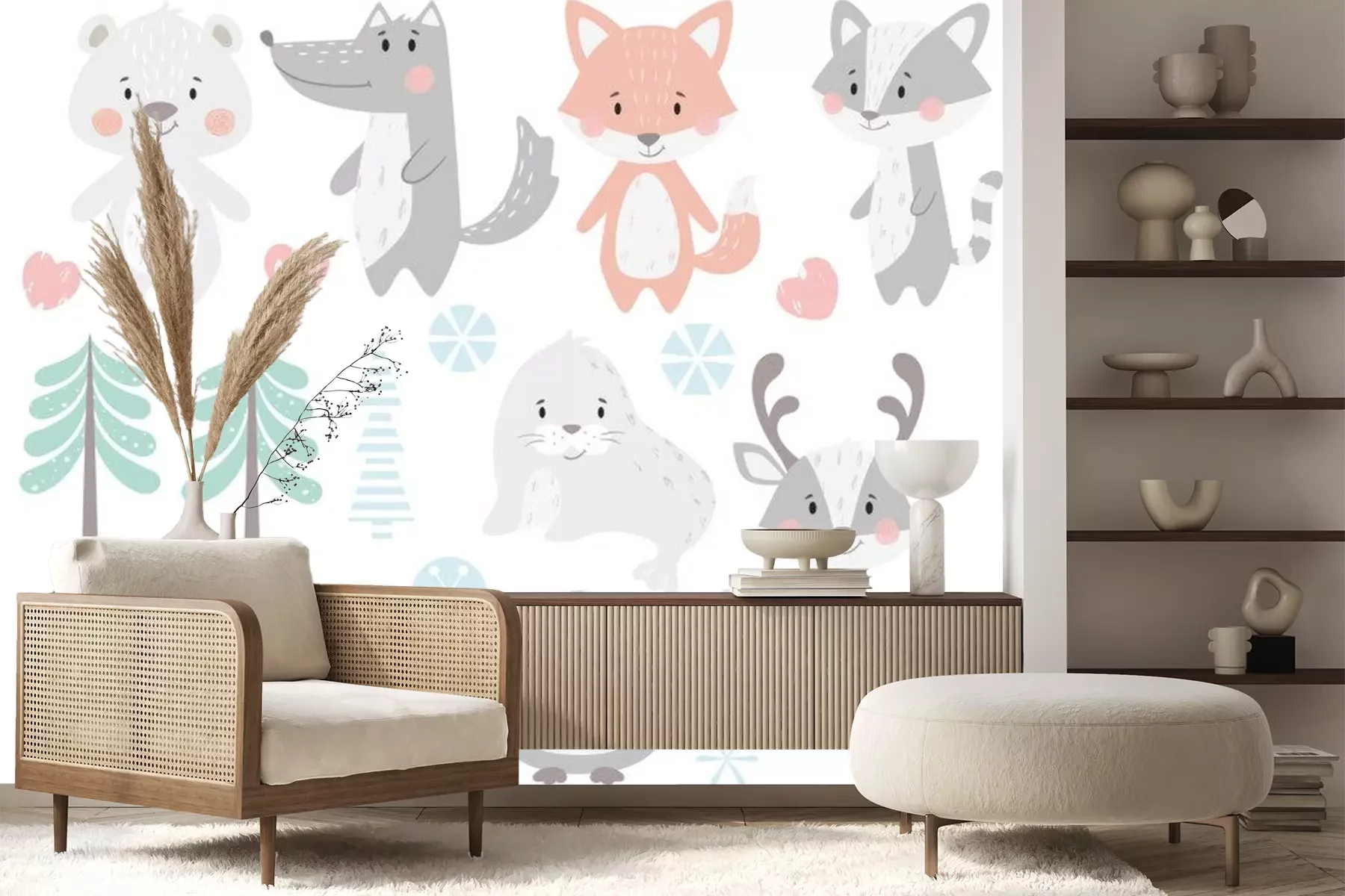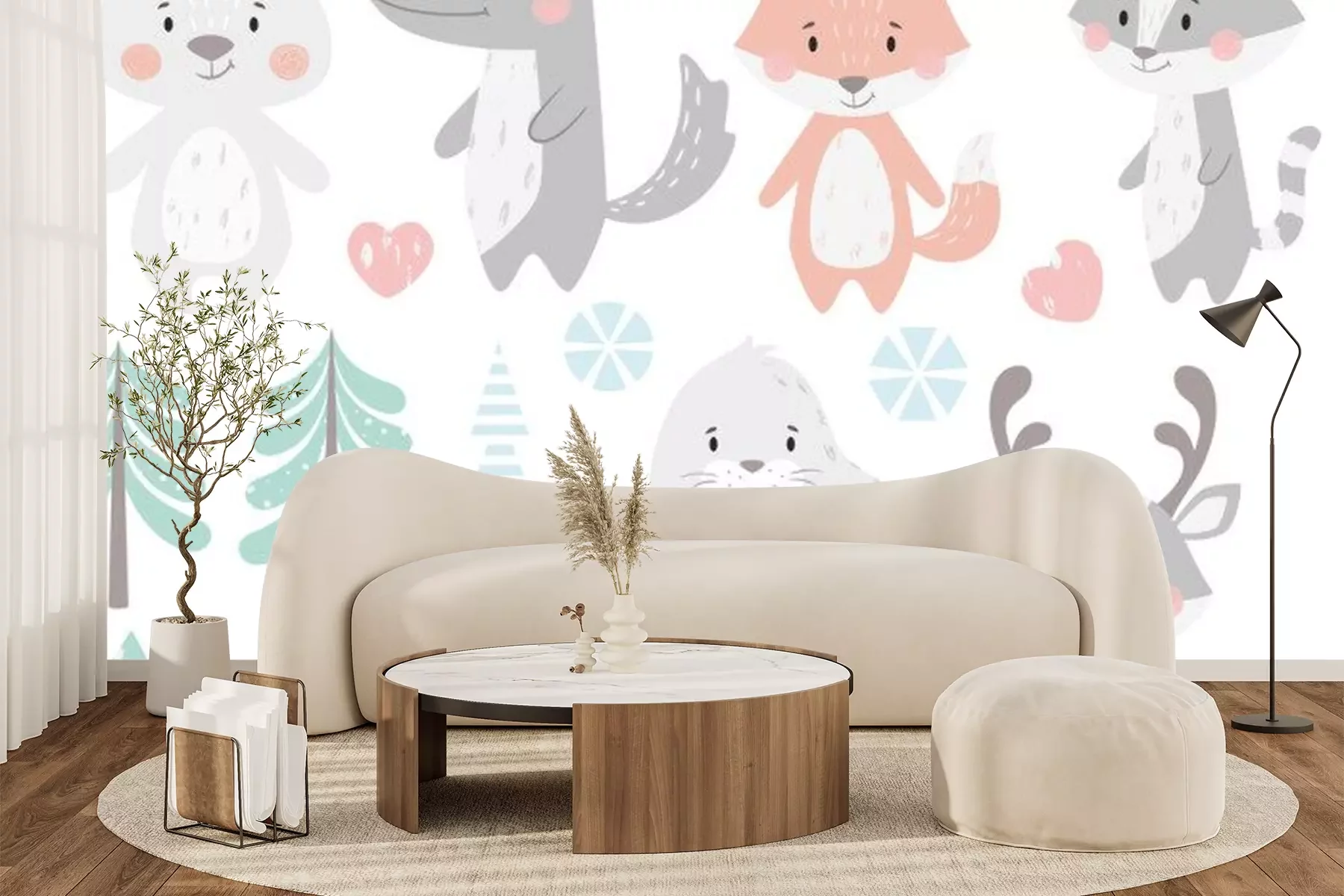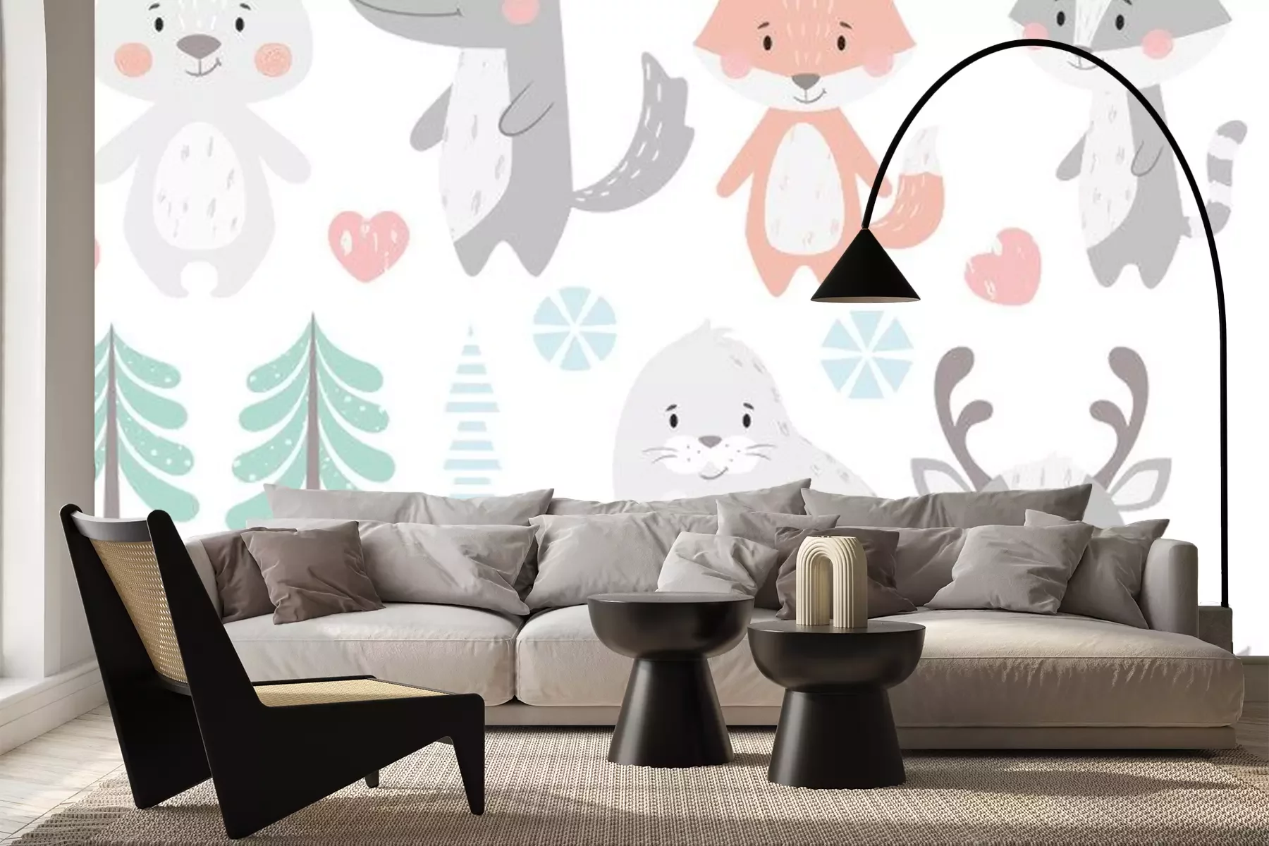 Sticker  Renne, raton laveur, phoque, loup, pingouin, ours, jeu d'hiver bébé renard.