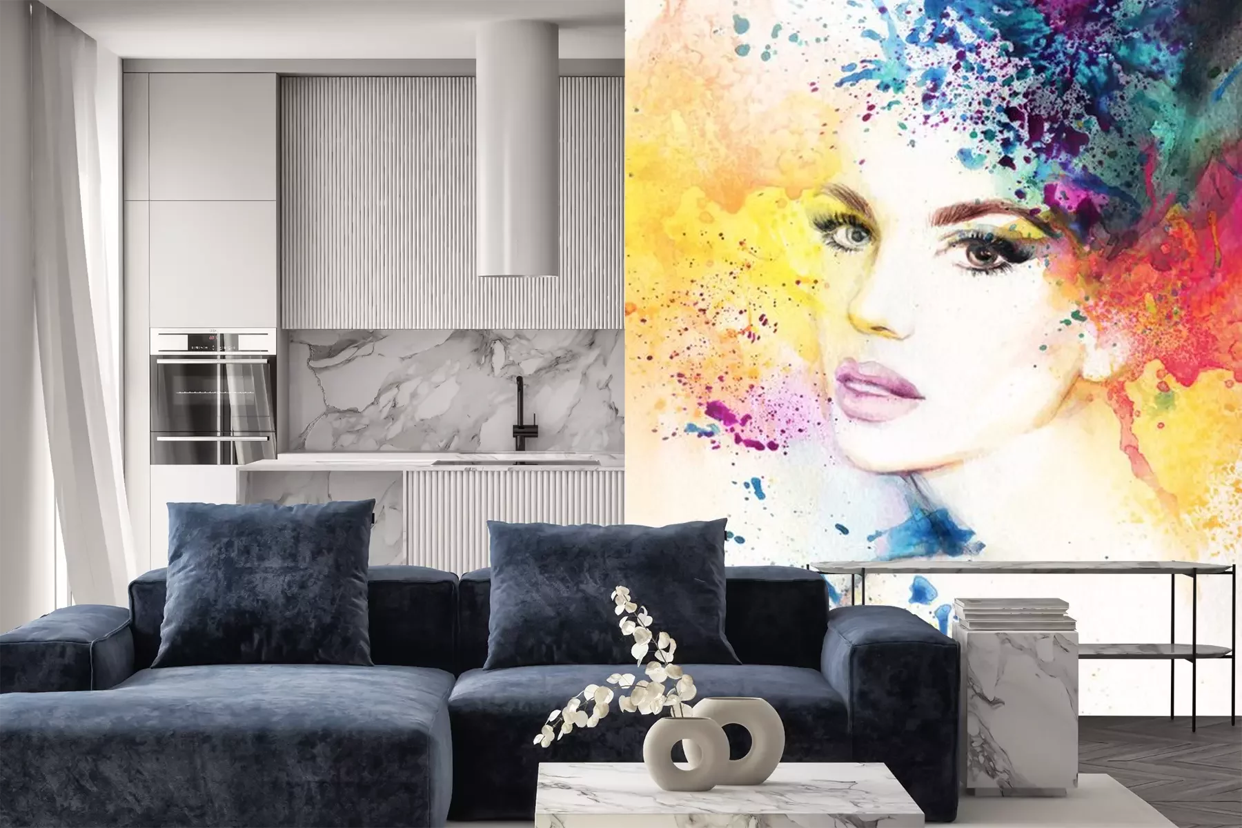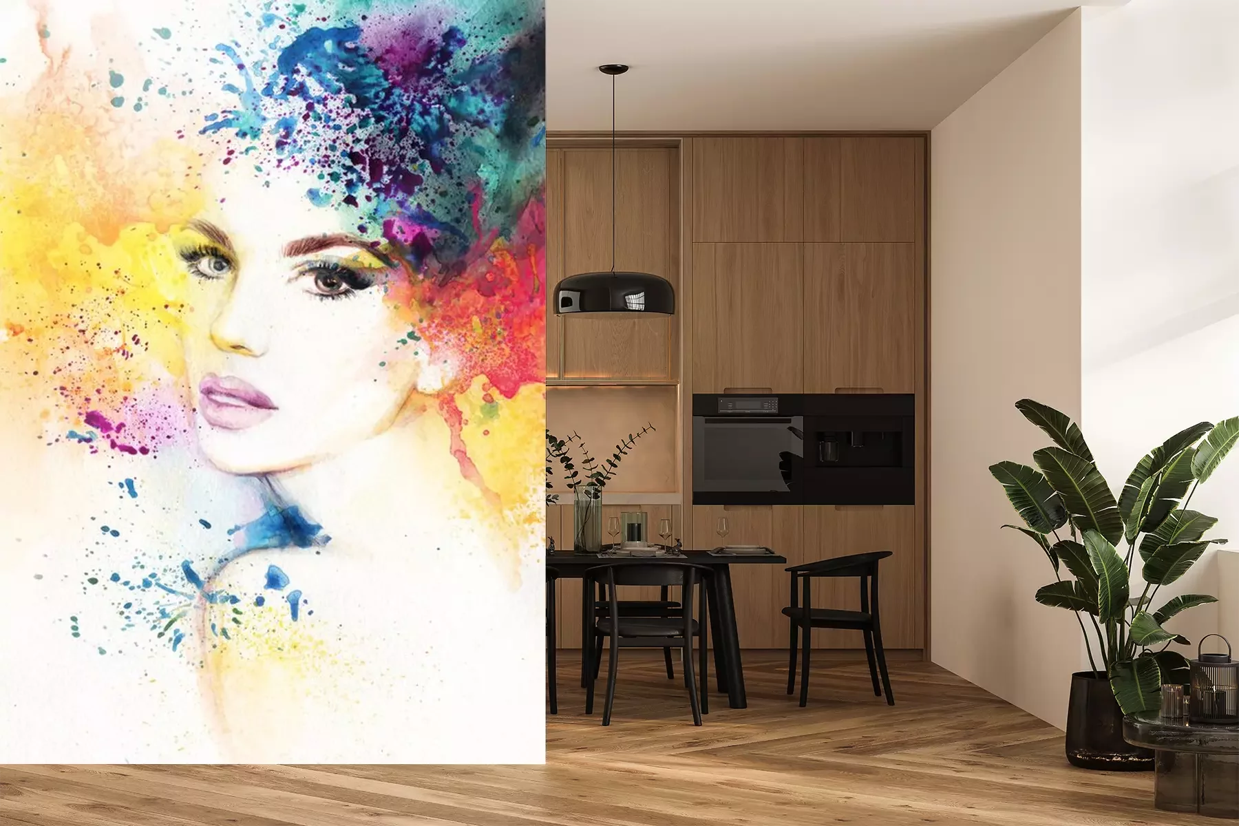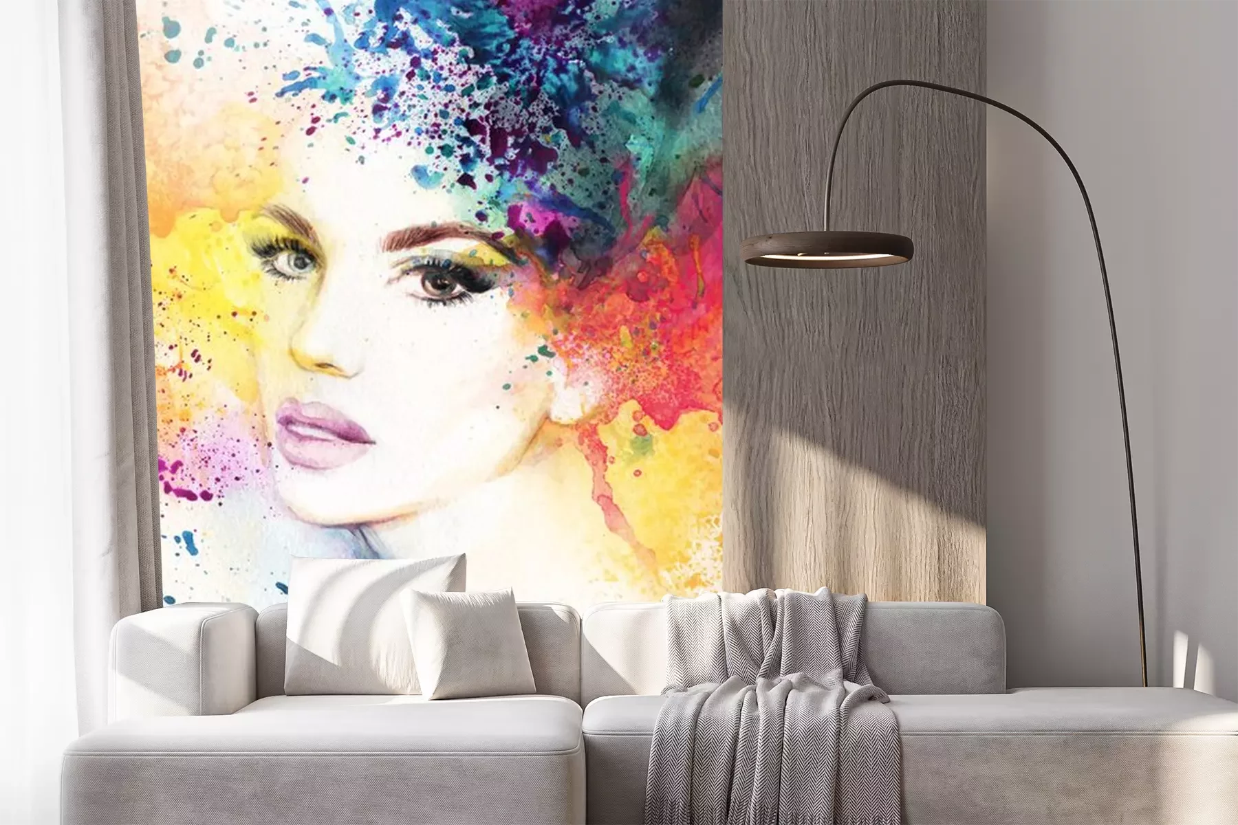 Sticker  Résumé, femme, portrait. Illustration aquarelle