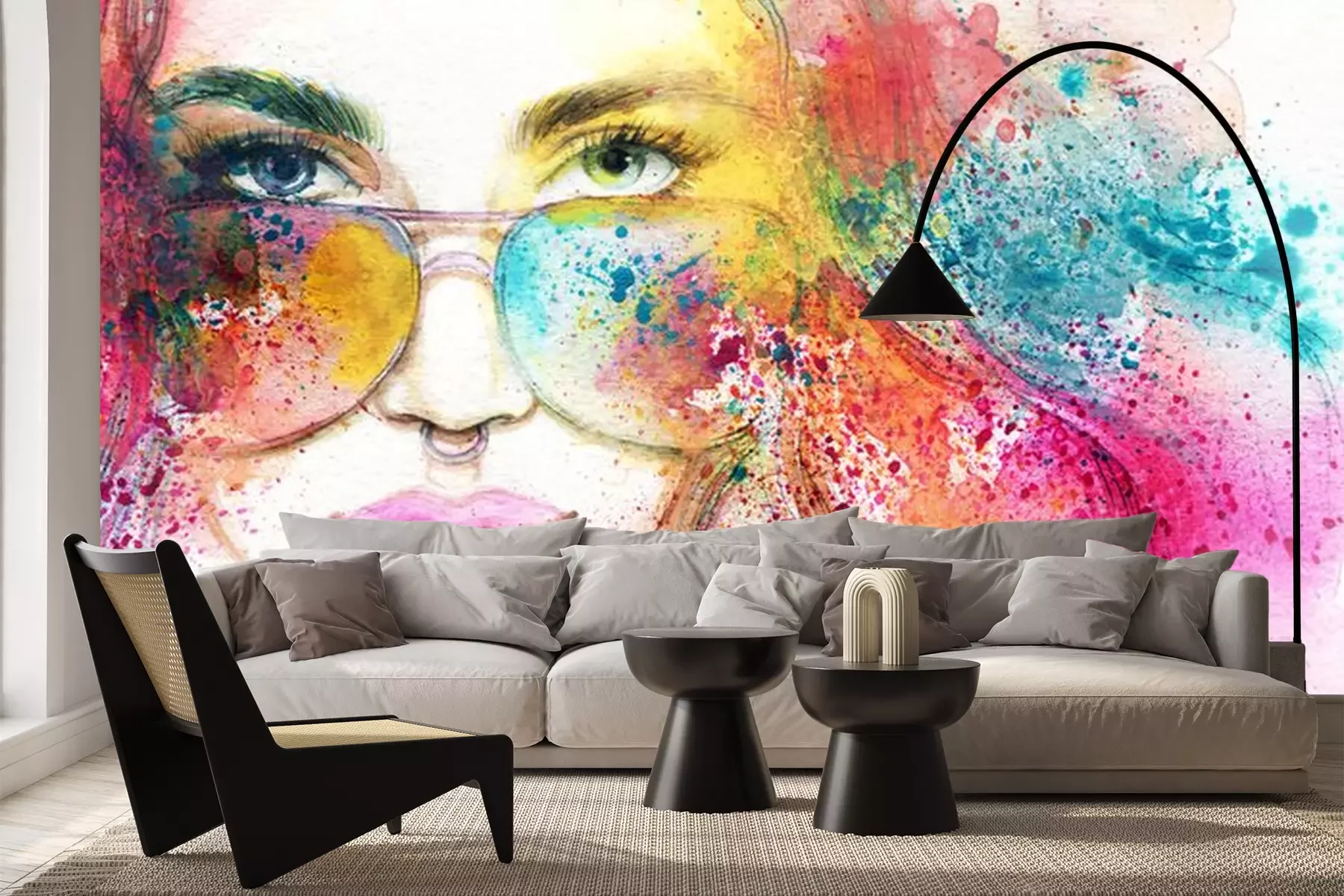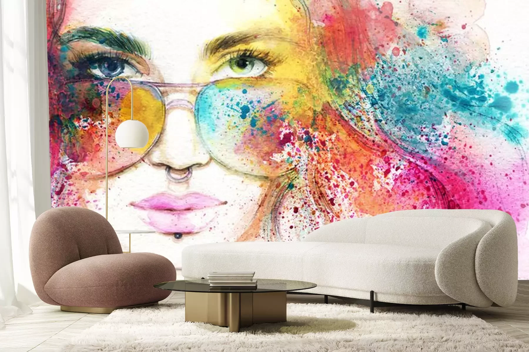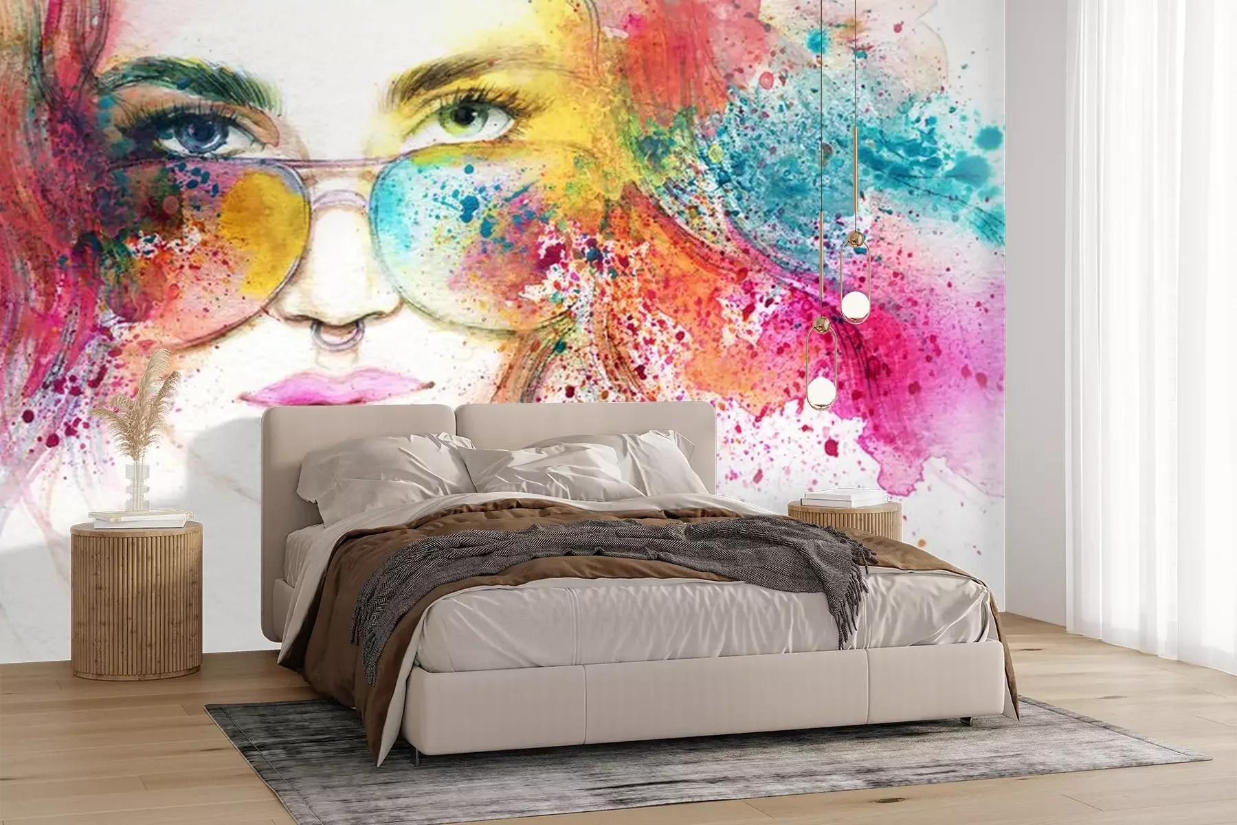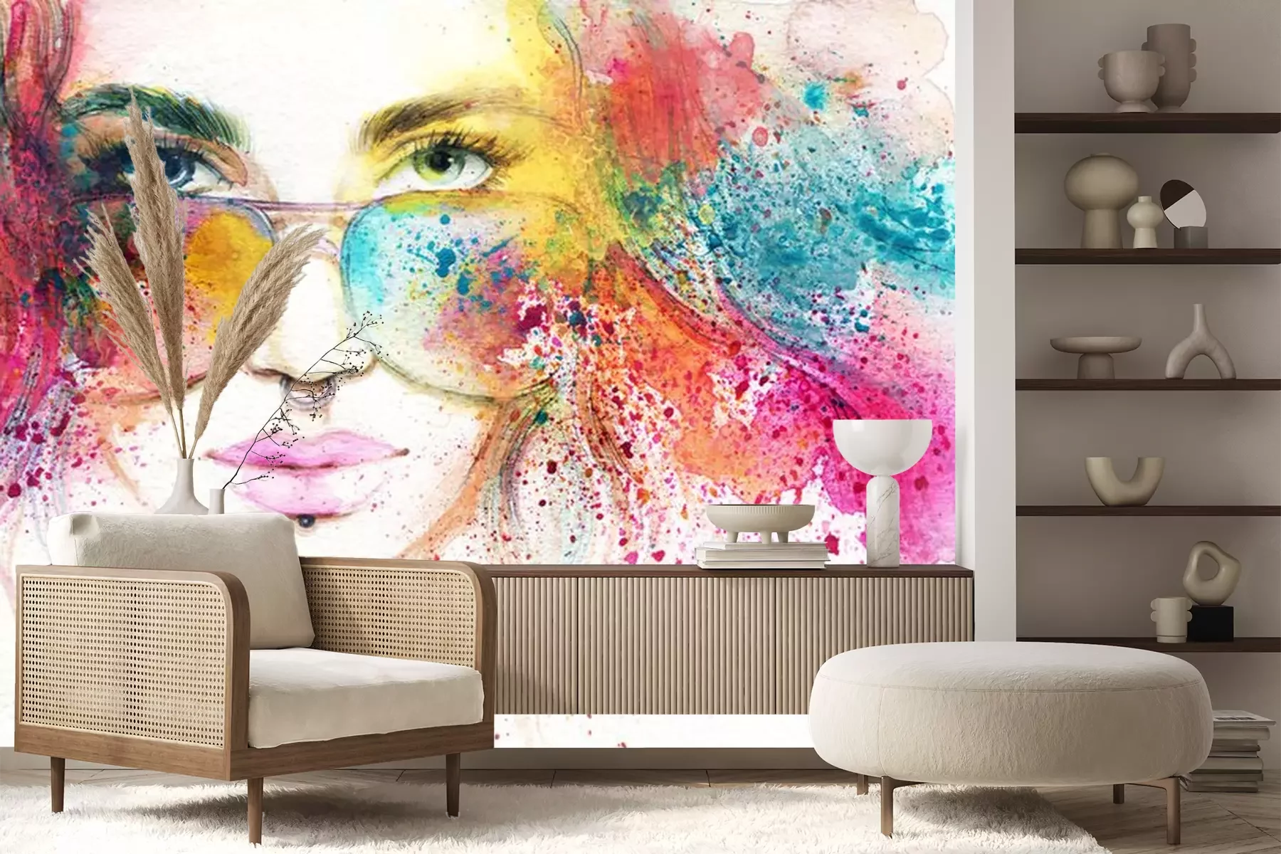 Sticker  Résumé, femme, portrait. Illustration aquarelle