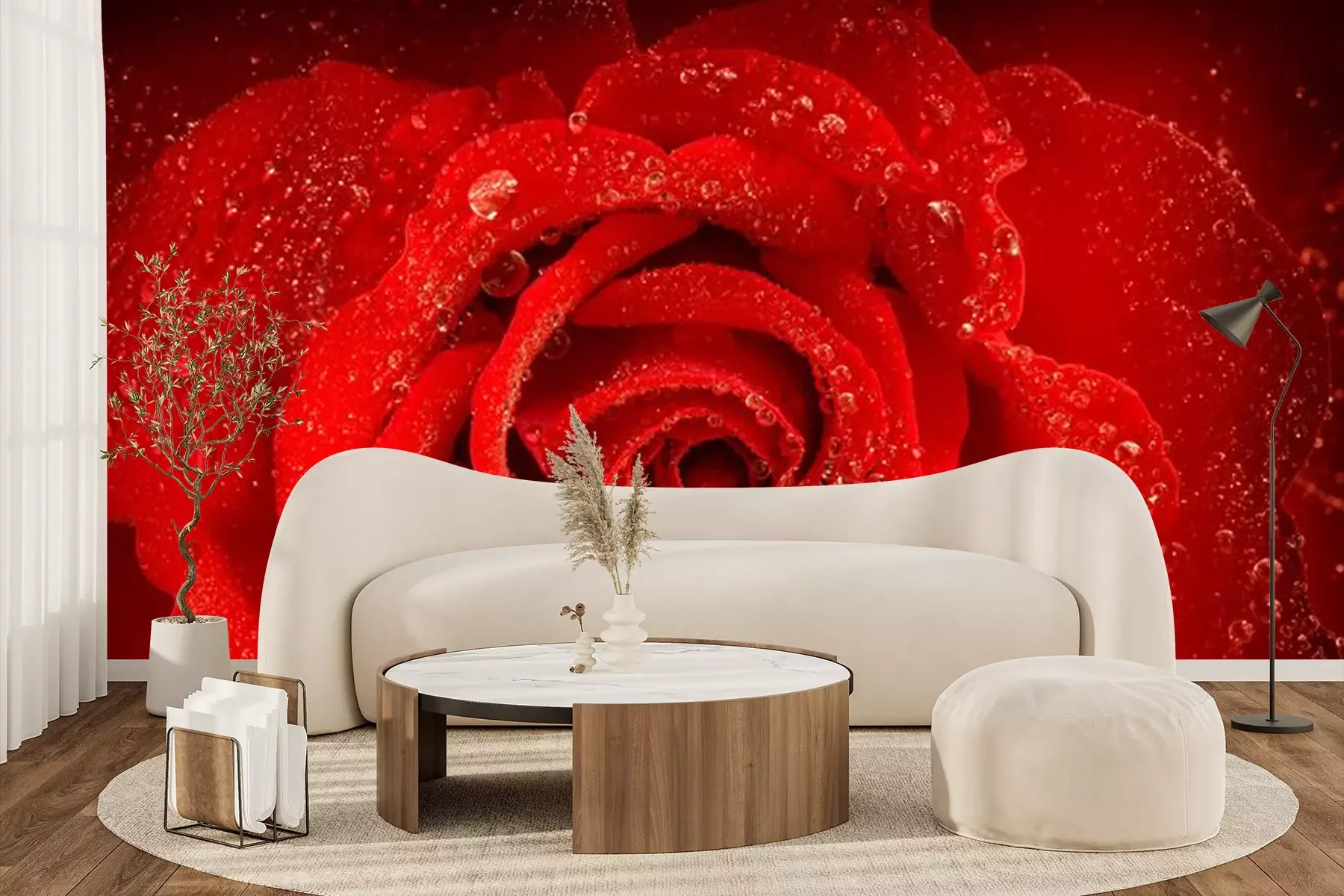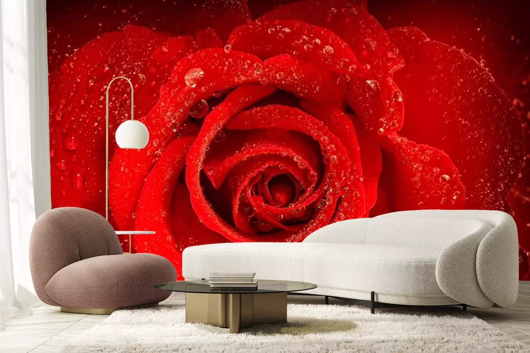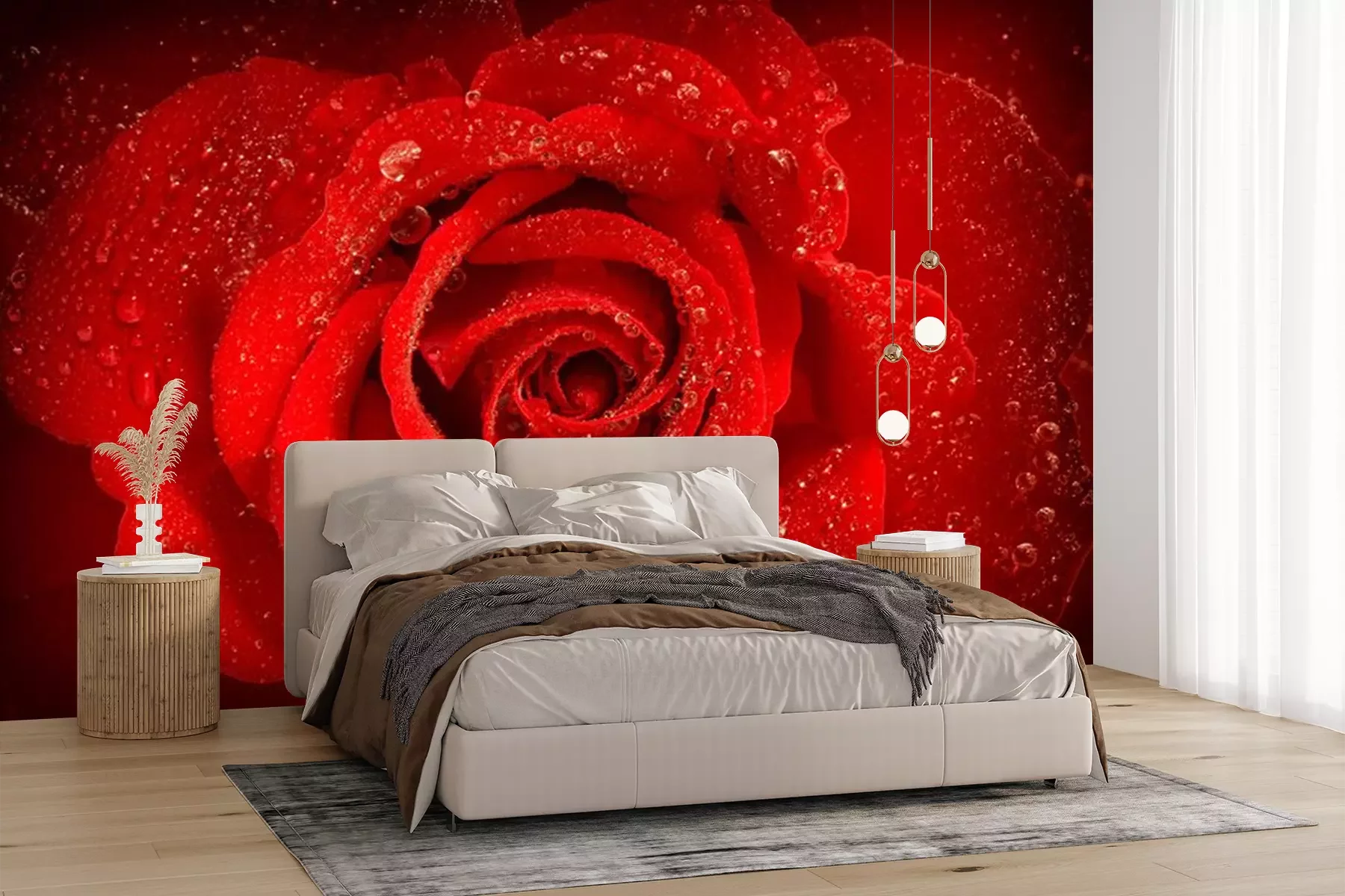 Sticker  Rose rouge avec rosée