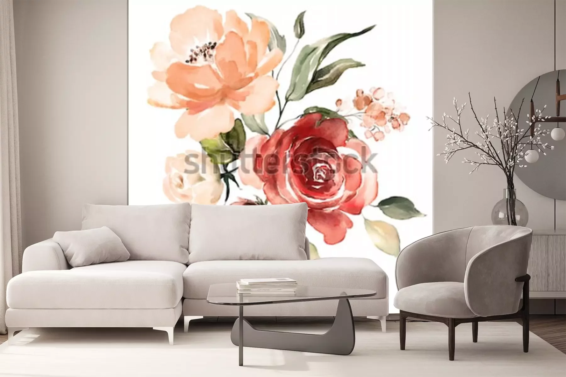 Sticker  Roses poudrées et roses rouges