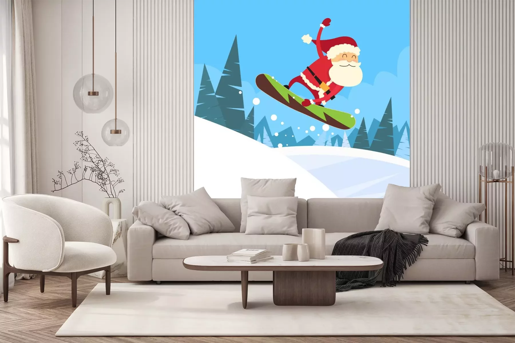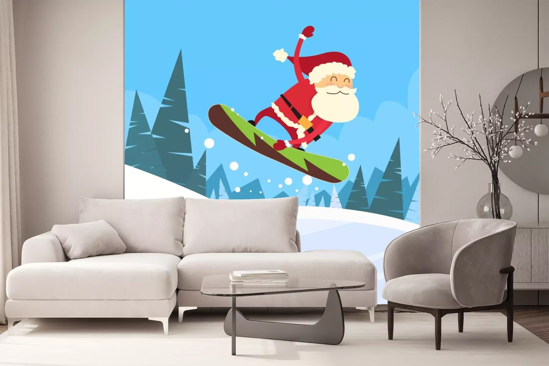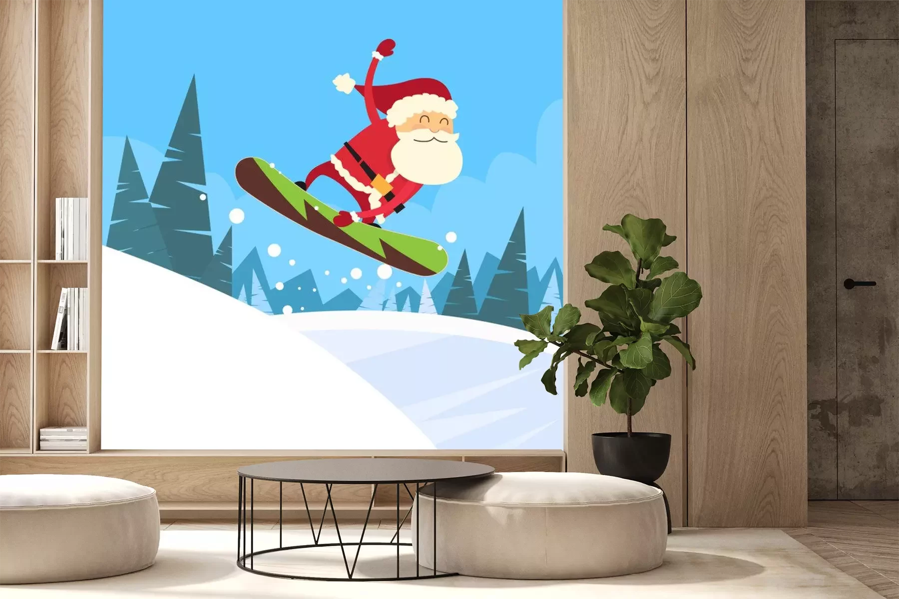 Sticker  Santa Claus Snowboarder glissant vers le bas de la colline