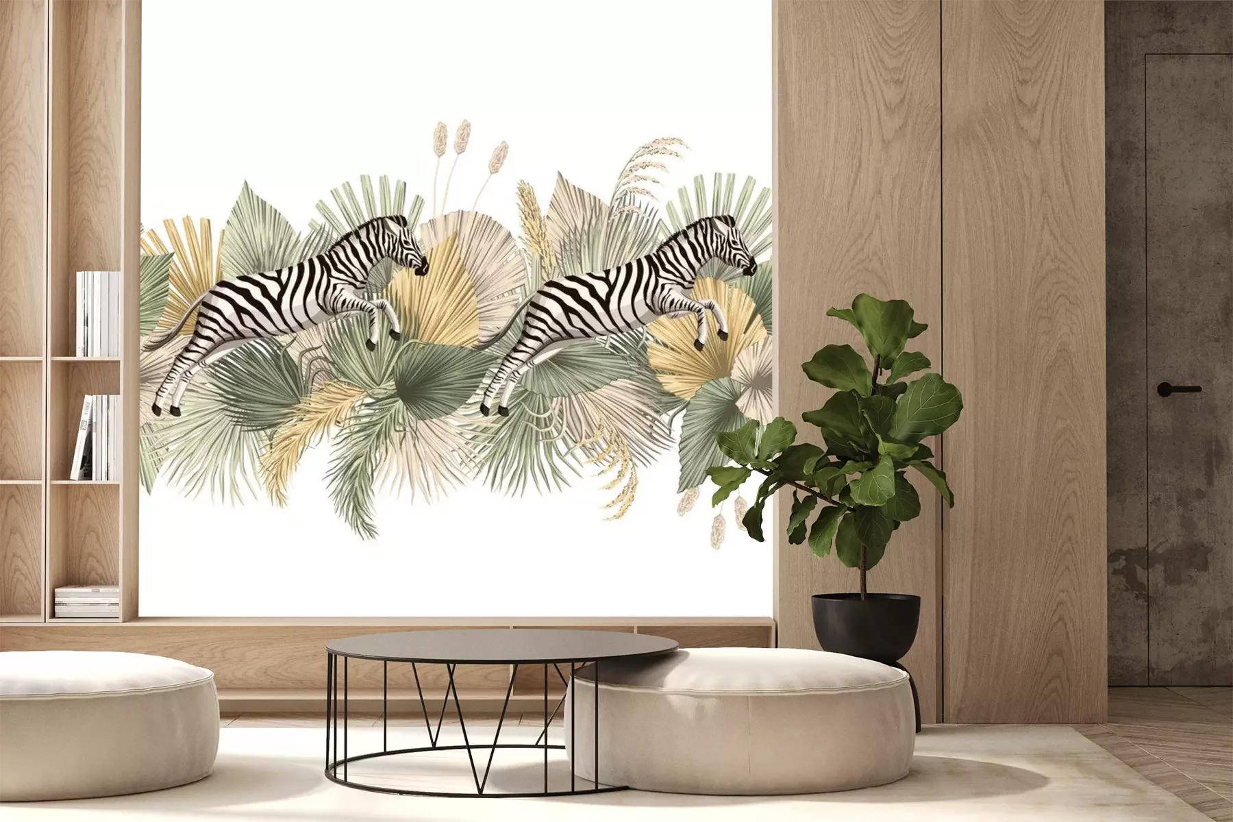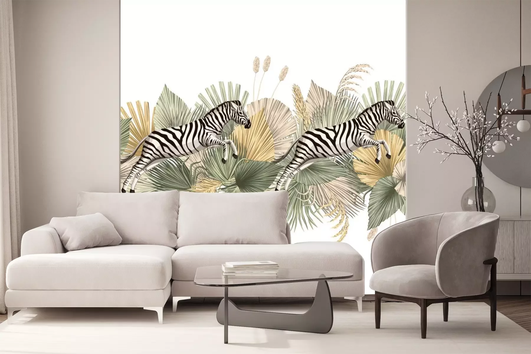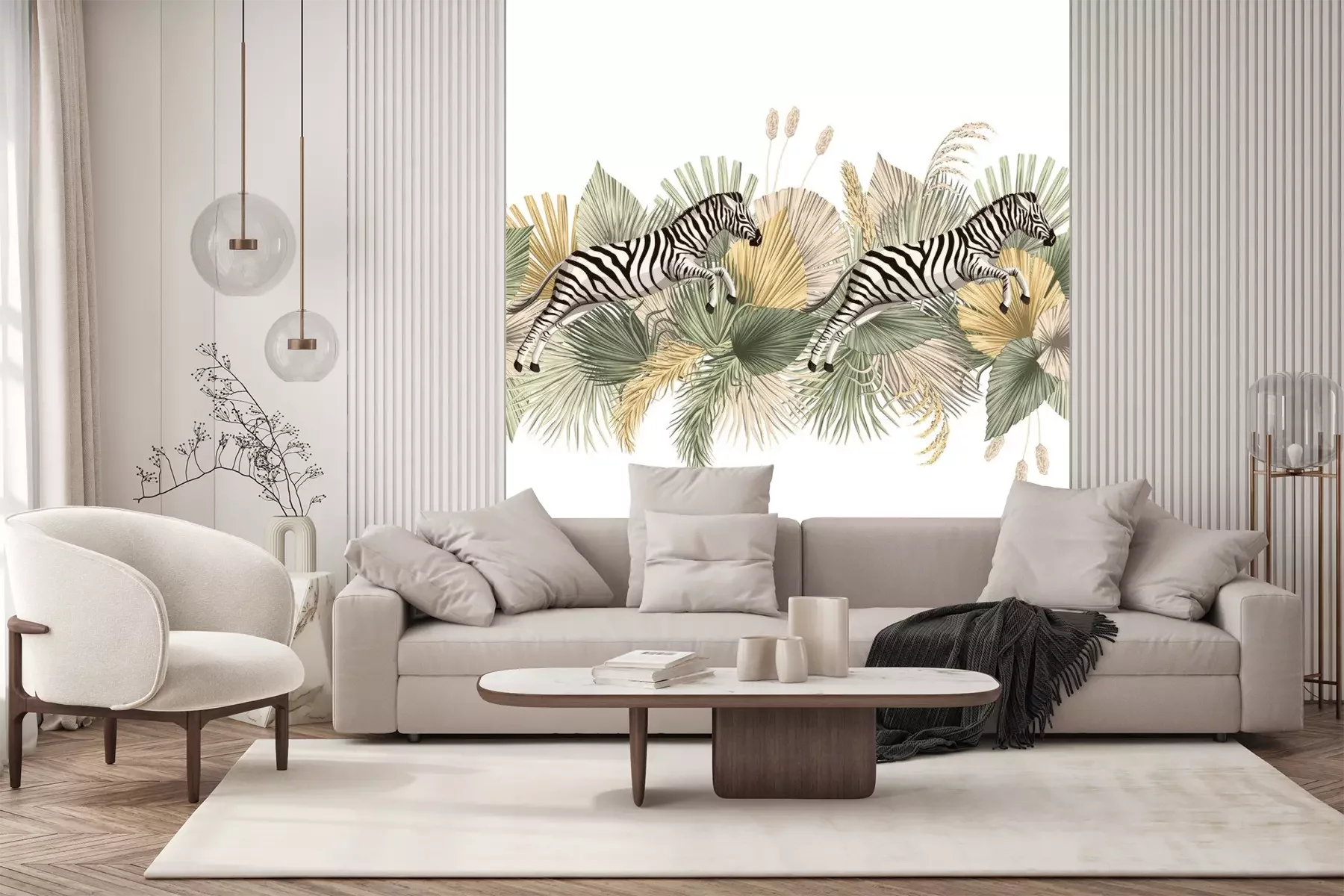 Sticker  Saut de zèbres sur fond de végétation tropicale