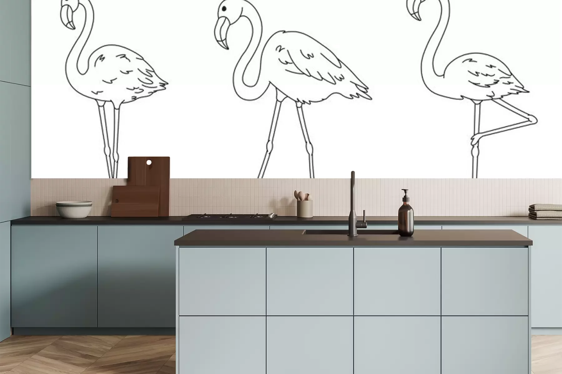 Sticker  set of cartoon flamingos black lines silhouettes, cute wild tropical bird for kids coloring book, decoration, editable vector illustration