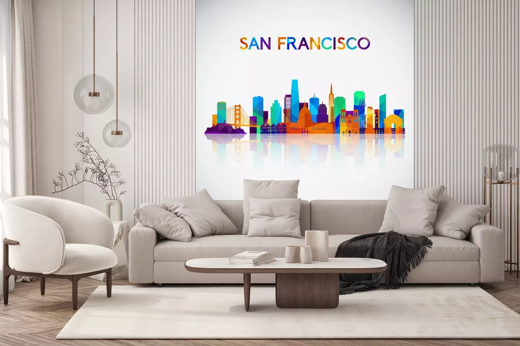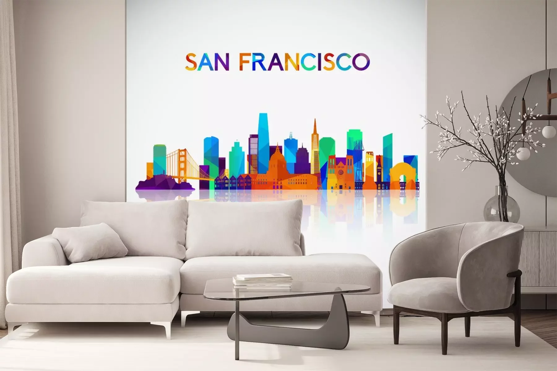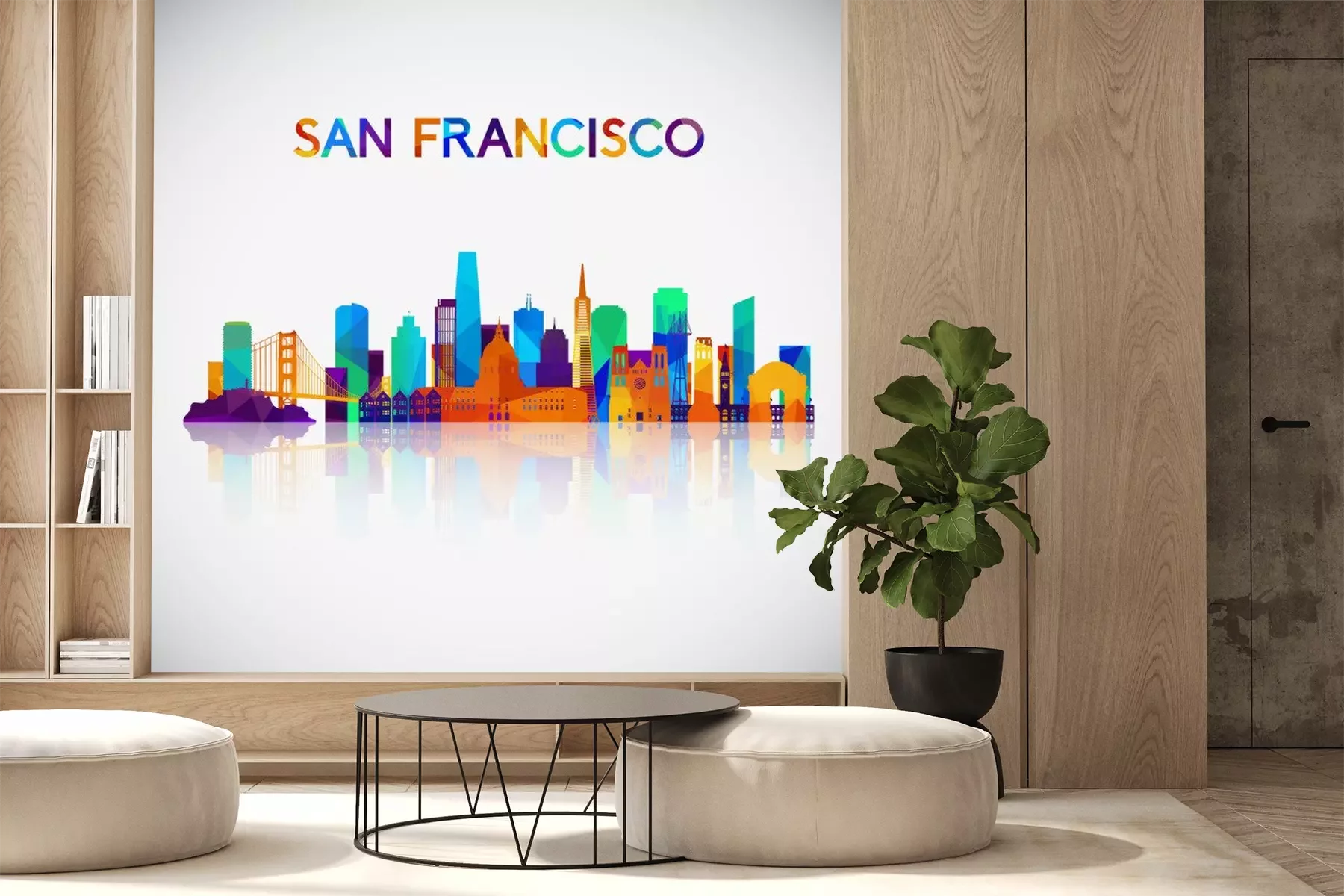 Sticker  Silhouette de skyline de San Francisco dans un style géométrique coloré. Symbole pour votre conception. Illustration vectorielle