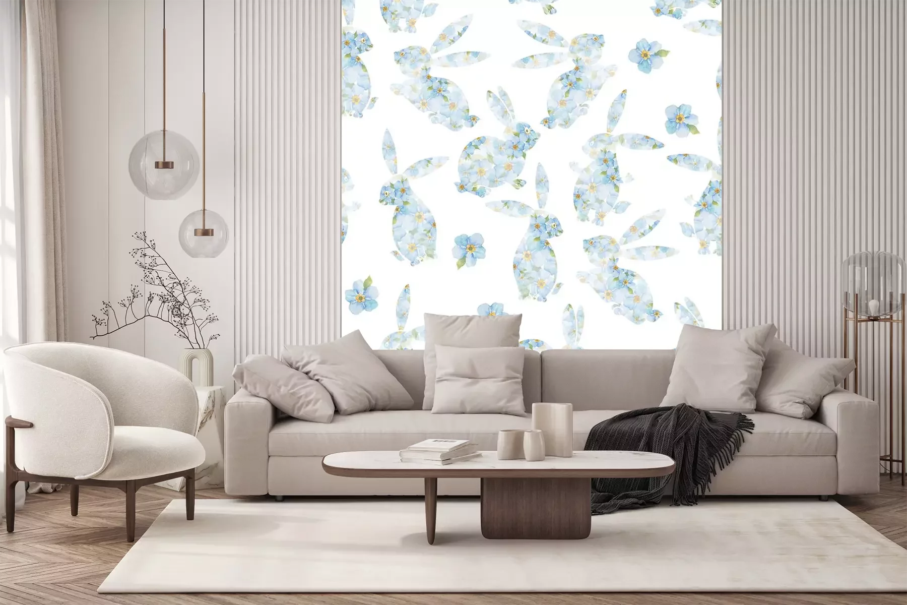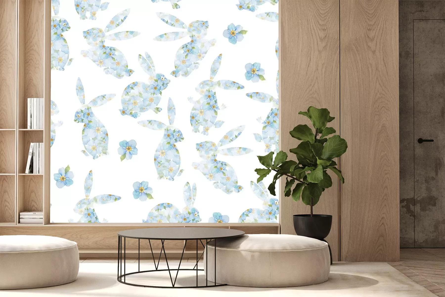 Sticker  Silhouettes florales de lapins sur un fond blanc