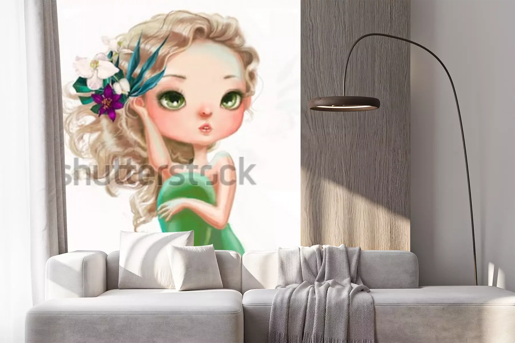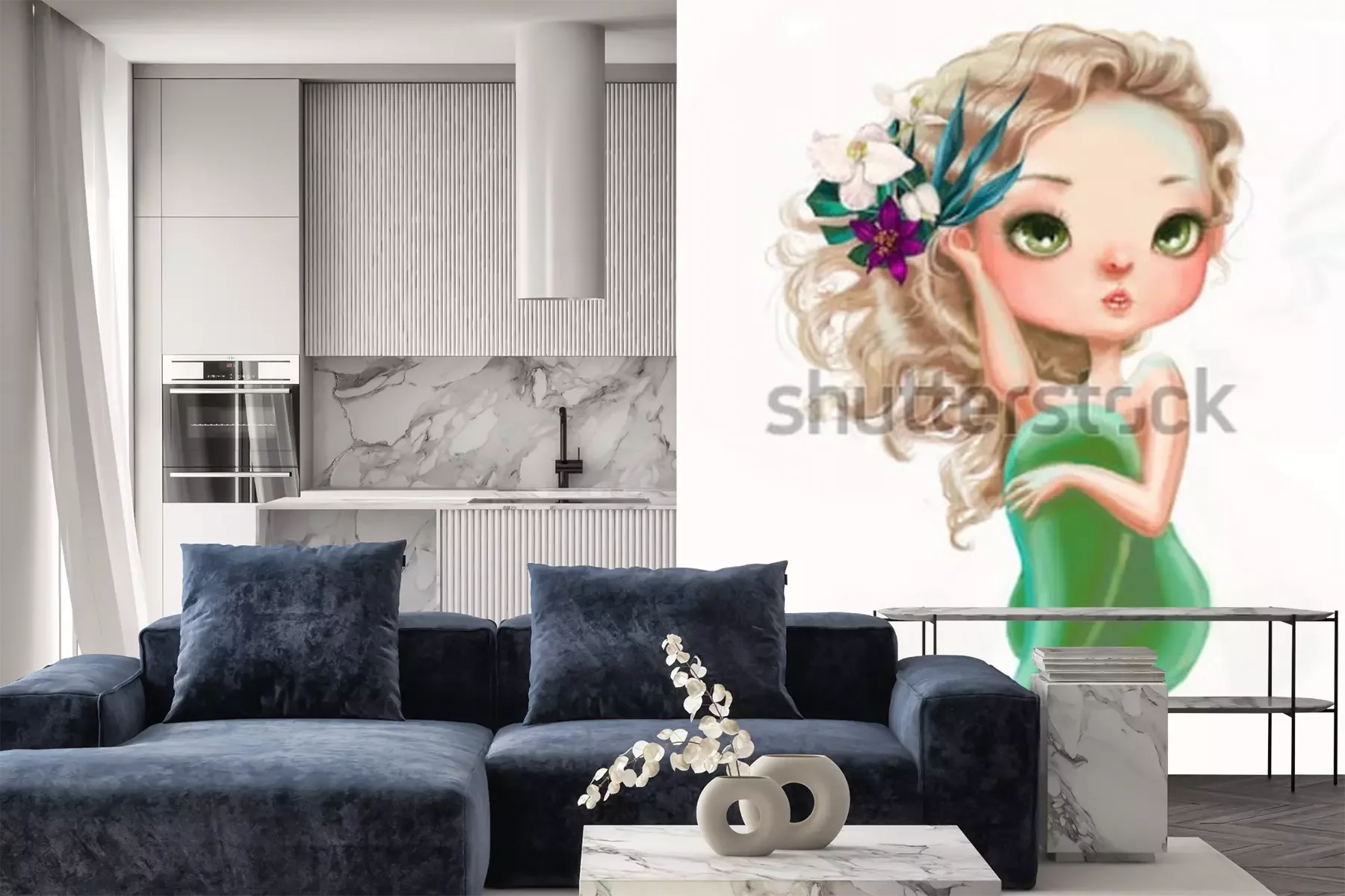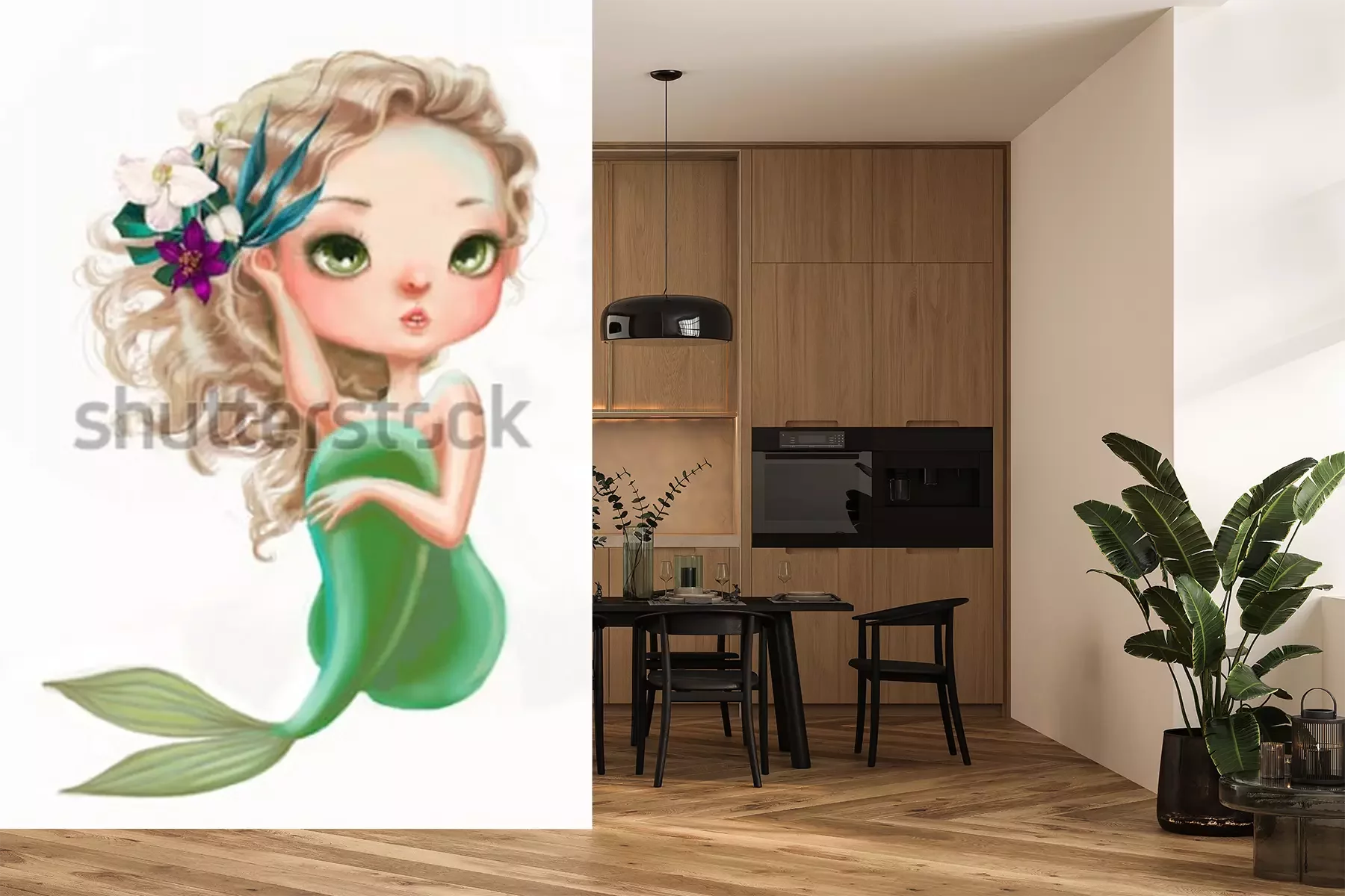 Sticker  Sirène blonde avec des fleurs dans les cheveux
