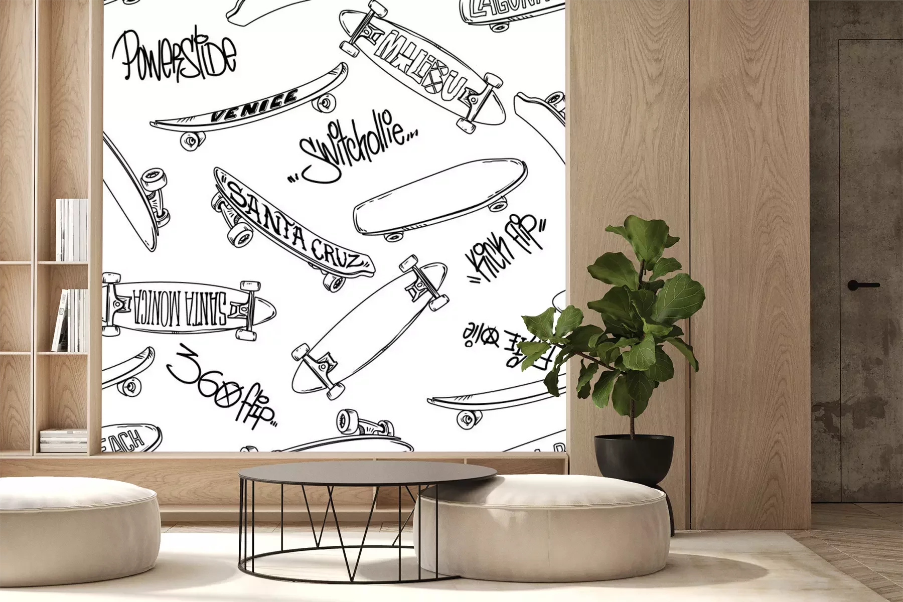Motif hipster noir et blanc avec divers véhiculesLivraison sans problème assurée par des transporteurs de confiance
