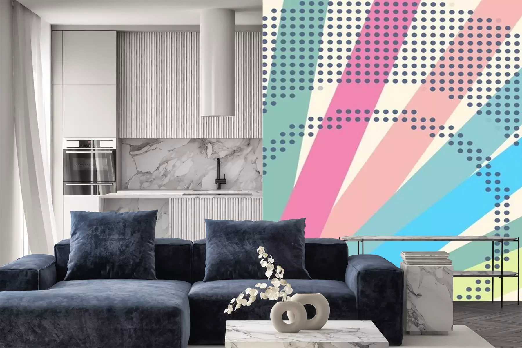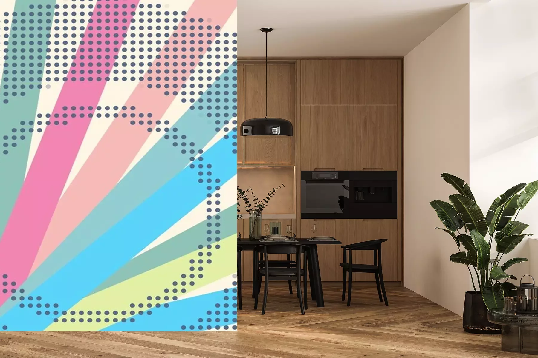 Sticker  Soft aesthetic abstract background with flowers illustration - using colorful pastel color palette