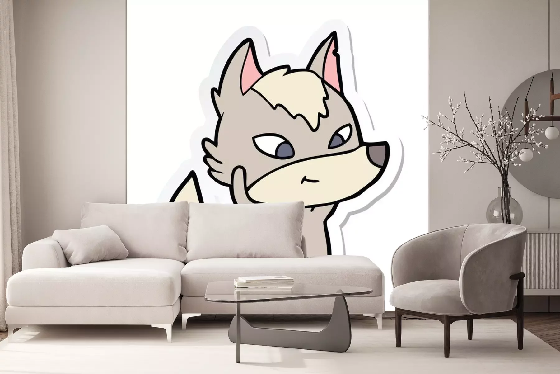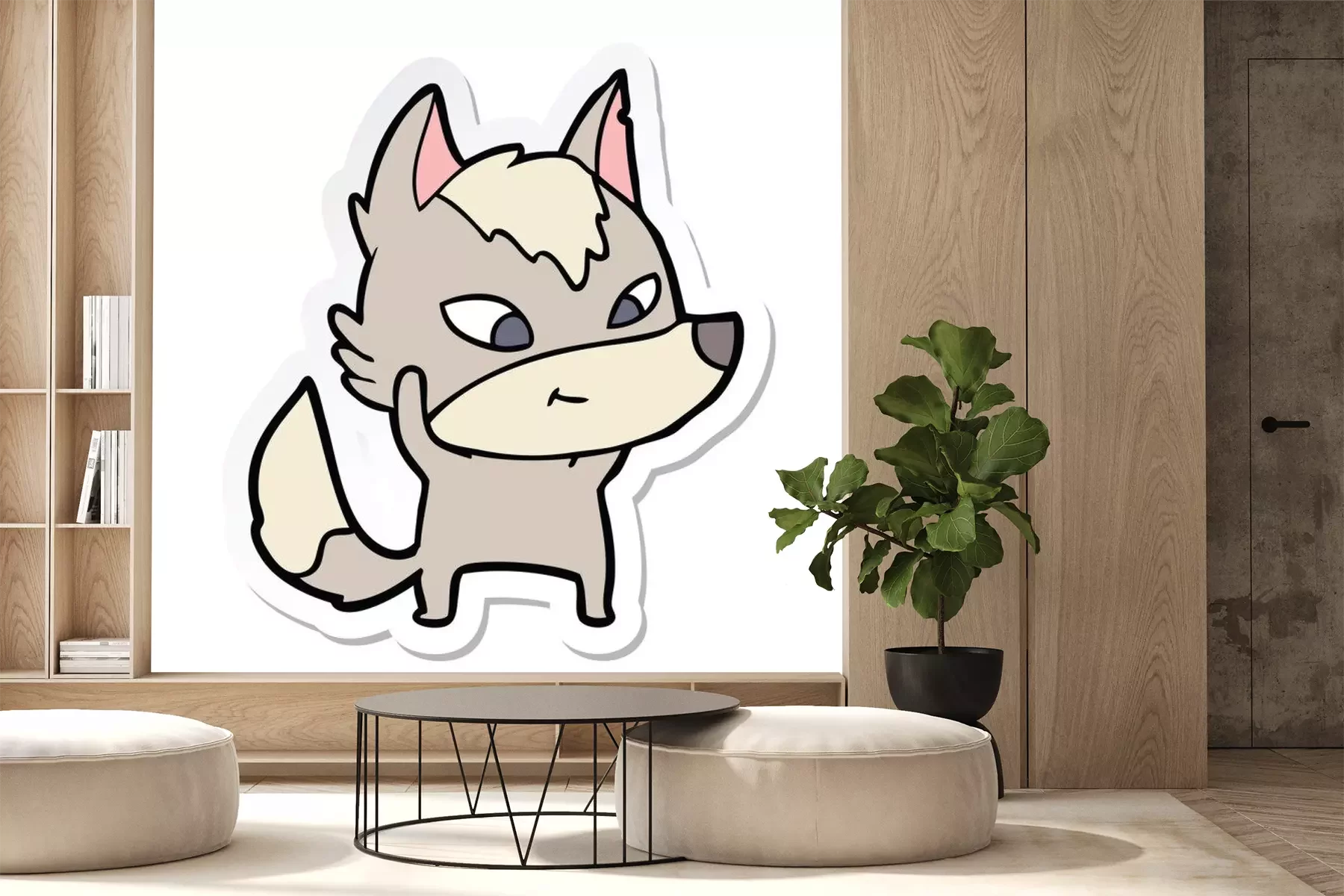 Sticker  sticker of a friendly cartoon wolf