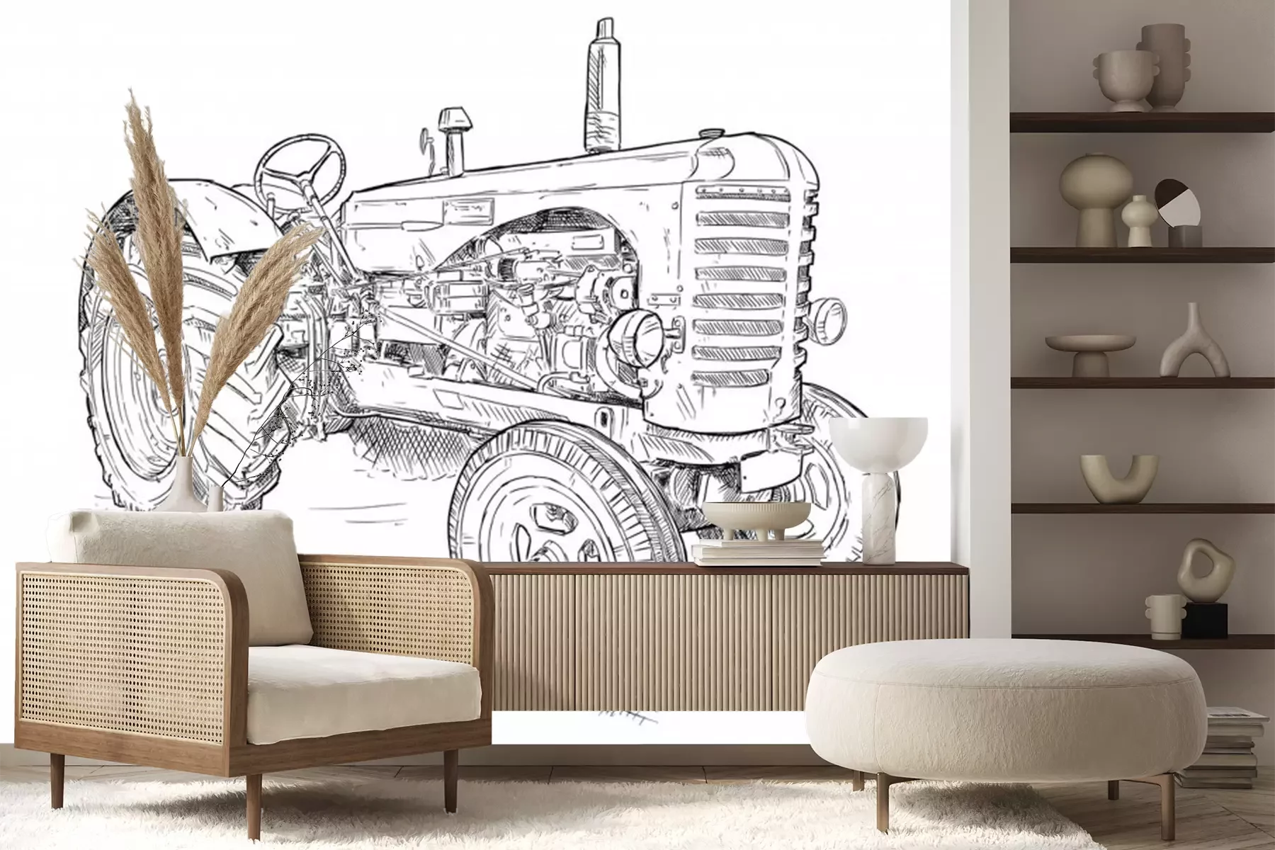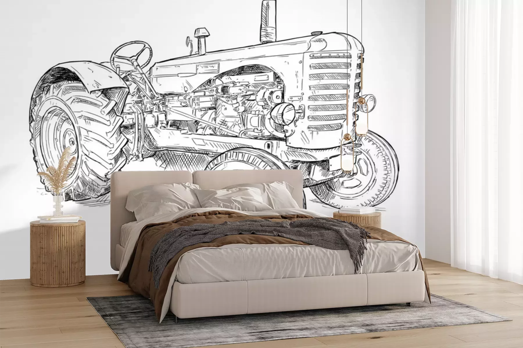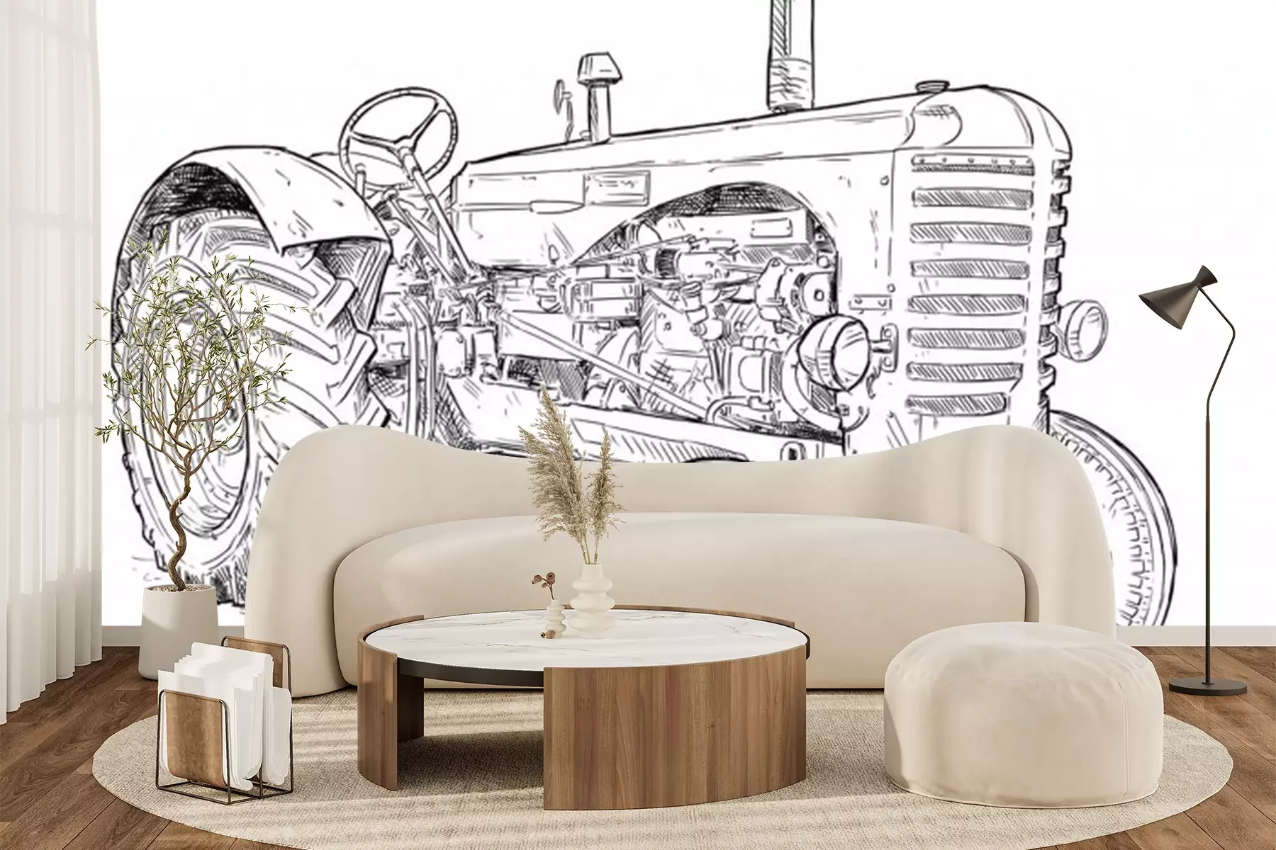 Sticker  Stylo artistique de vecteur et dessin du vieux tracteur à l'encre. Tracteur a été fabriqué en Écosse, Royaume-Uni entre 1954 - 1958 ou 50.