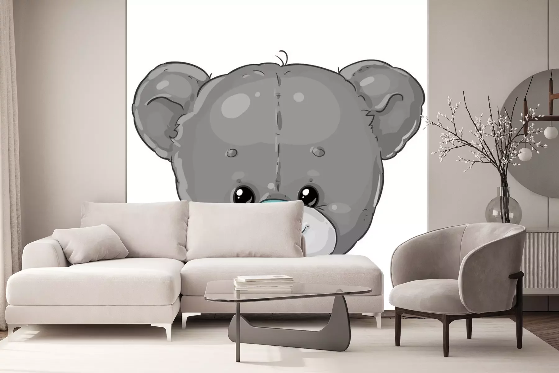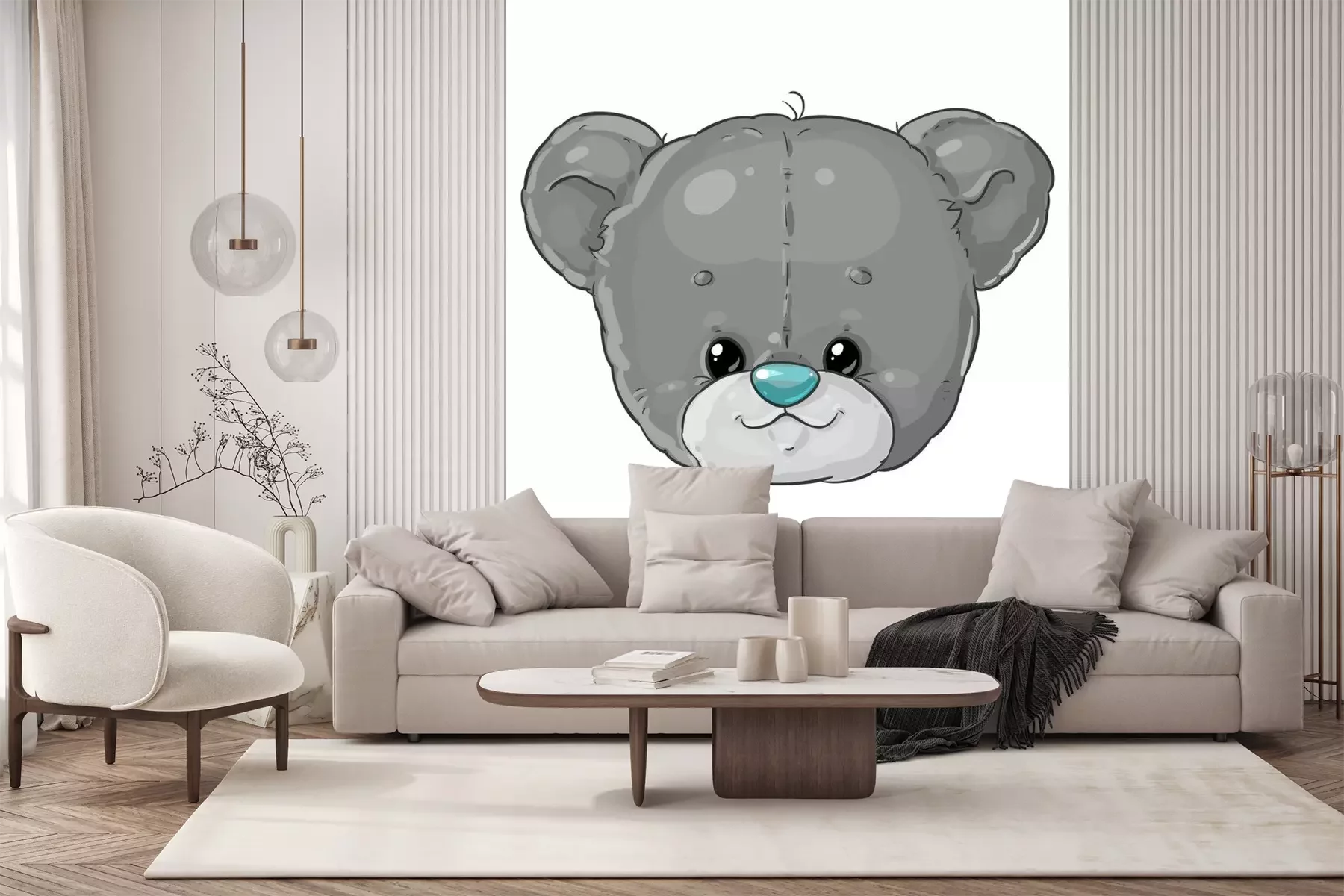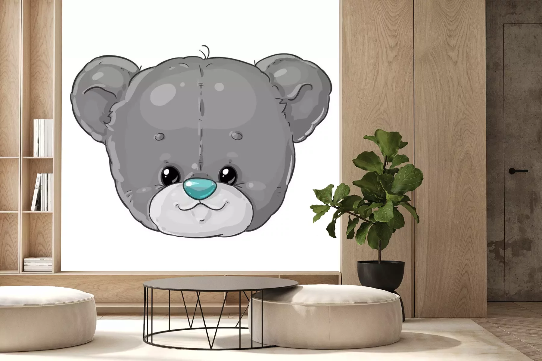 Sticker  Teddy bear boy grey head. Cute children's character.