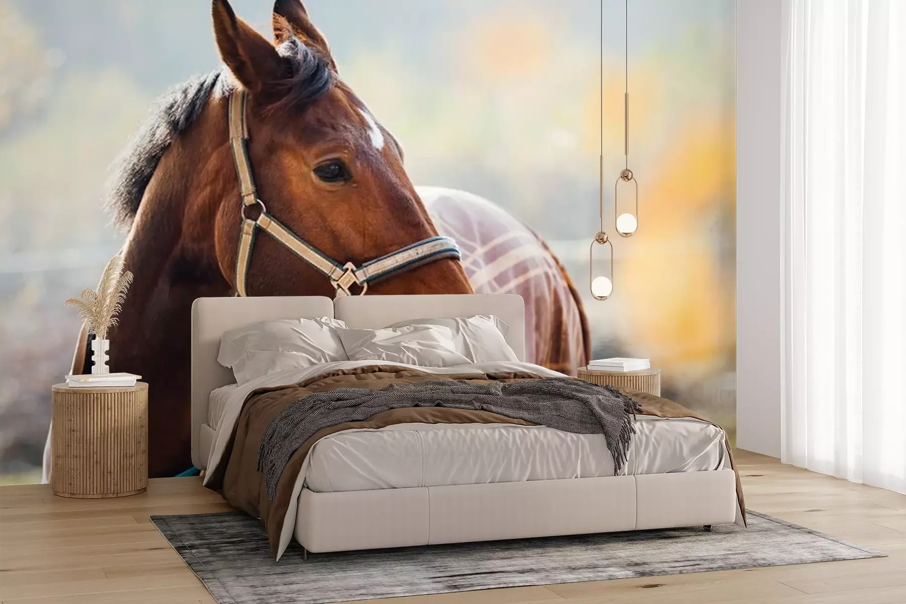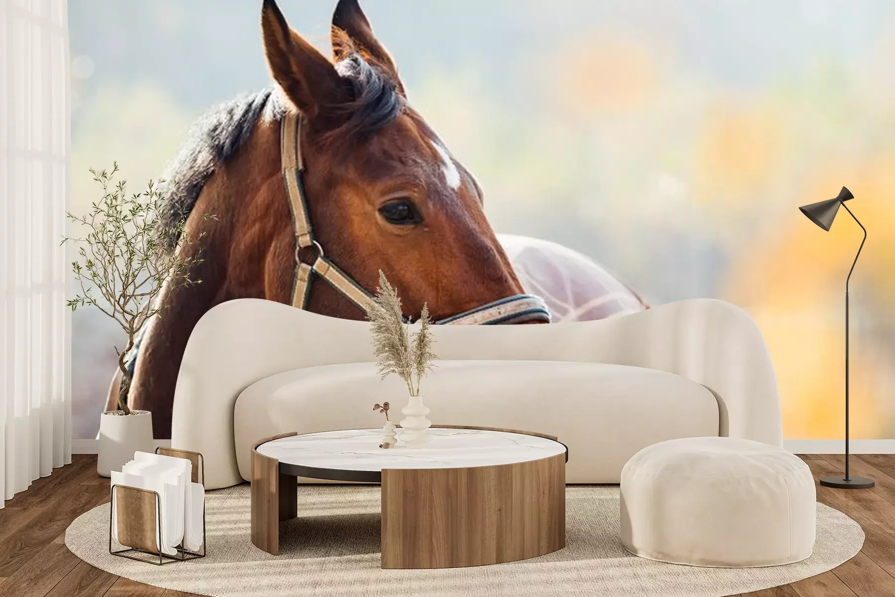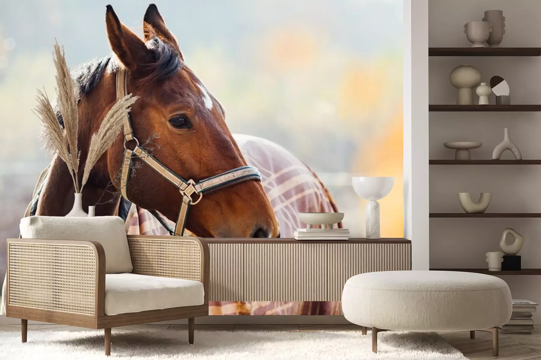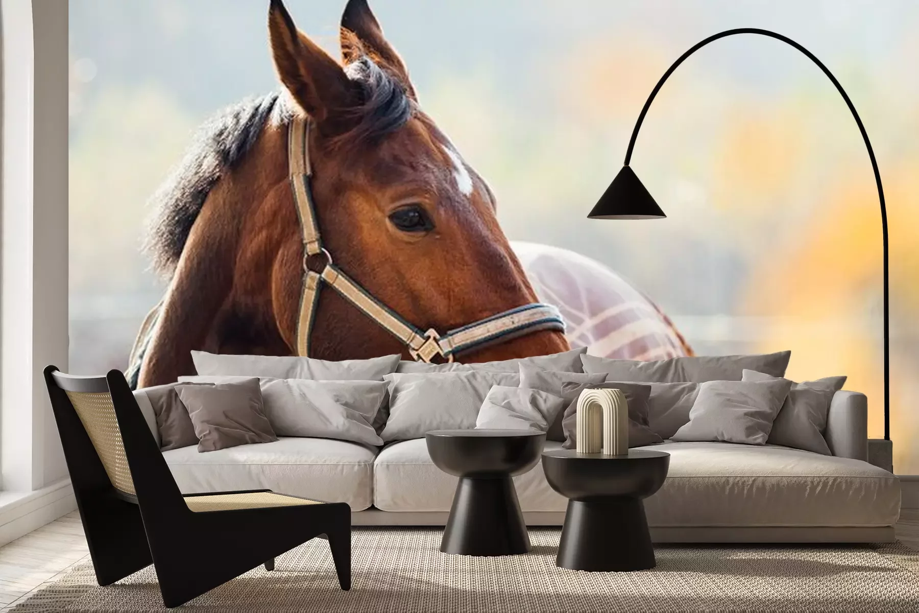 Sticker  Tête de cheval avec brides beiges en gros plan