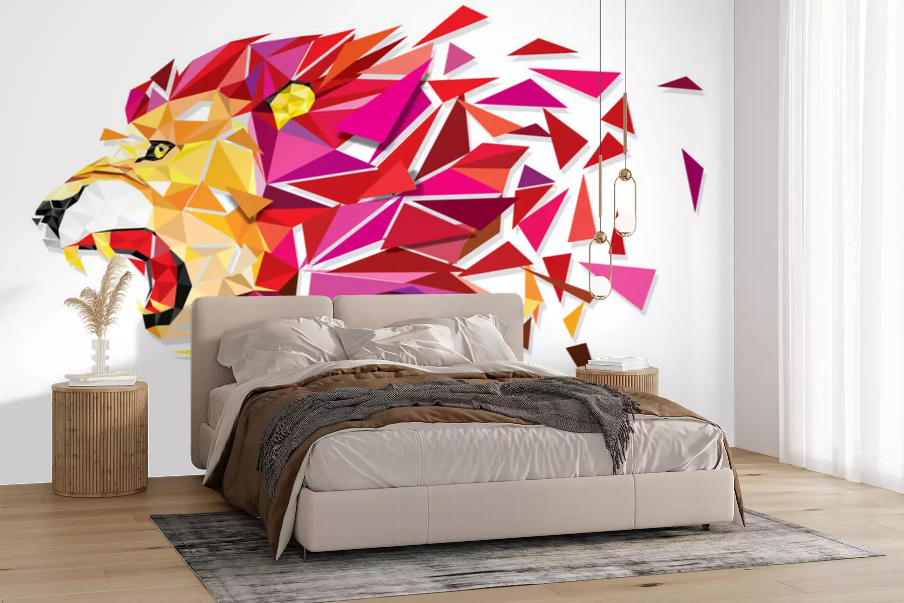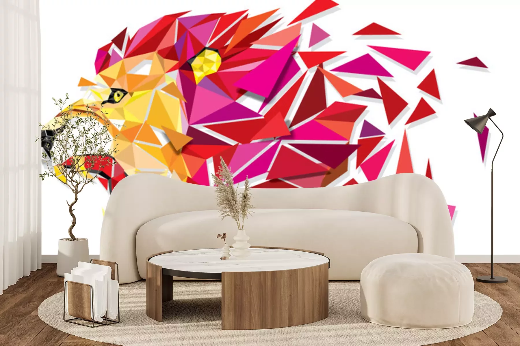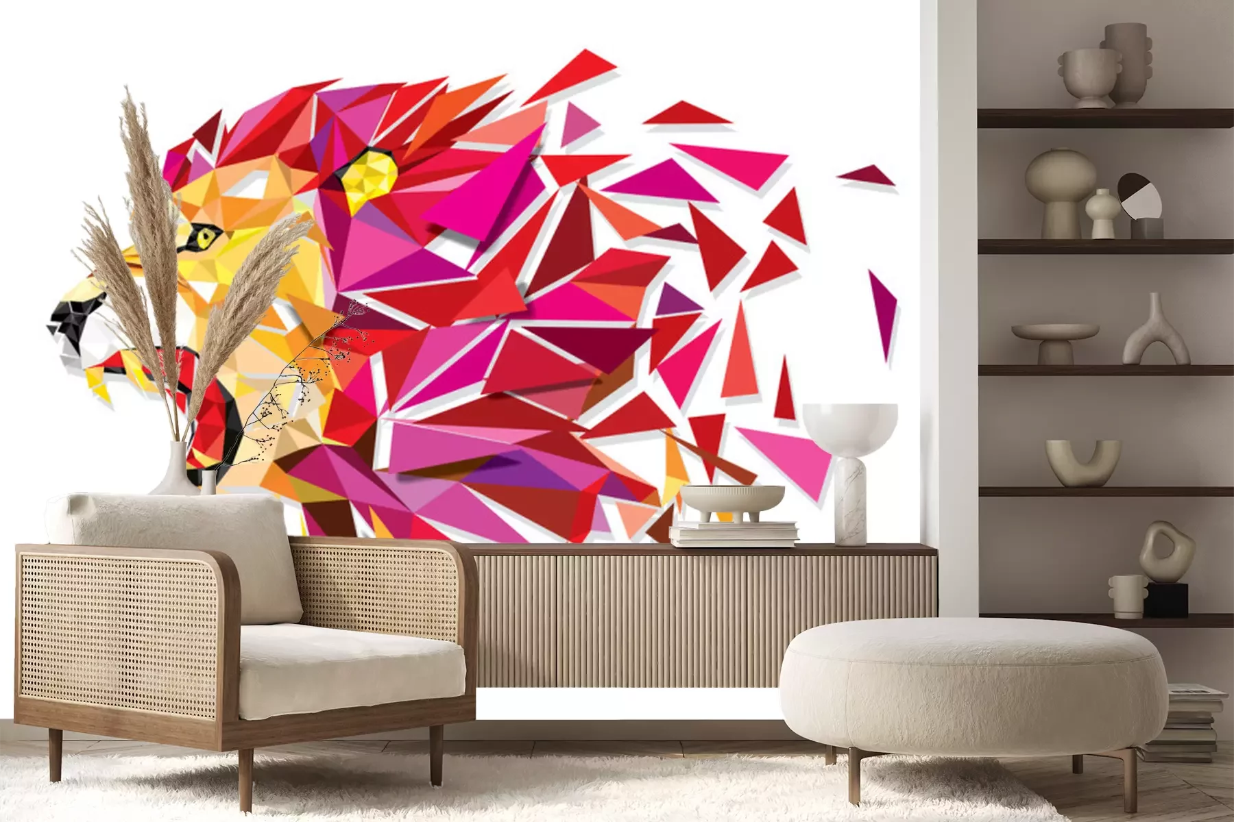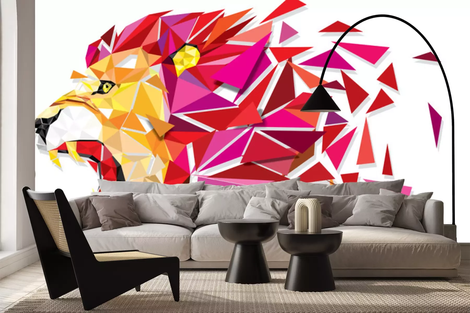 Sticker  Tête de lion lion avec crinière rose géométrique