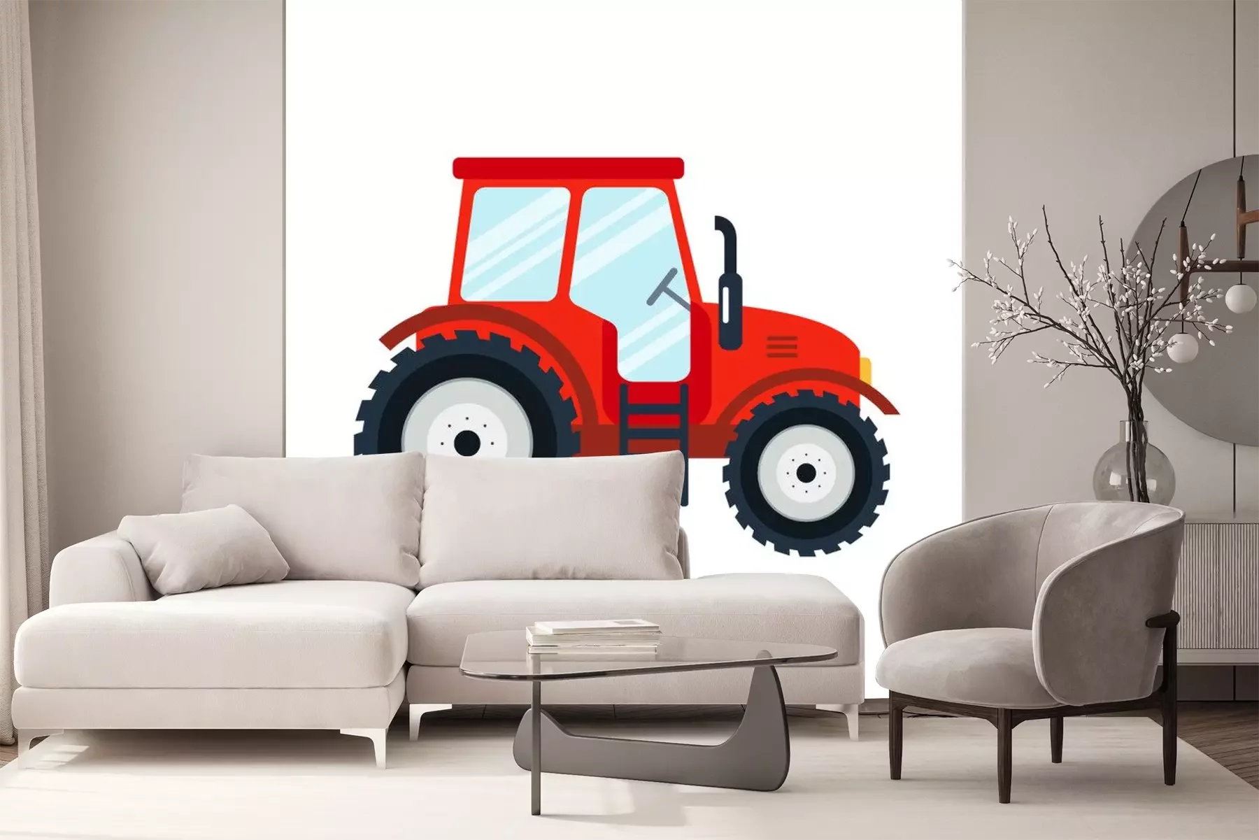 Sticker  Tracteur plat sur fond blanc. Rouge tracteur icône - illustration vectorielle. Tracteur agricole - transport pour la ferme dans le style plat.