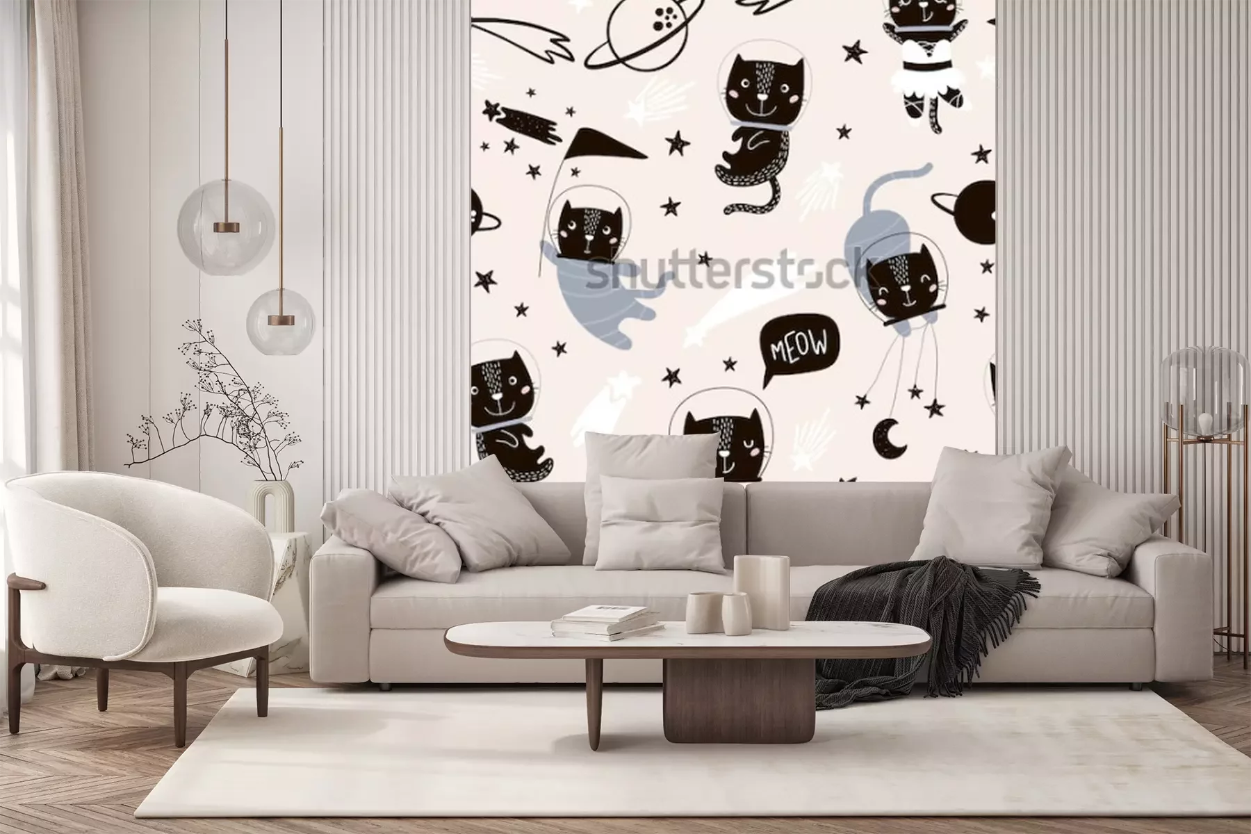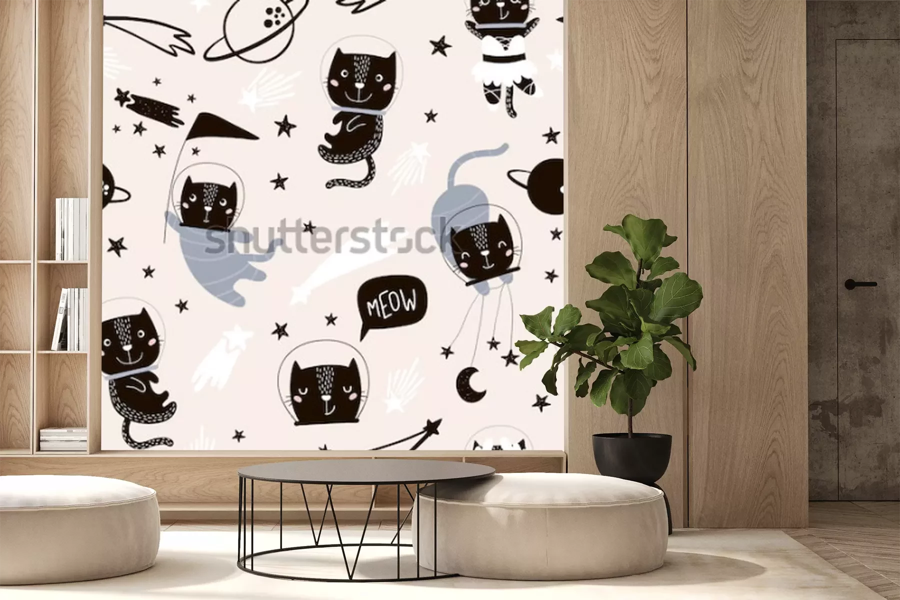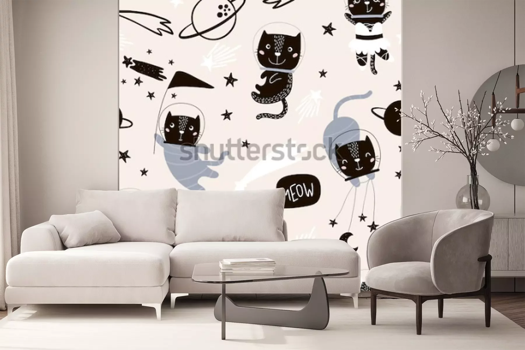 Sticker  Transparente motif enfantin avec les astronautes de chats mignons. Fond de pépinière créative. Parfait pour la conception, le tissu, l'emballage, le papier peint, le textile, l'habillement des