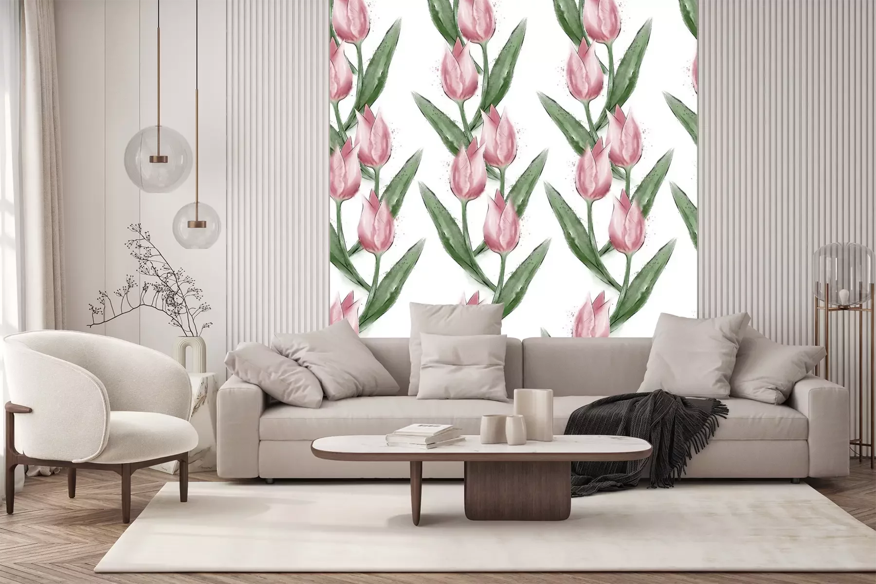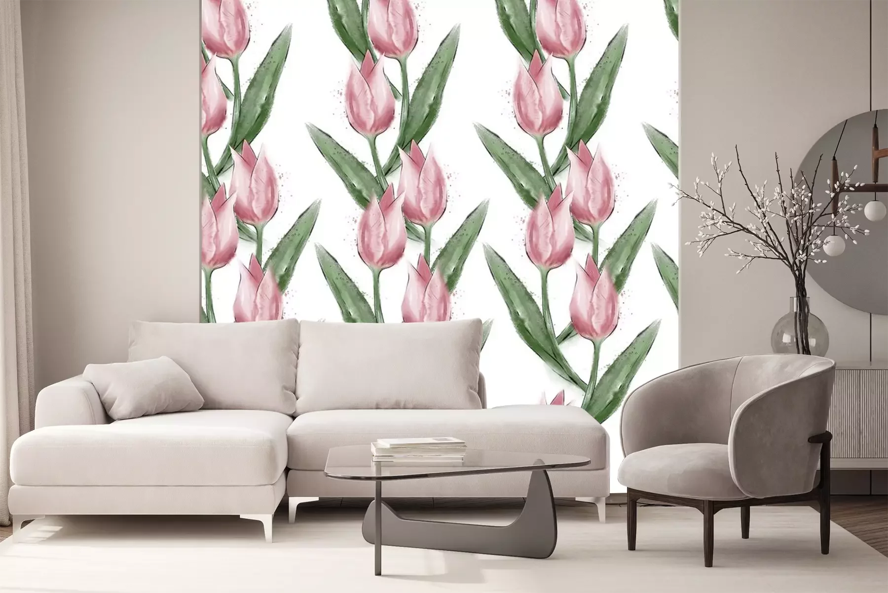 Sticker  Tulipes roses aquarellées sur fond blanc