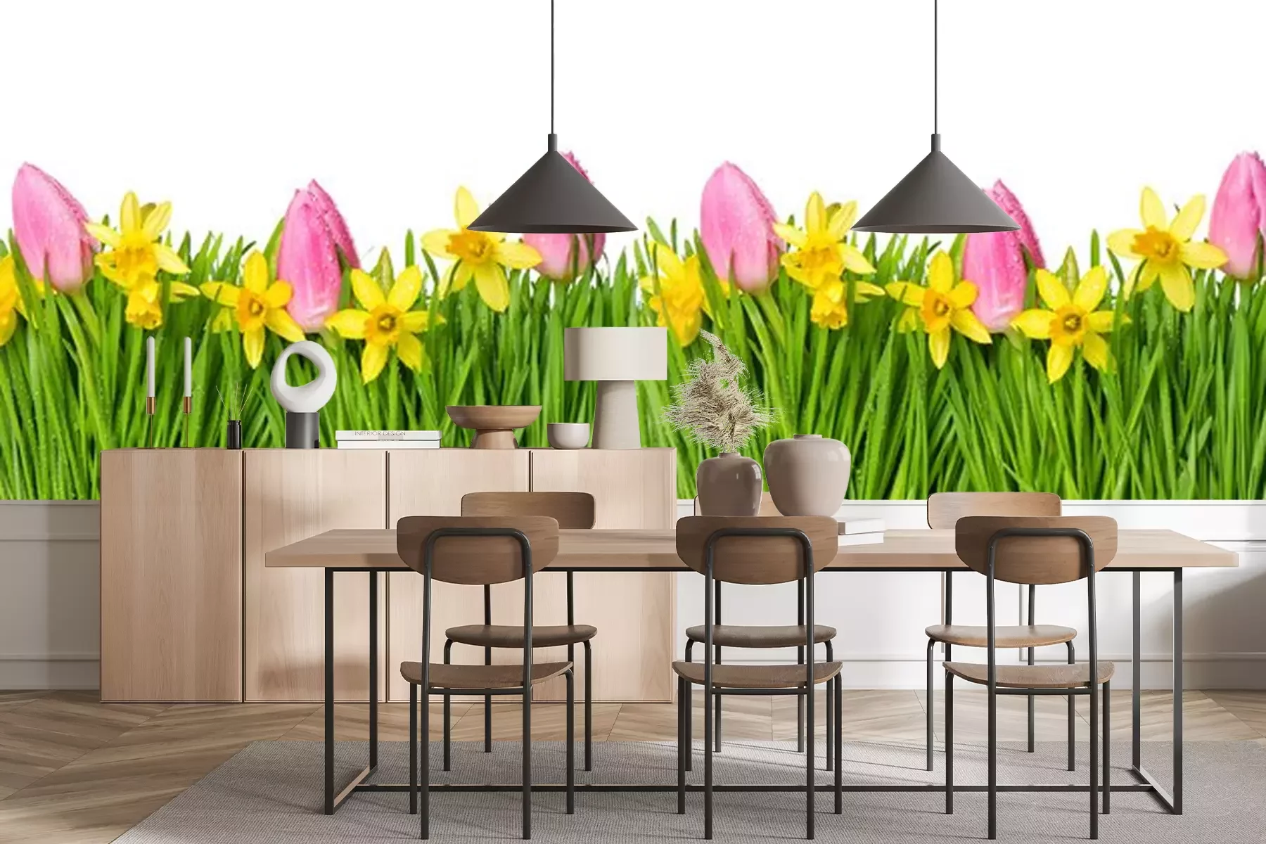 Tulipes, jonquilles et herbeLivraison sans problème assurée par des transporteurs de confiance