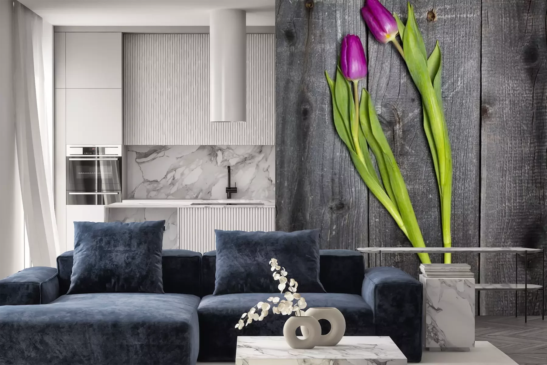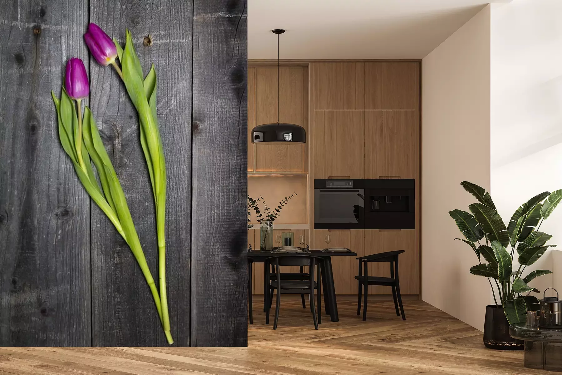 Sticker  Tulipes roses sur un fond en bois