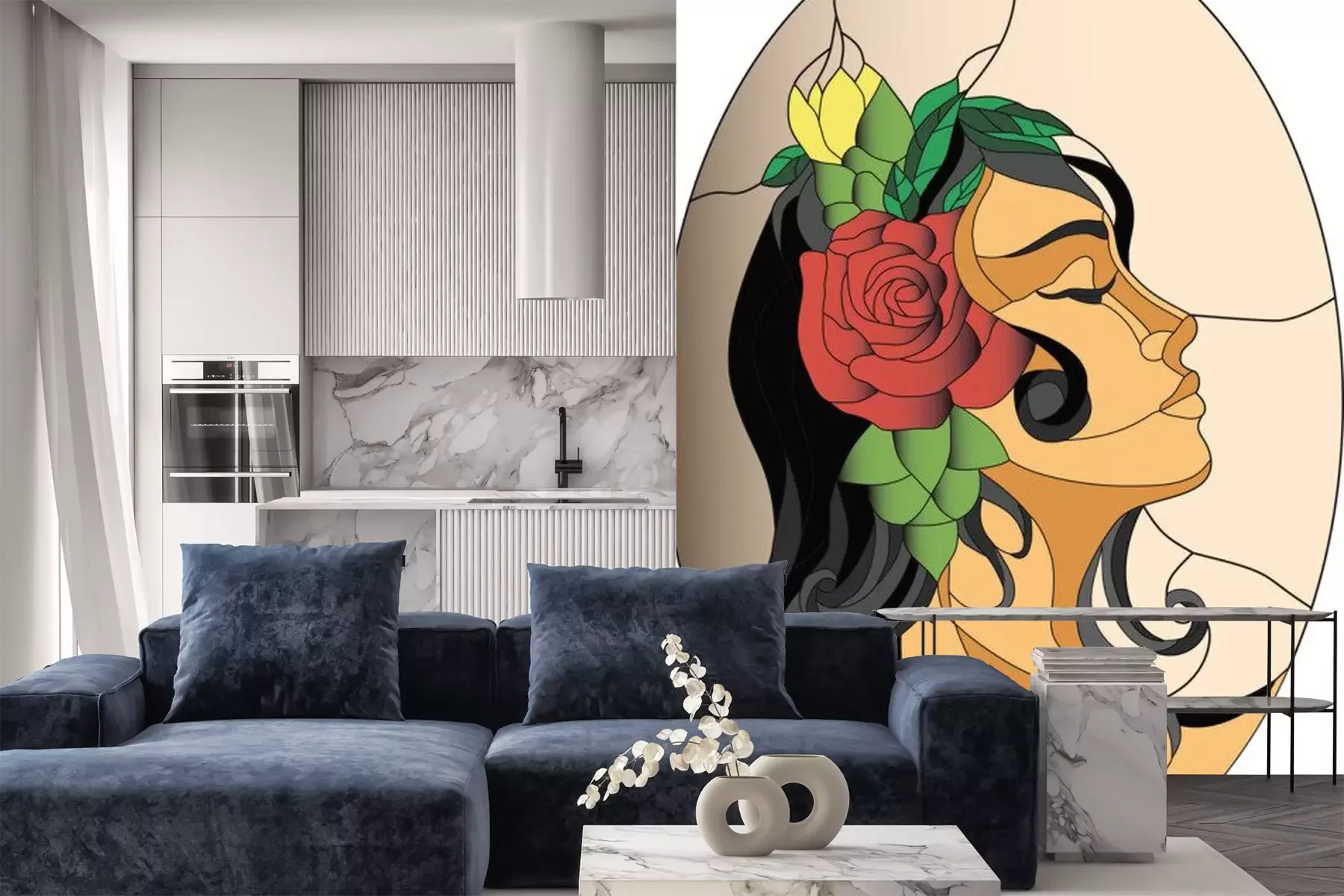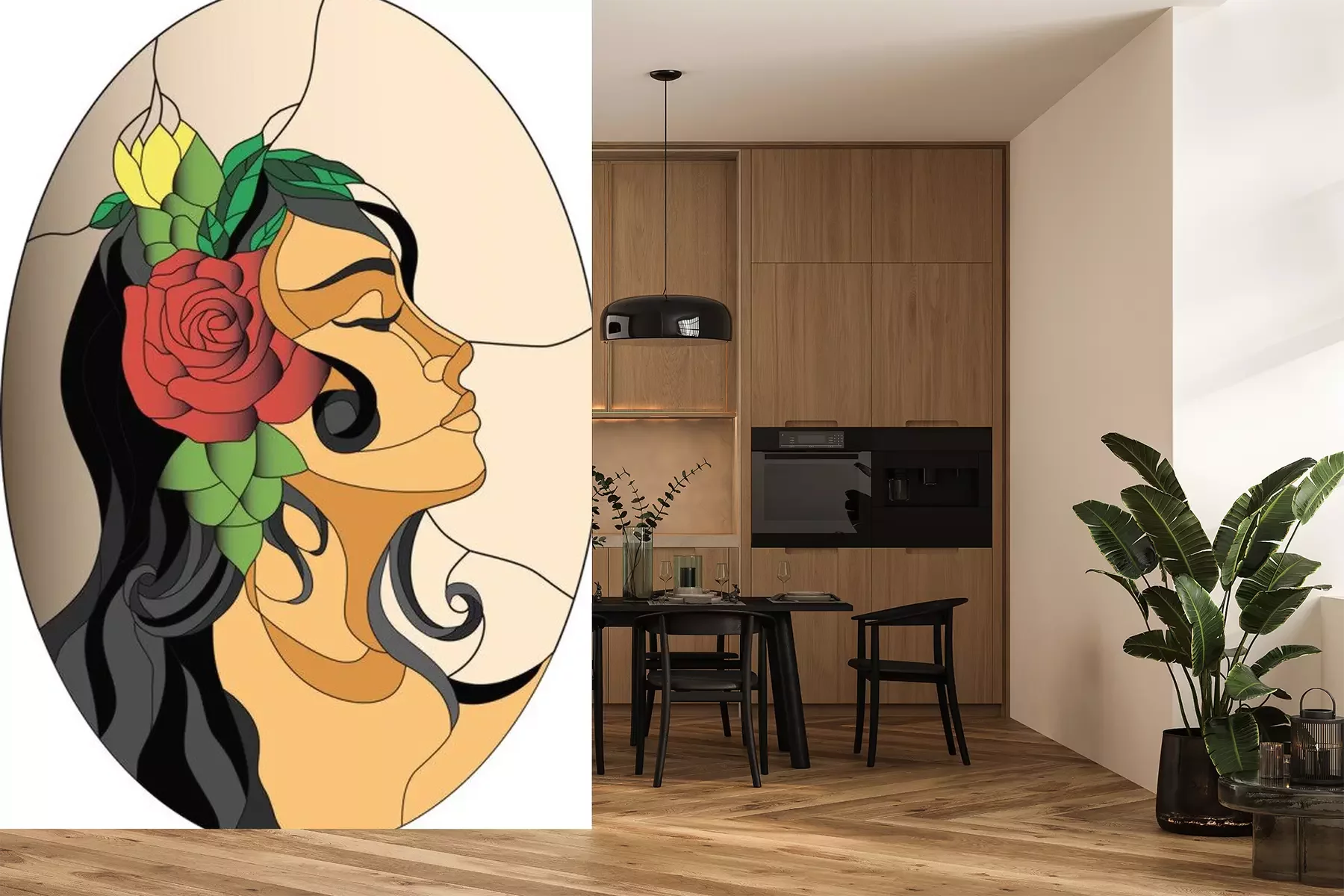 Sticker  Un portrait de femme dans l'esthétique du vitrail
