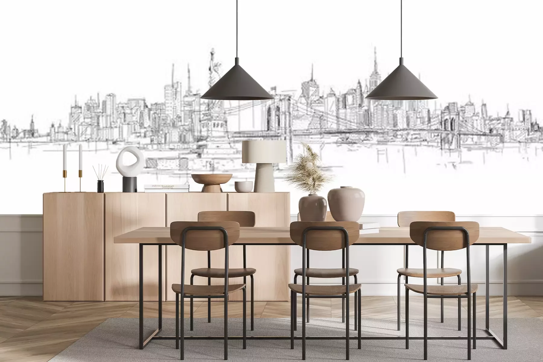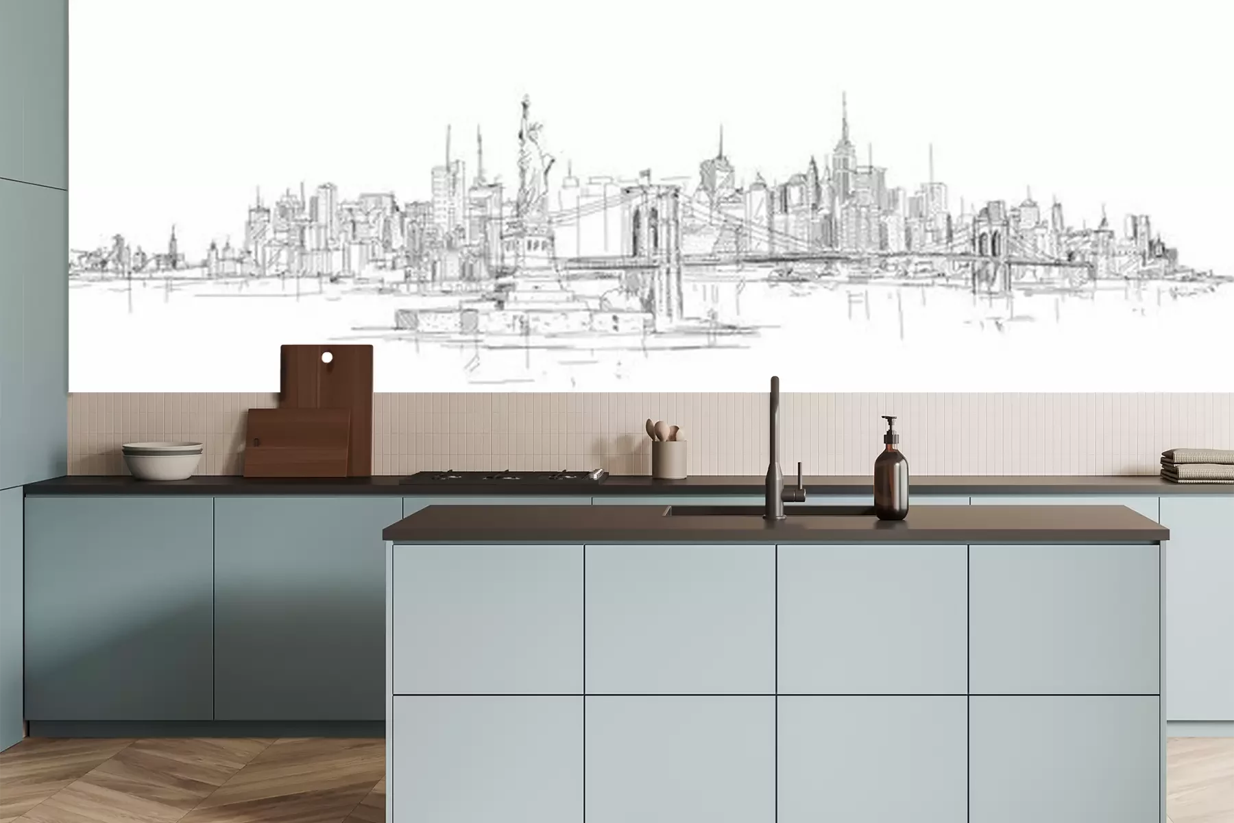 Sticker  Vecteur, croquis, main, dessin, panoramique, nouveau, york, ville, silhouette