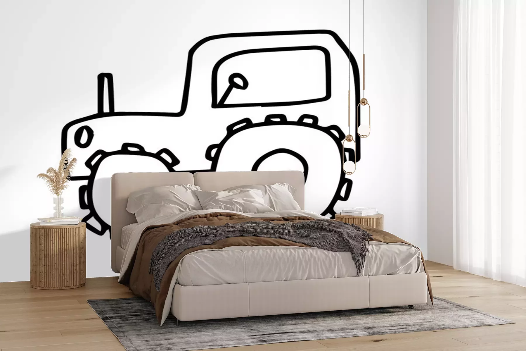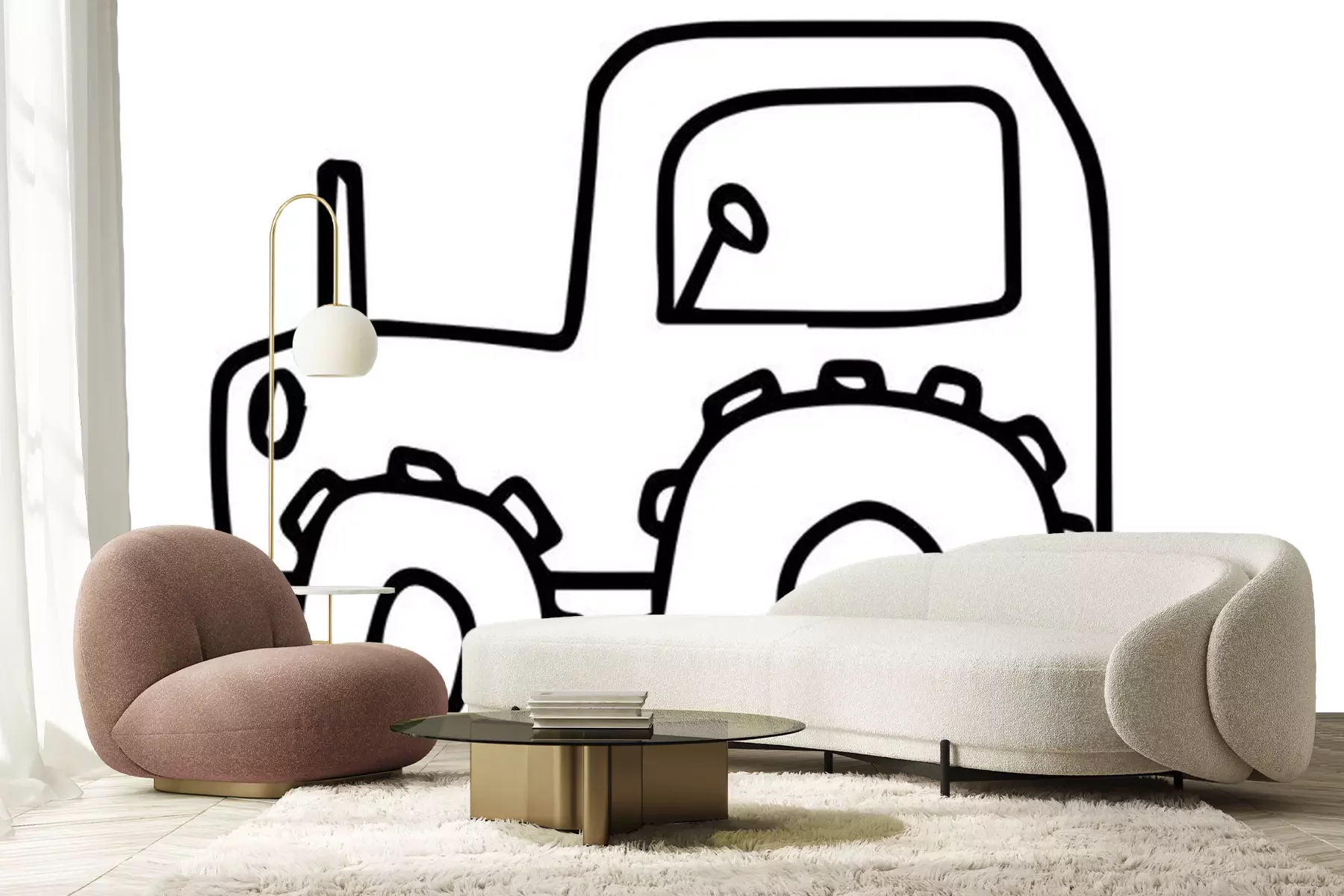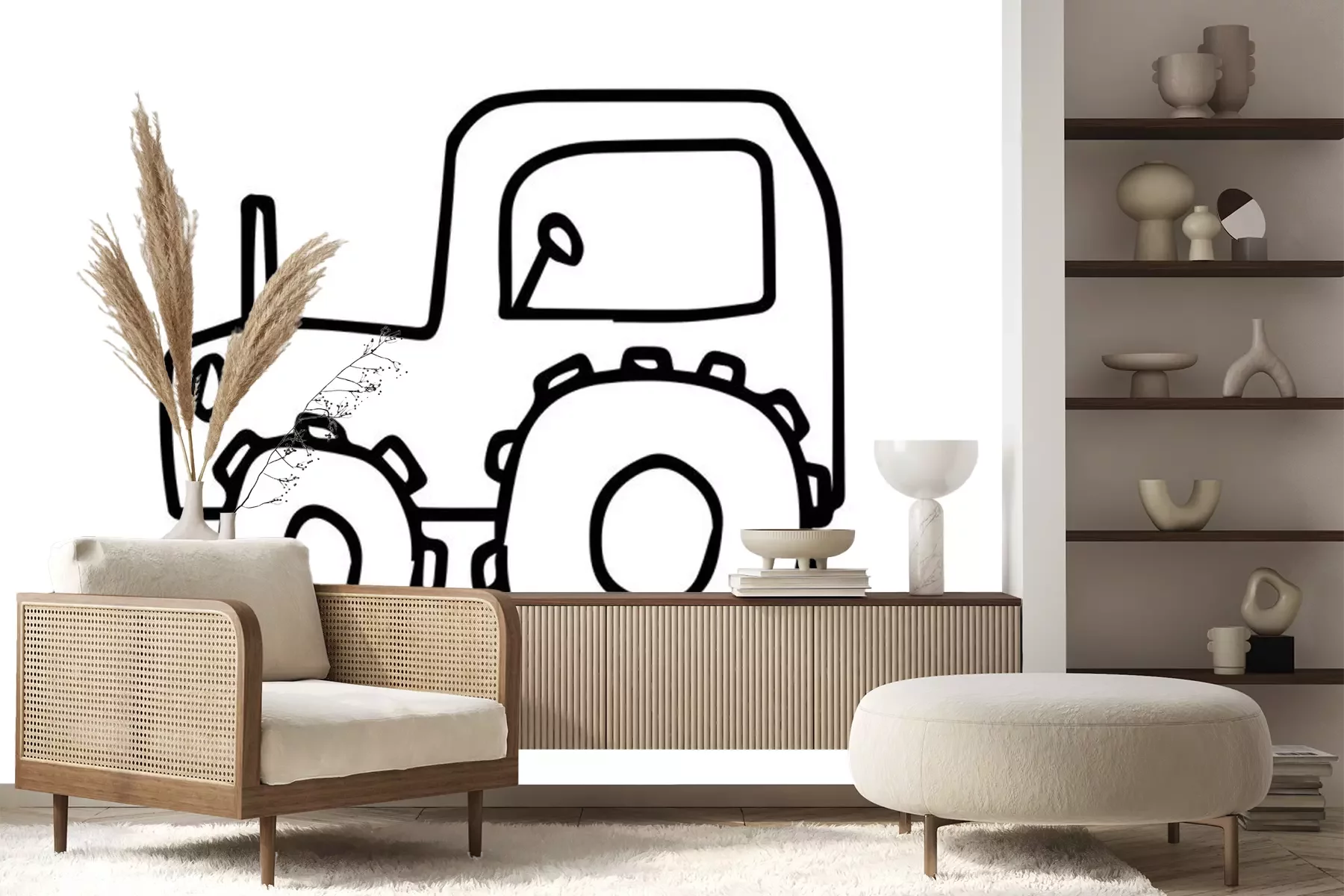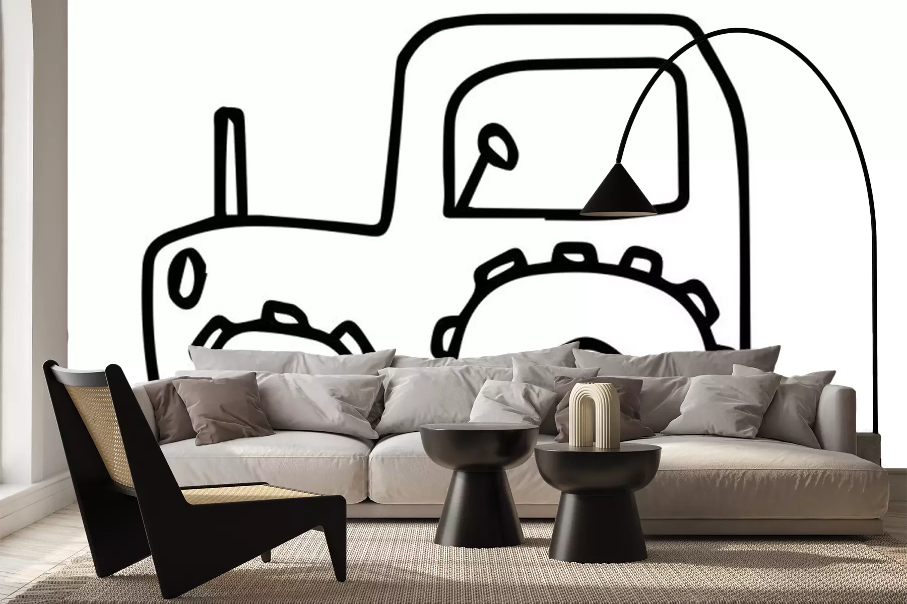 Sticker  Vector Doodle childish tractor hand drawn on an isolated white background. Sketch  black line icon. Design for cards, coloring, textiles, packaging paper, stickers, web and mobile.