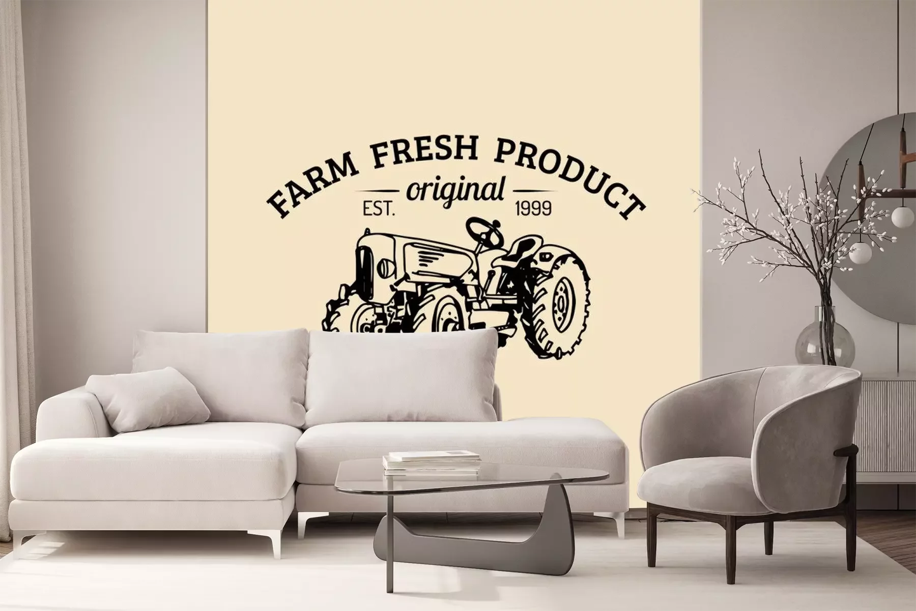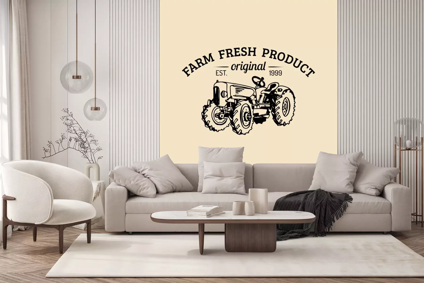 Sticker  Vector logo rétro logo de la ferme.Organic produits de qualité supérieure logo.Eco signe de la nourriture.Vintage icône tracteur tracé à la main.