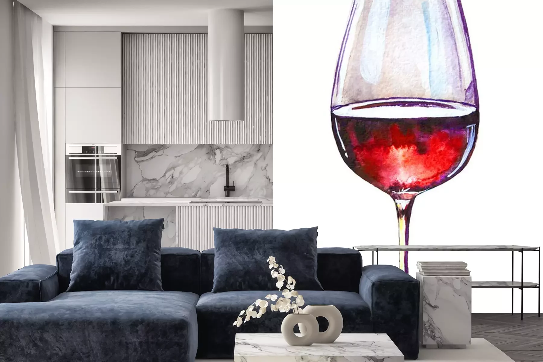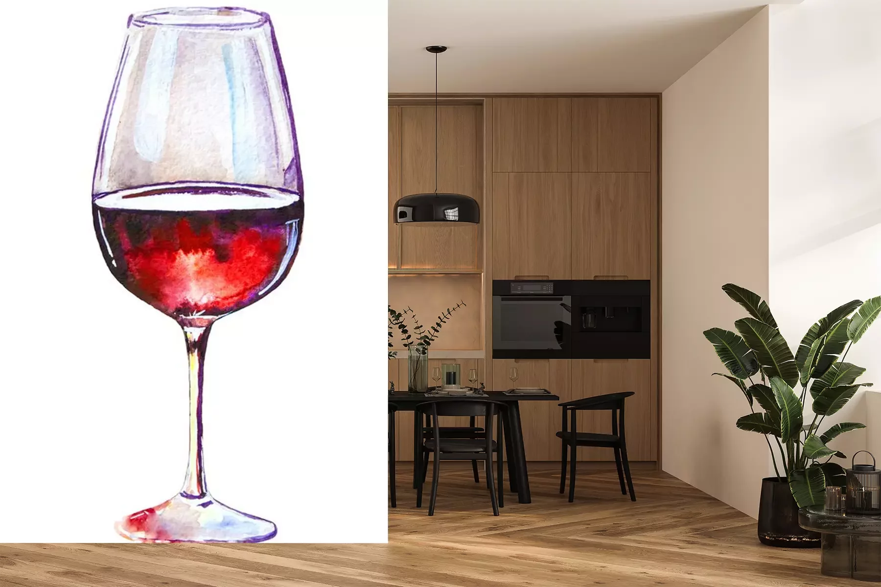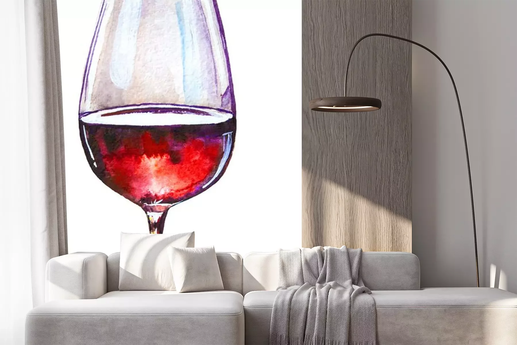 Sticker  Verre de vin rouge isolé sur fond blanc. Dessin pittoresque