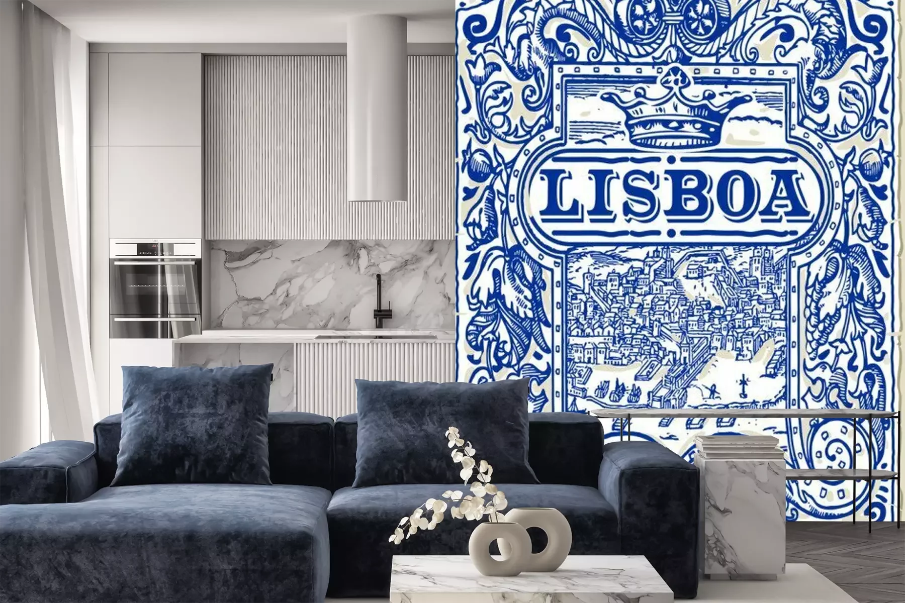 Sticker  Vieille illustration avec l'horizon de Lisbonne