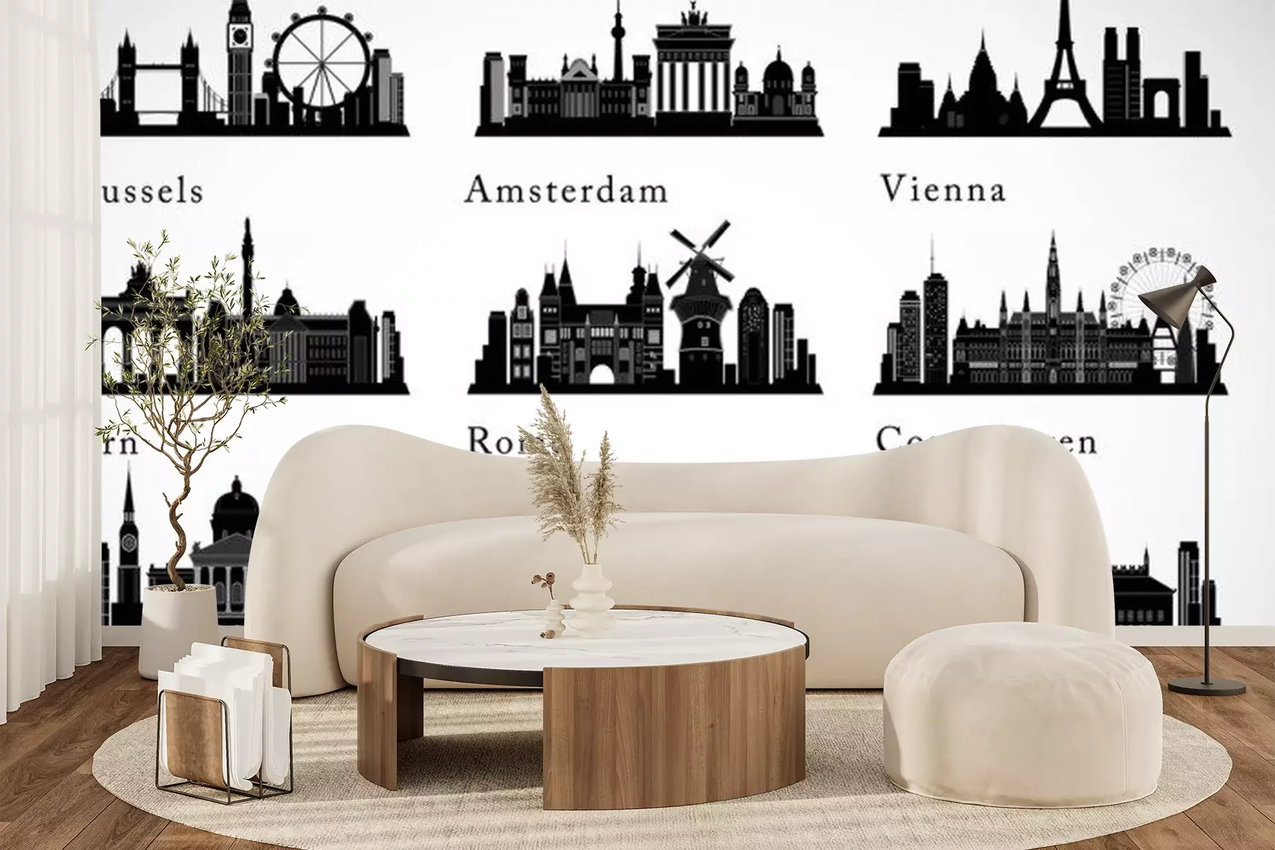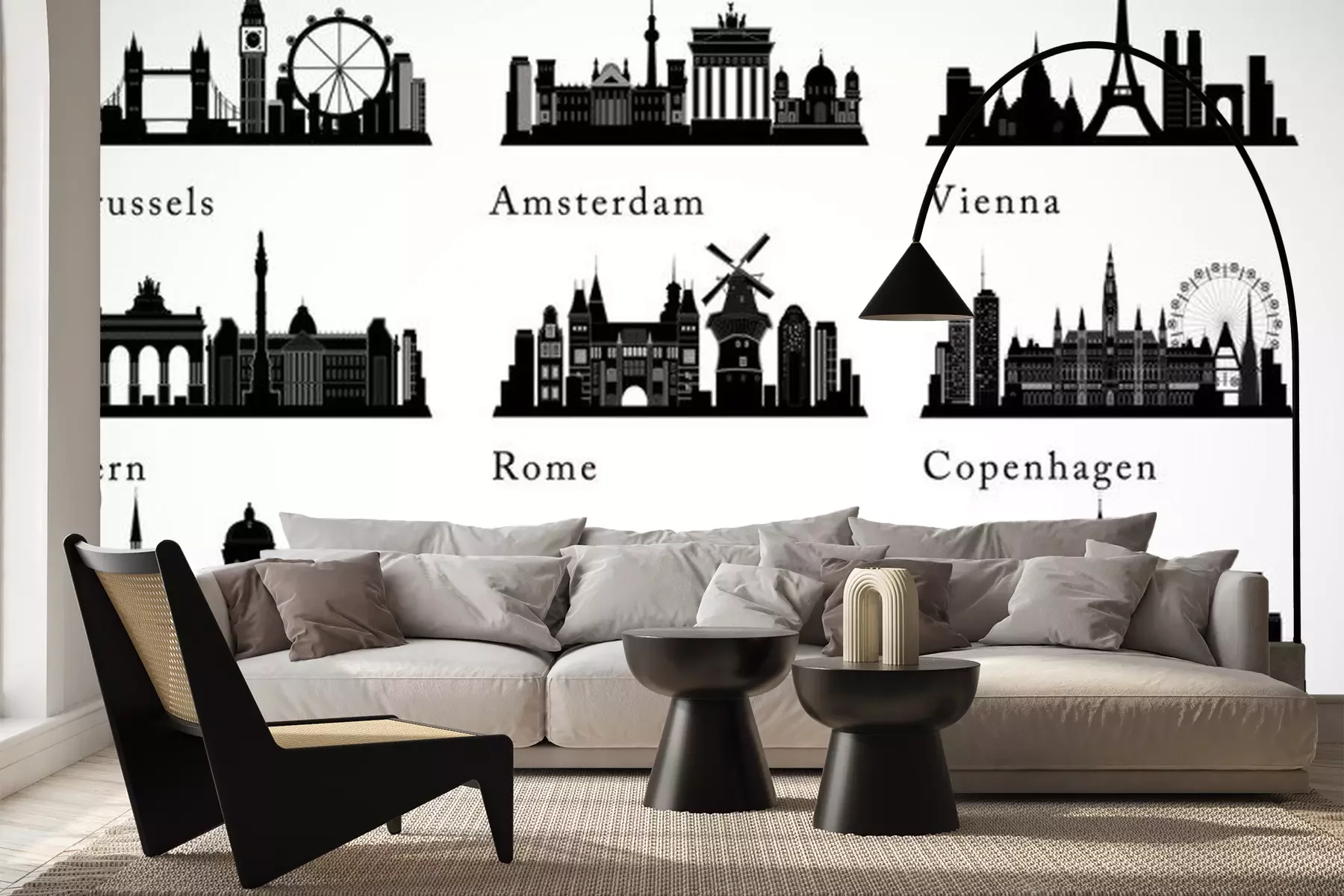 Sticker  Villes européennes horizons fixés. Vector silhouettes
