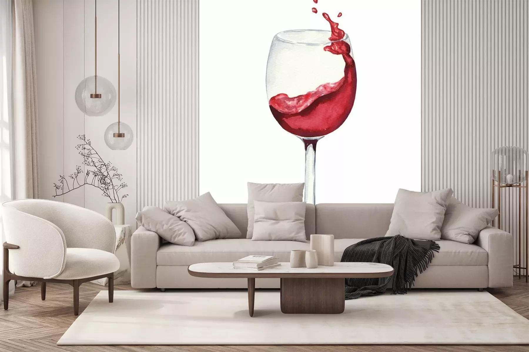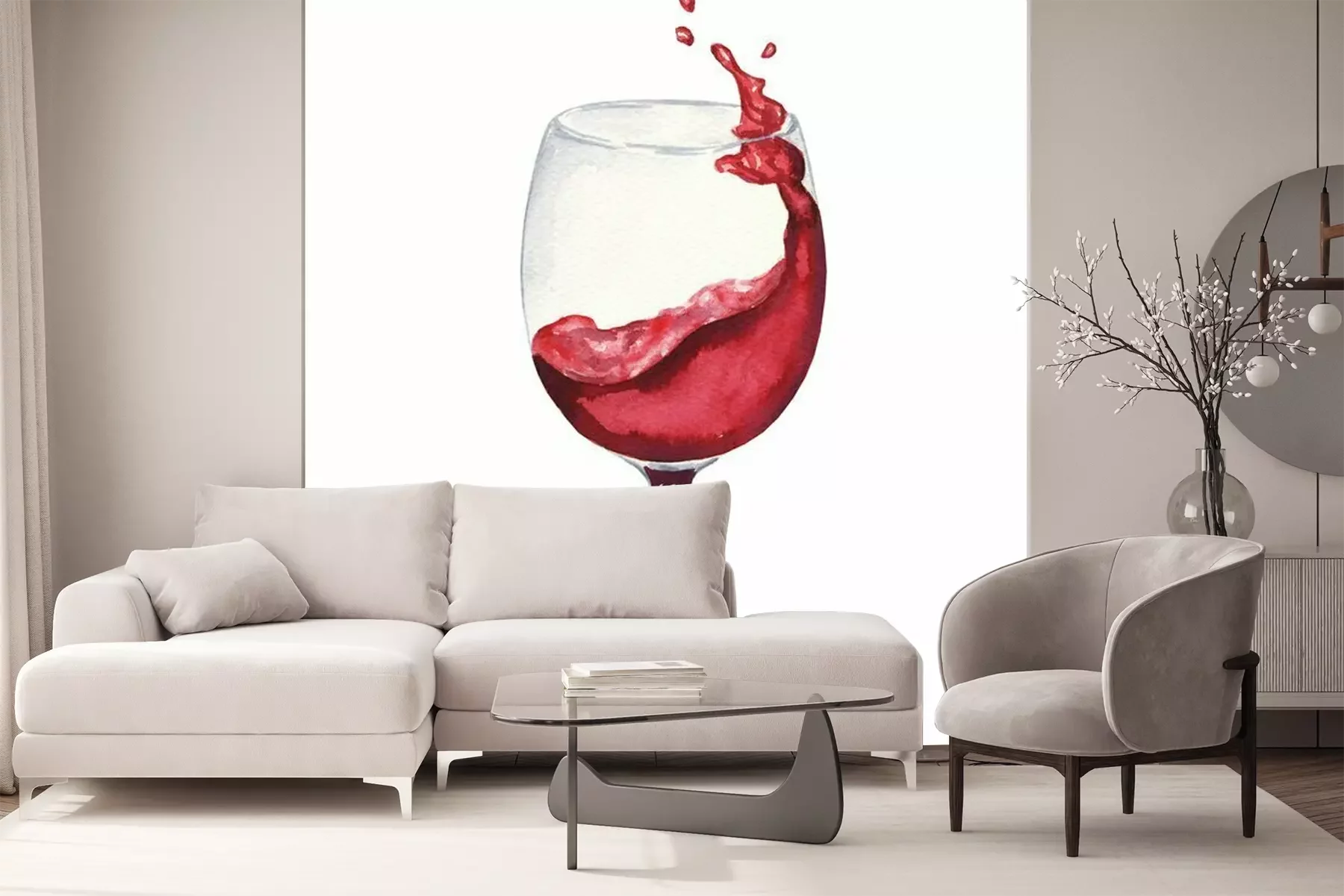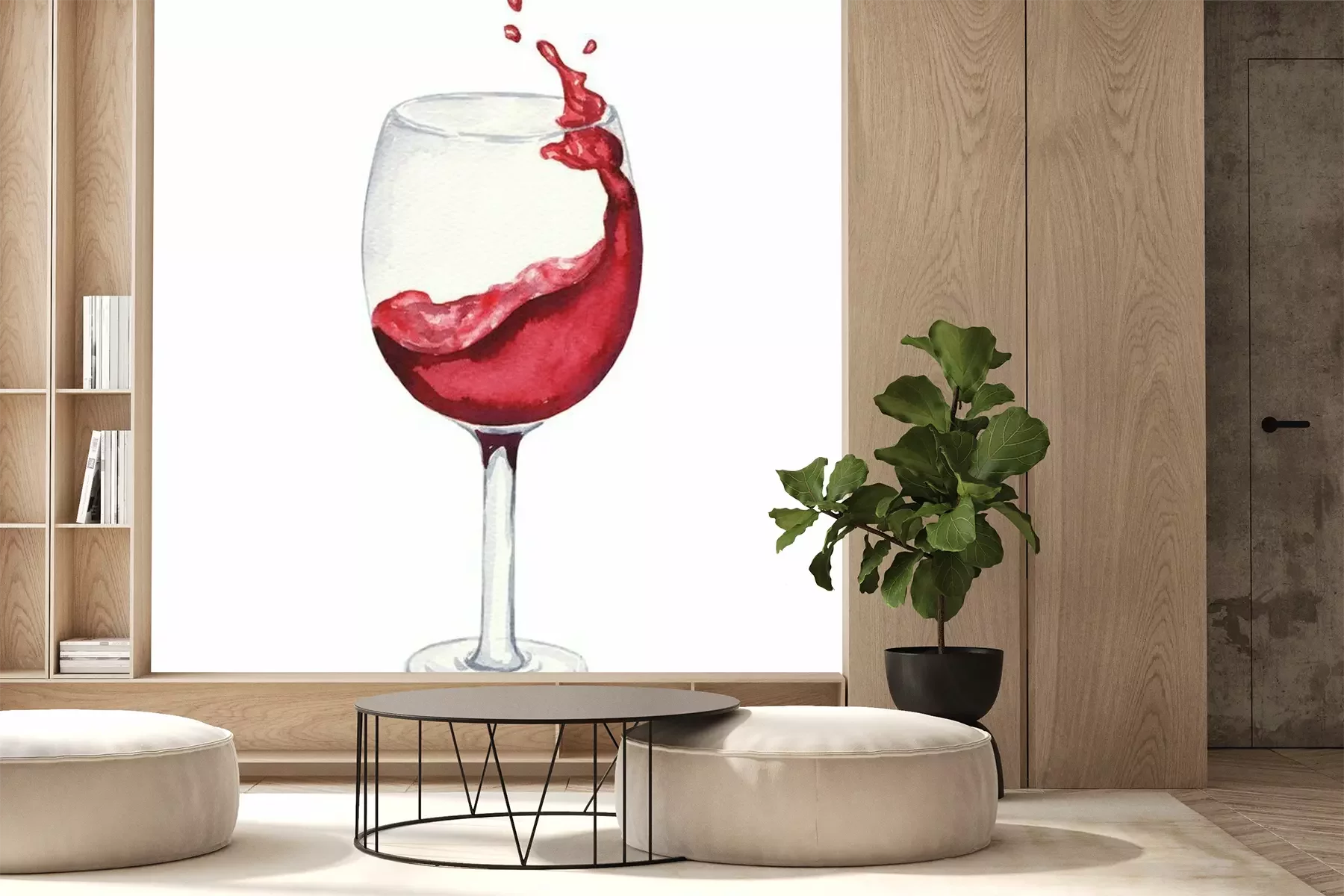 Sticker  Vin de verre aquarelle dessiné main avec splash liquide isolé sur fond blanc. Boire des illustrations.