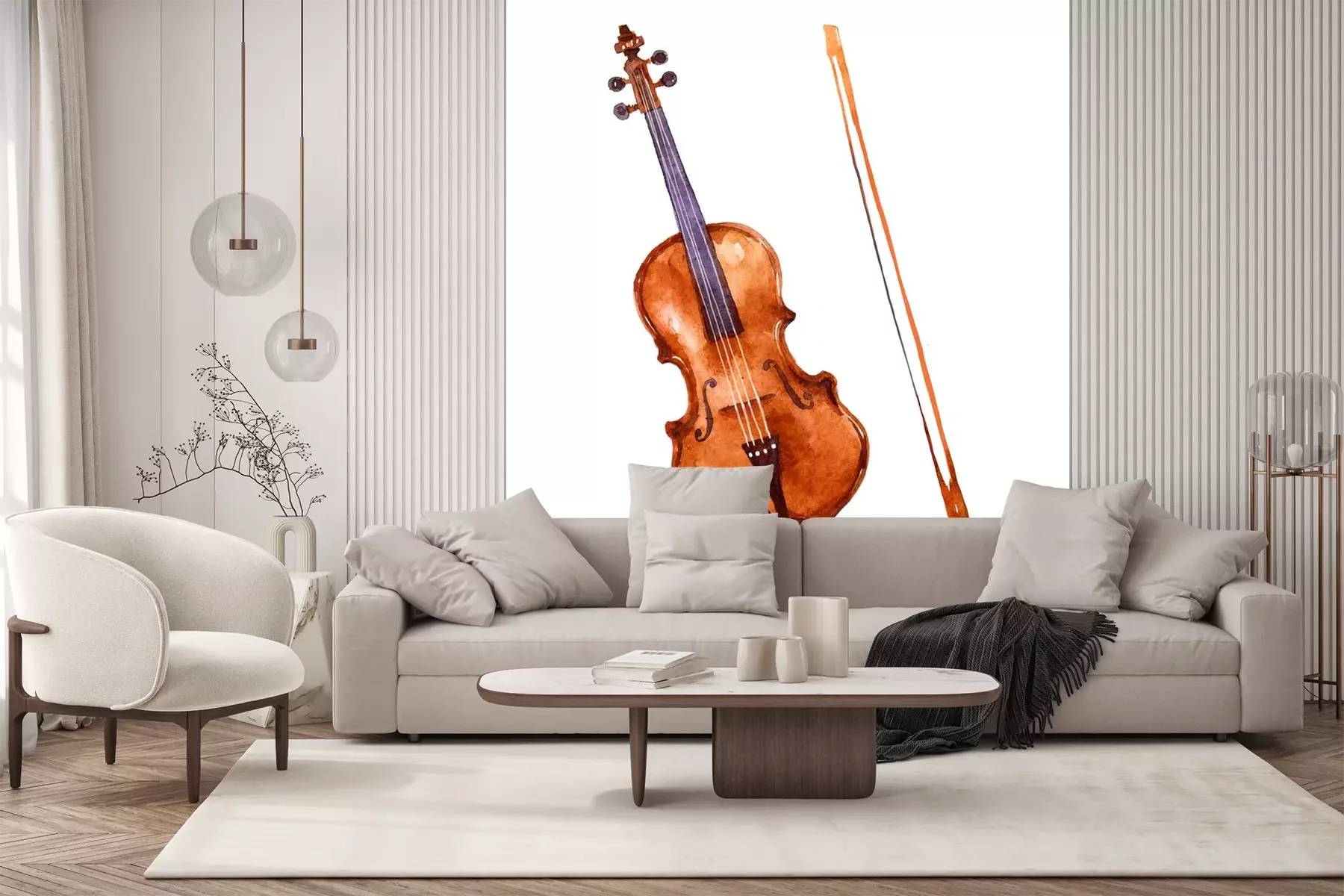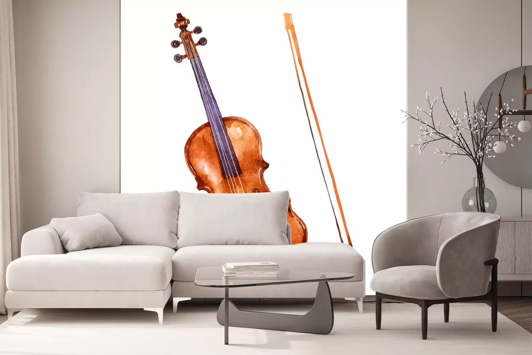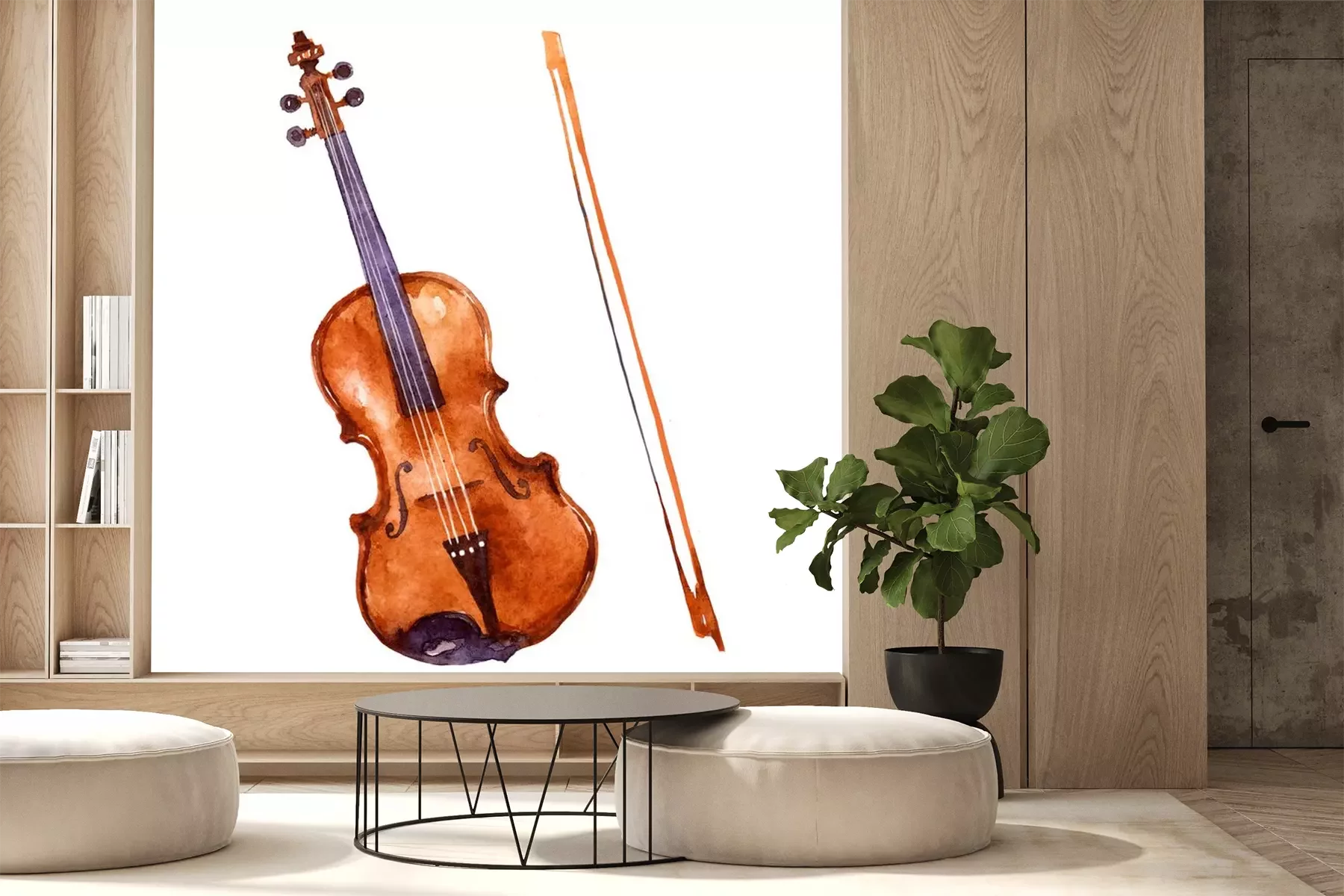 Sticker  Violine. Music instrument watercolor illustration on white background