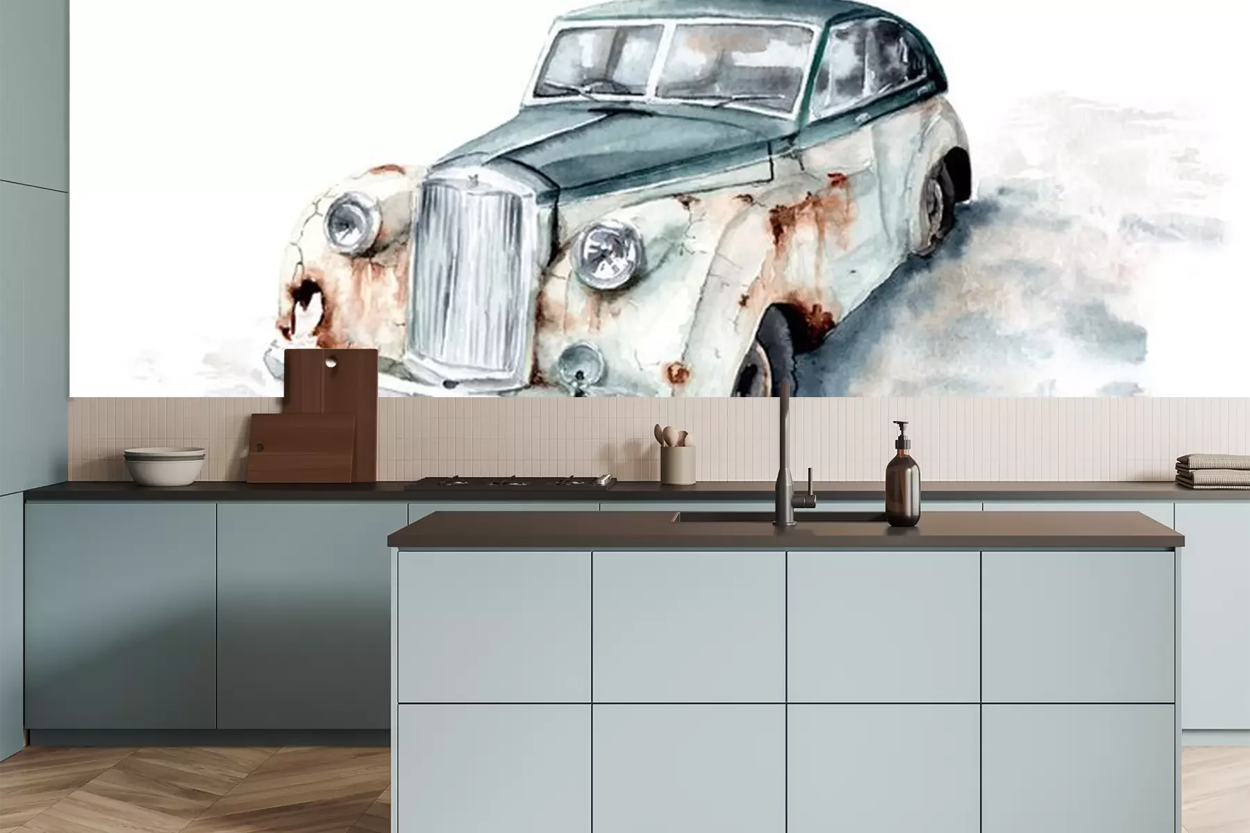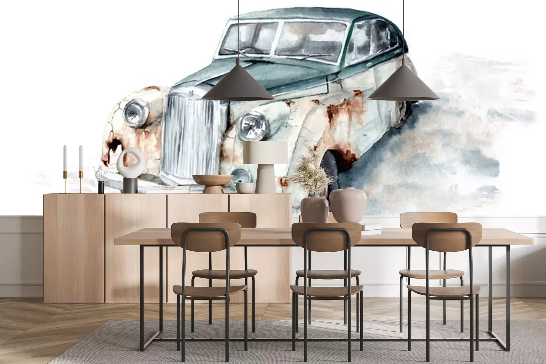 Sticker  Voiture à l’aquarelle dans le style rétro