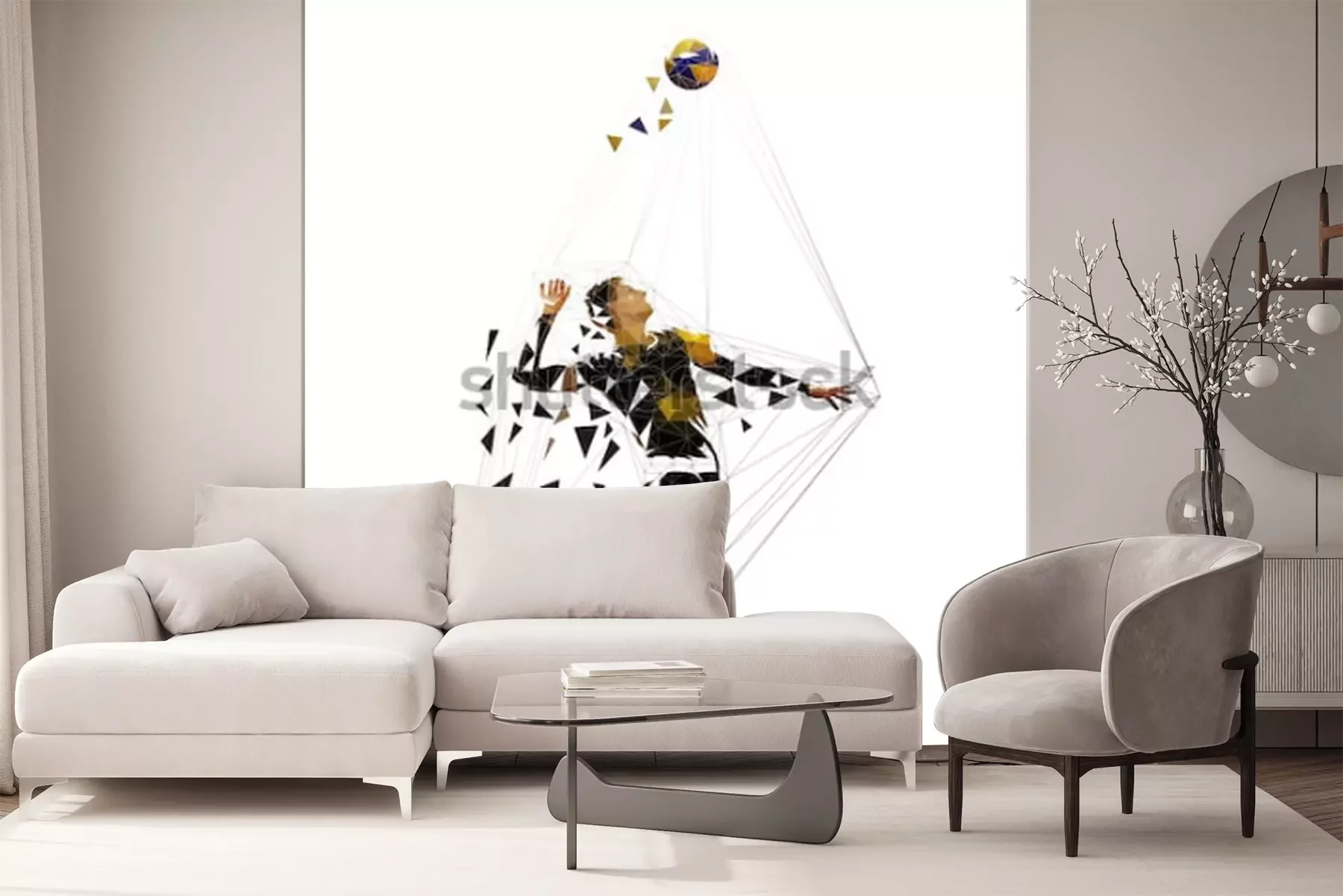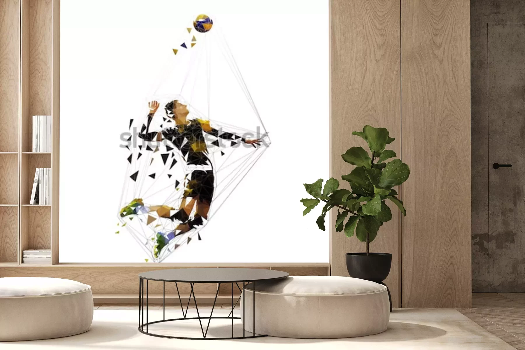 Sticker  Volleyball player serving ball, polygonal vector illustration