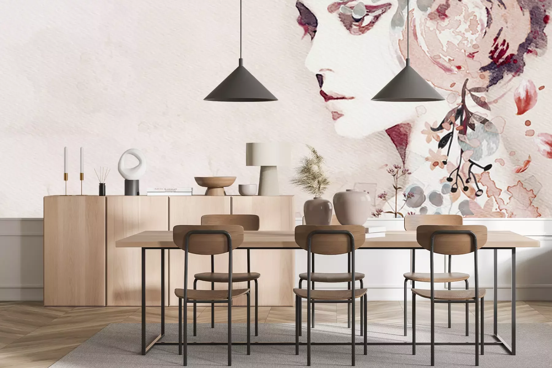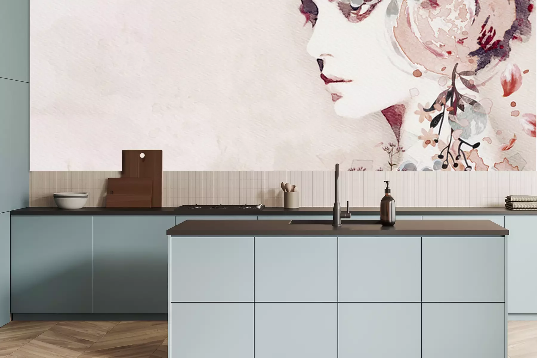 Sticker  Watercolor abstract portrait of girl. Fashion background.