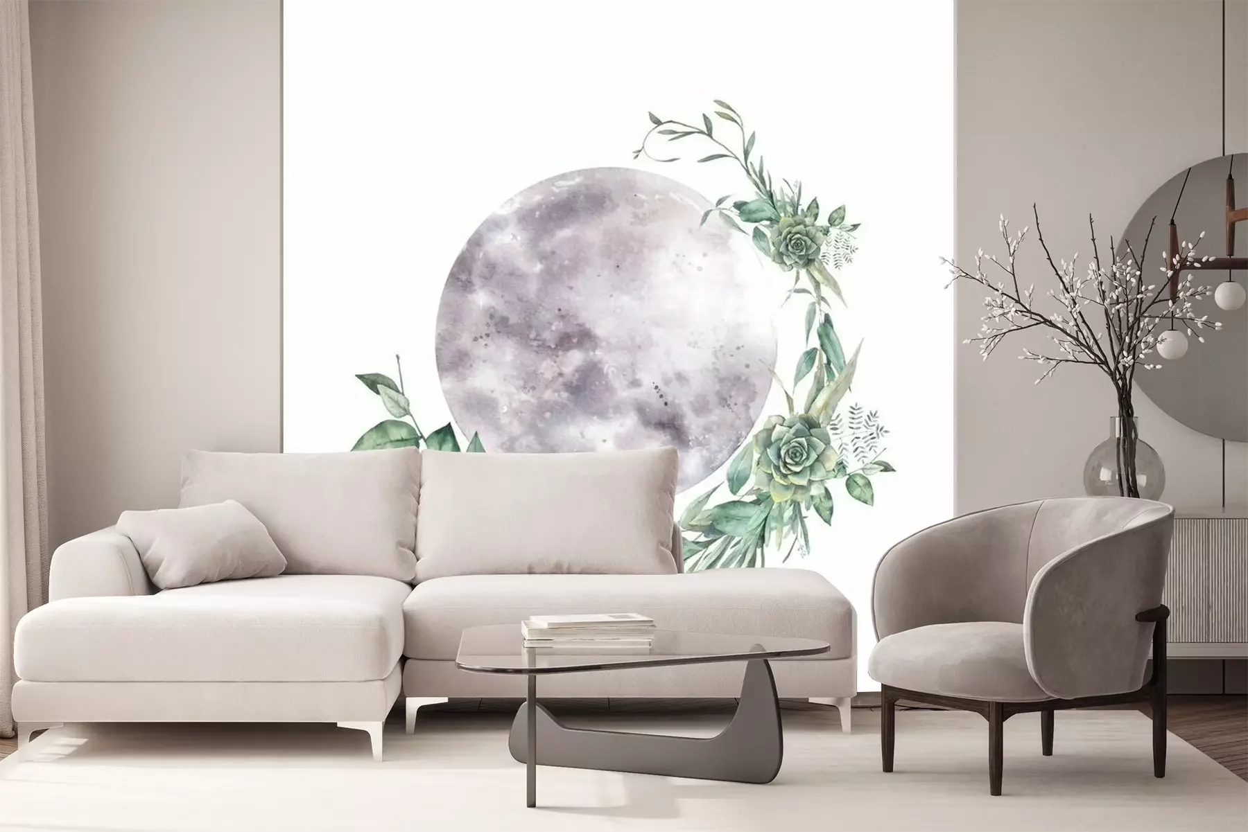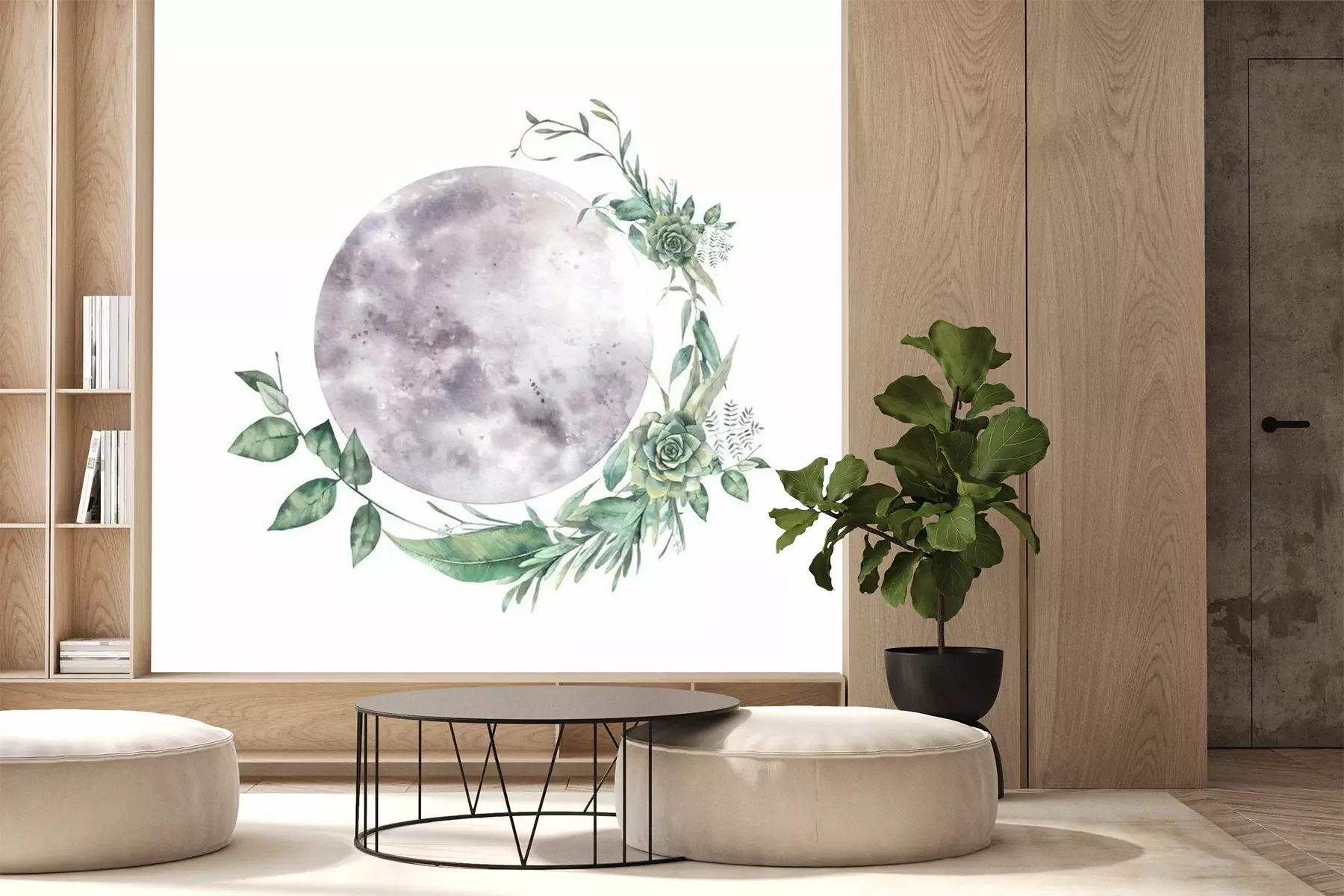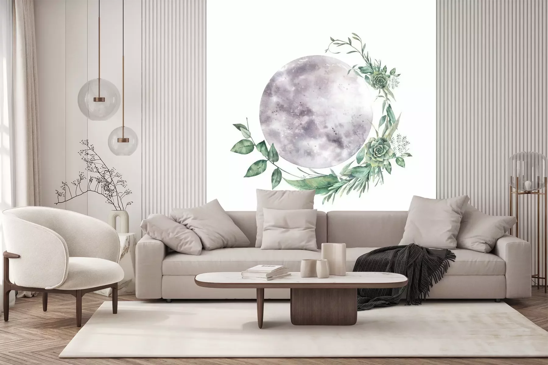 Sticker  Watercolor moon and floral wreath. Natural illustration for logo, tattoo, banner, sticker. Isolated art on white background