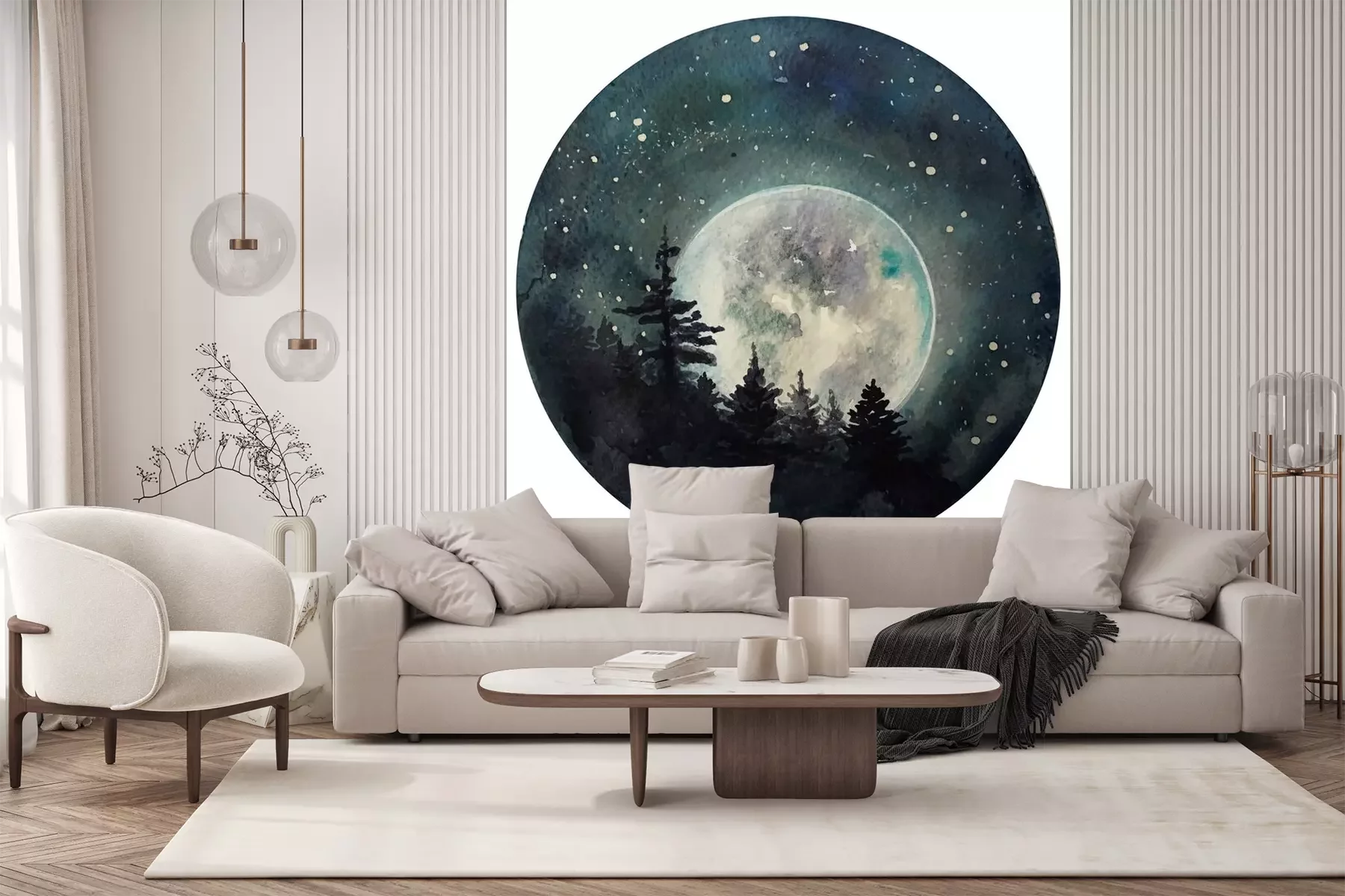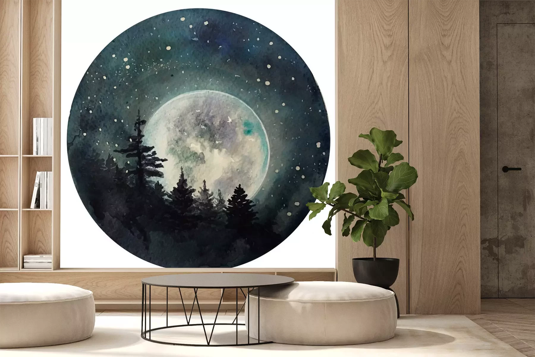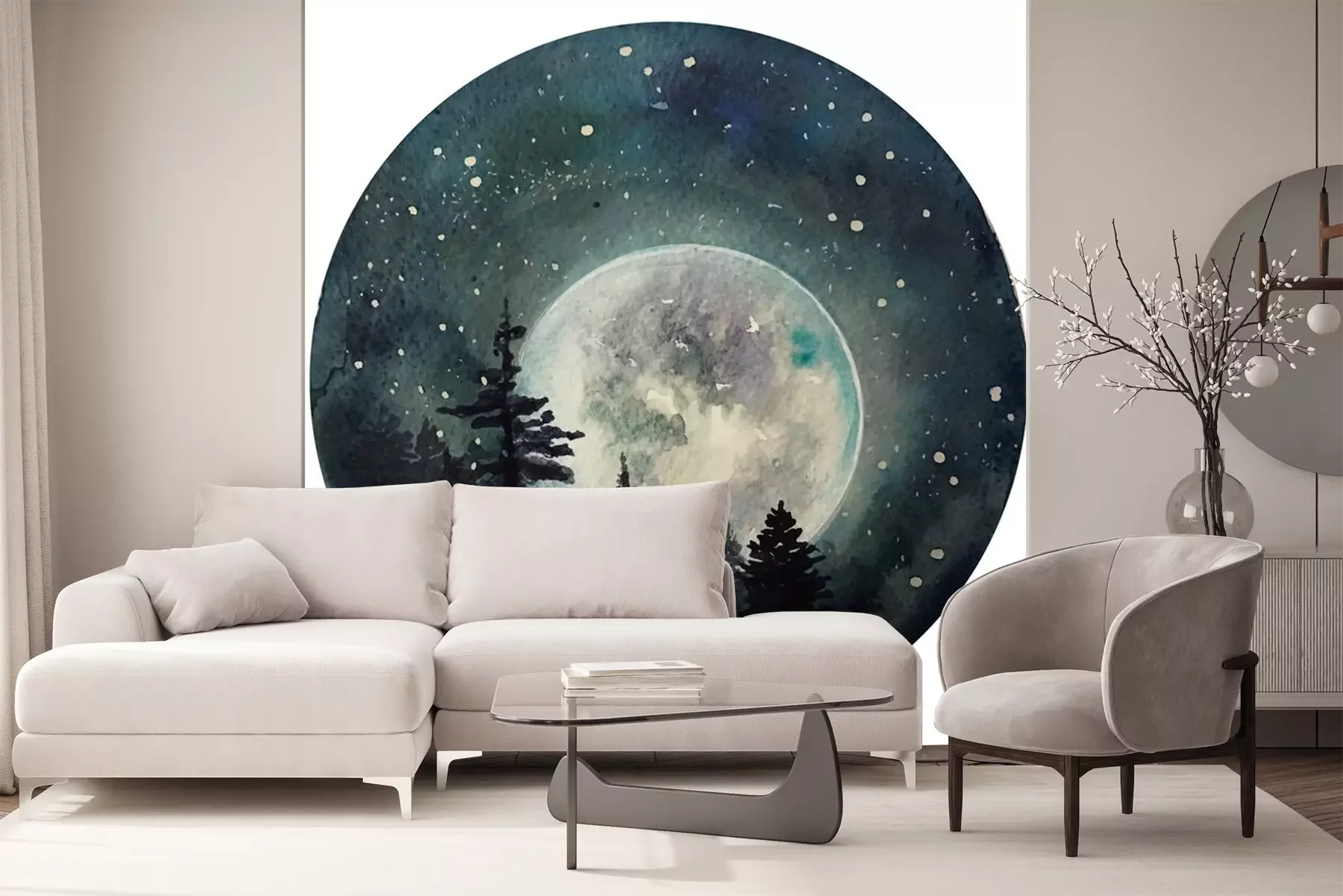 Sticker  Watercolor Moon at starry night, galaxy with stars, space and astrology universe illustration.
