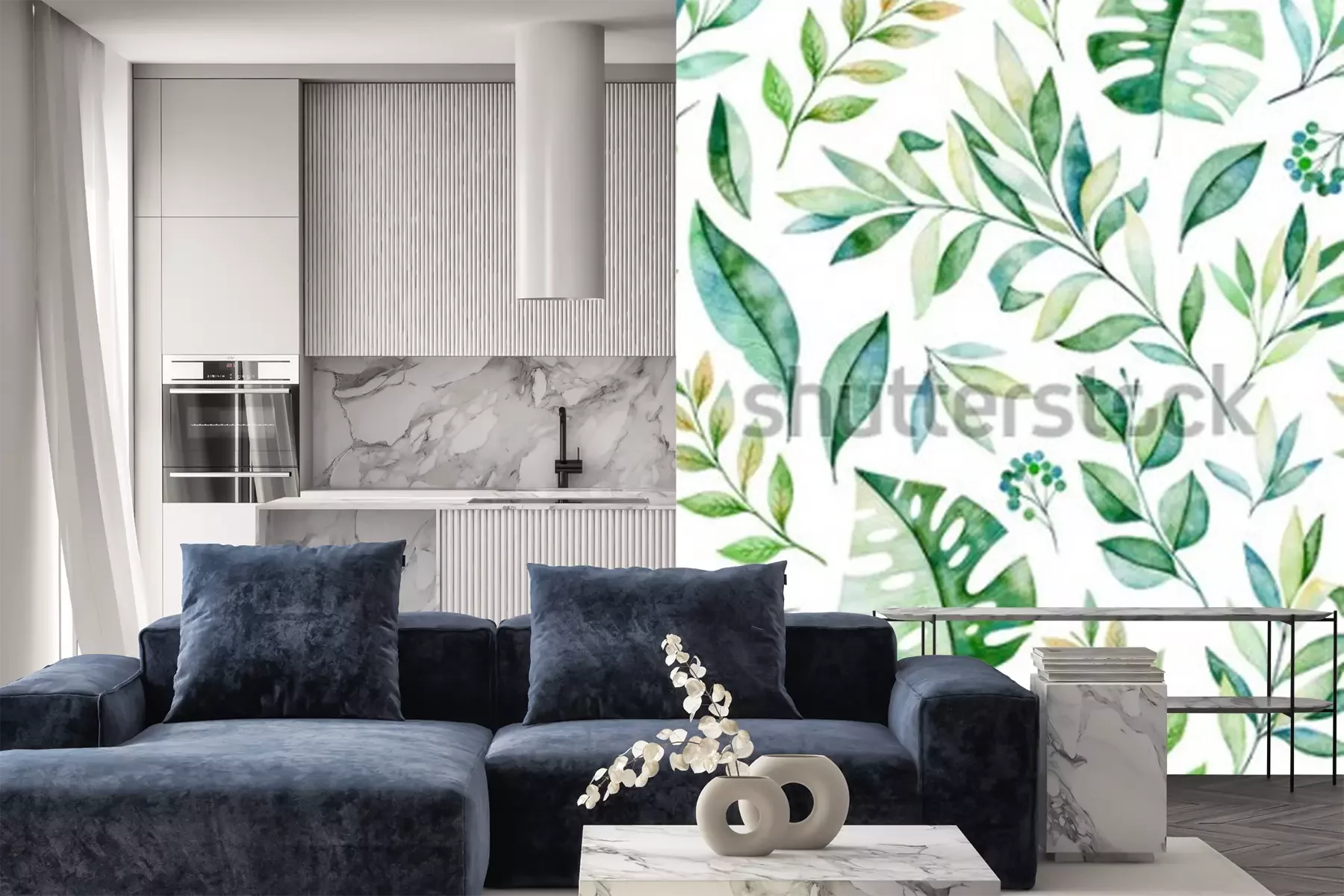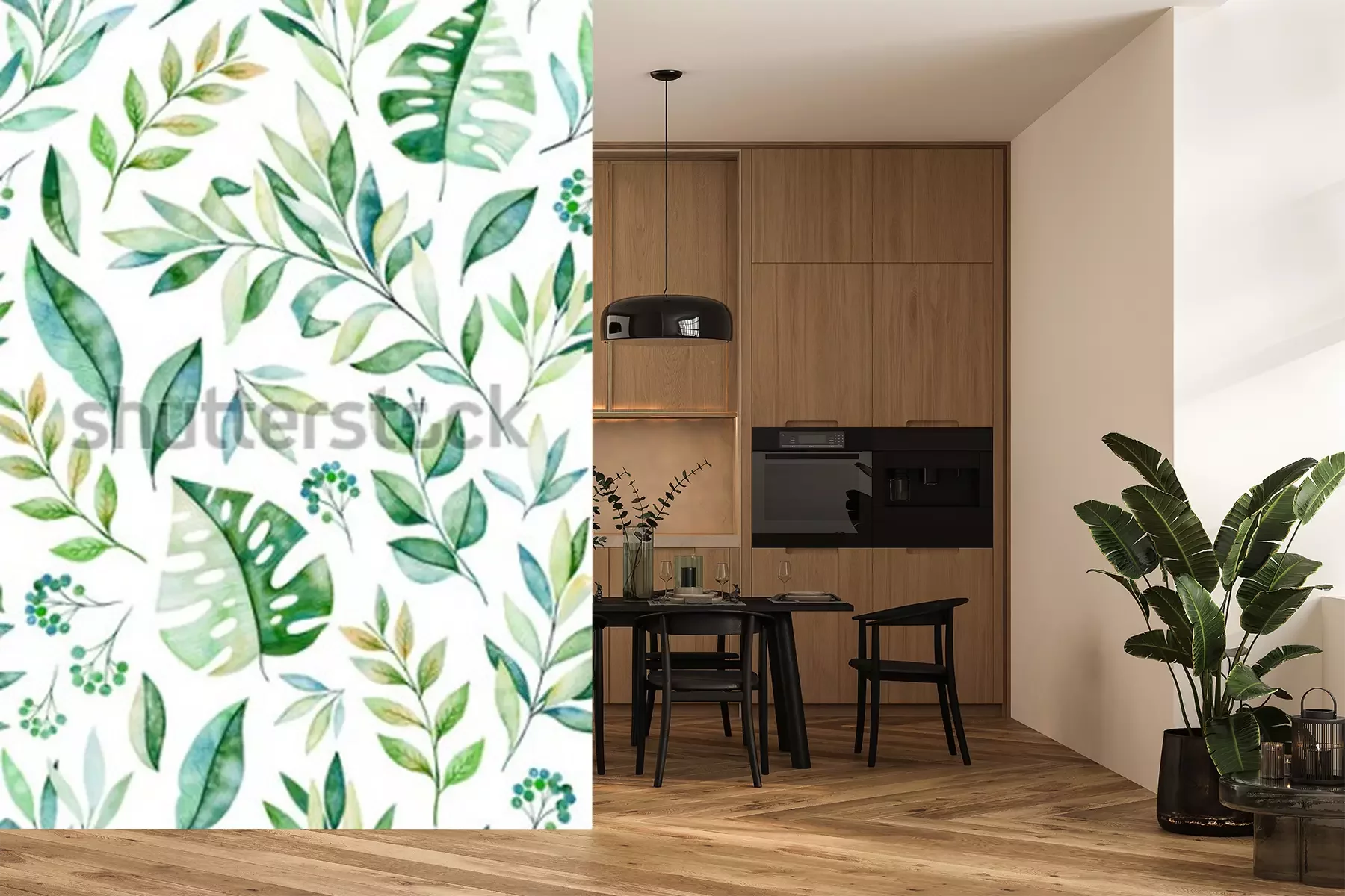 Sticker  Watercolors feuilles transparent motif de branche sur fond blanc. Texture avec les verts, les branches, les feuilles, les feuilles tropicales, le feuillage. Parfait pour le mariage, la conception de l