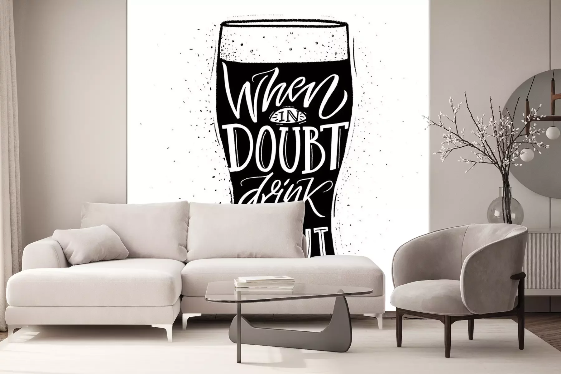 Sticker  When in doubt, drink a stout. Funny inspirational quote about beer with hand lettering for pubs, bars and t-shirt design. Black and whiite typographic design.