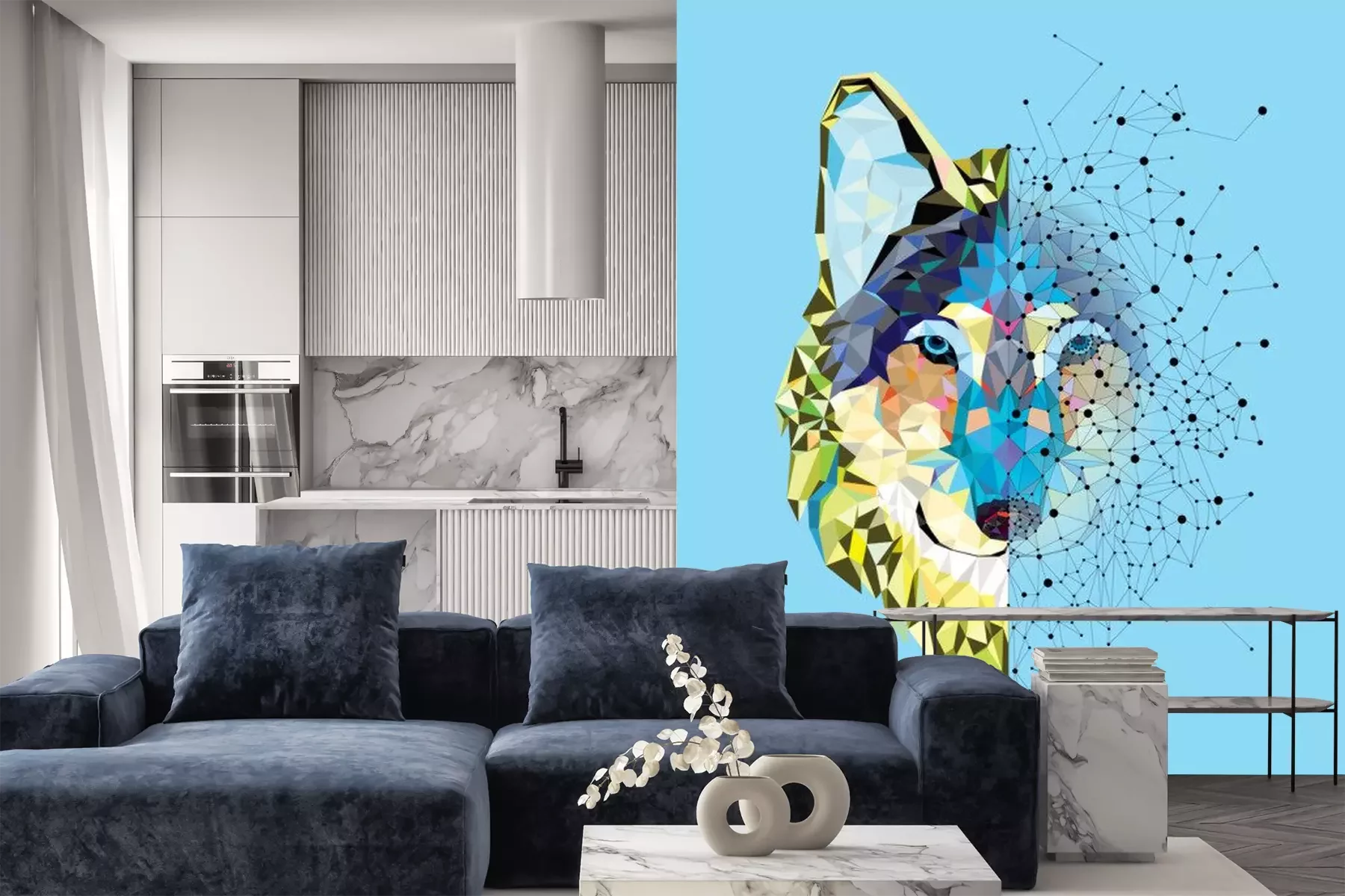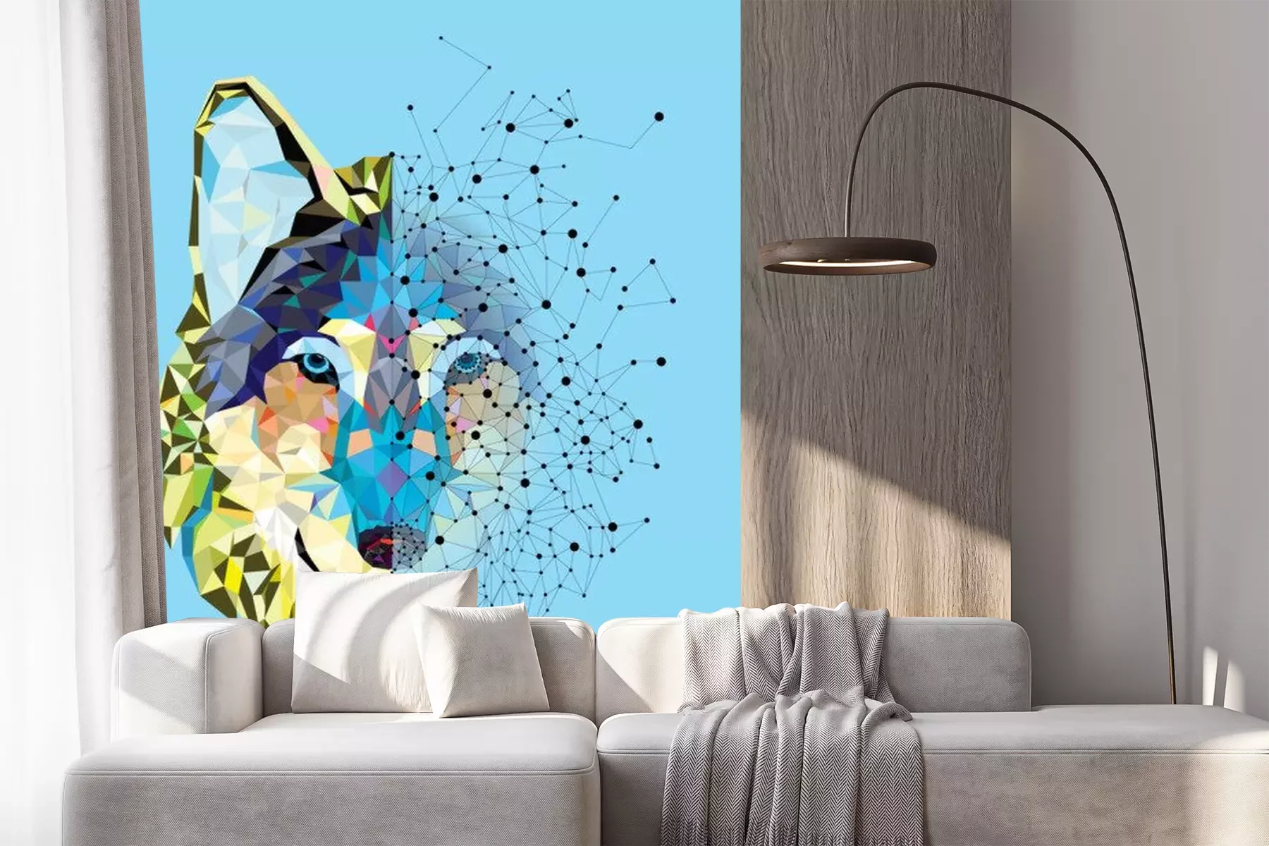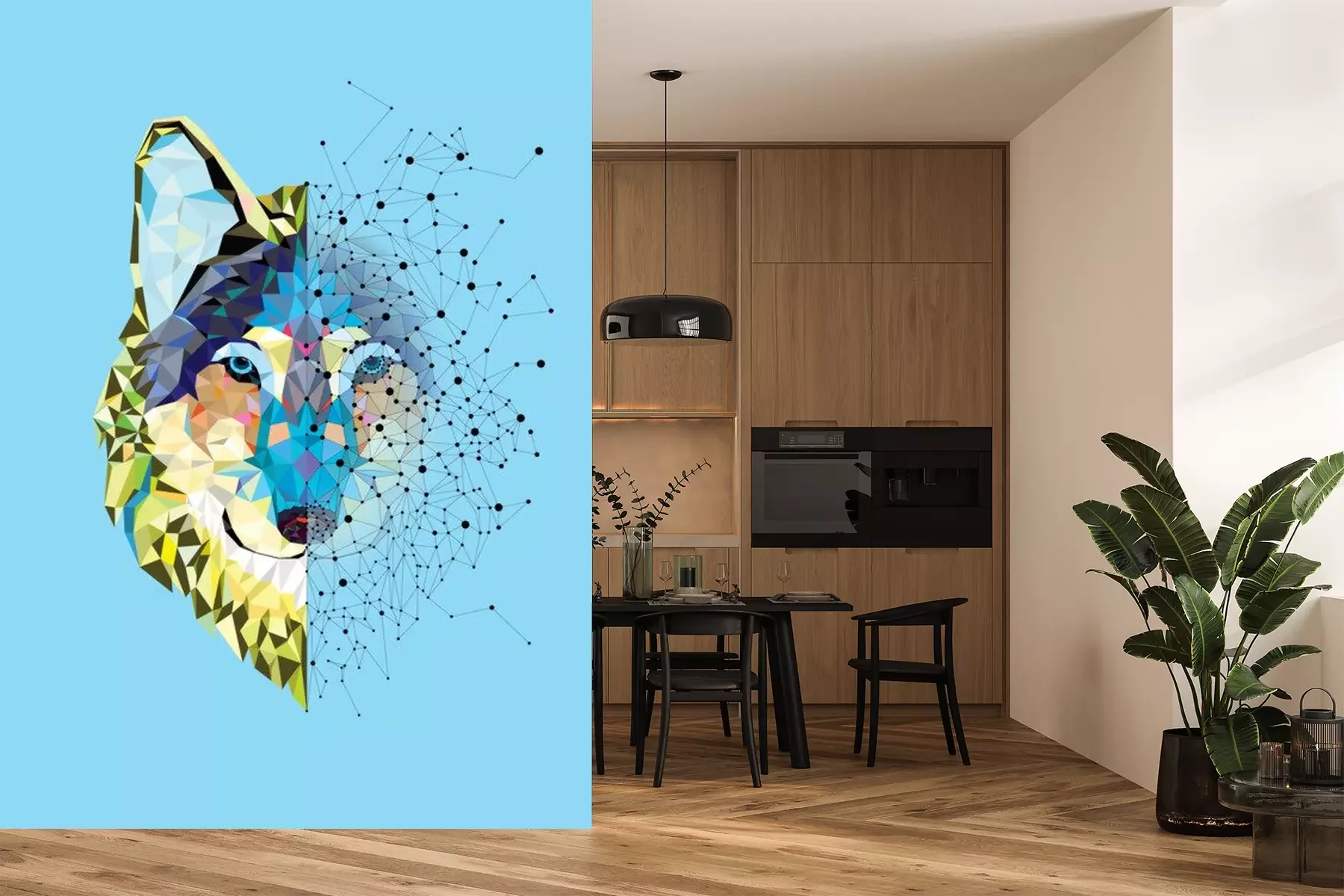 Sticker  Wolf en tête motif géométrique avec Starline vecteur