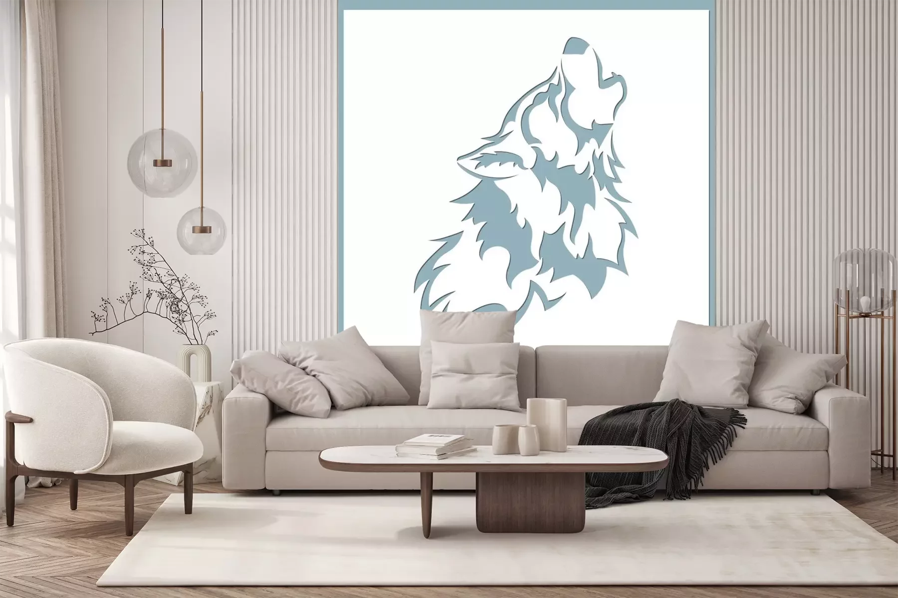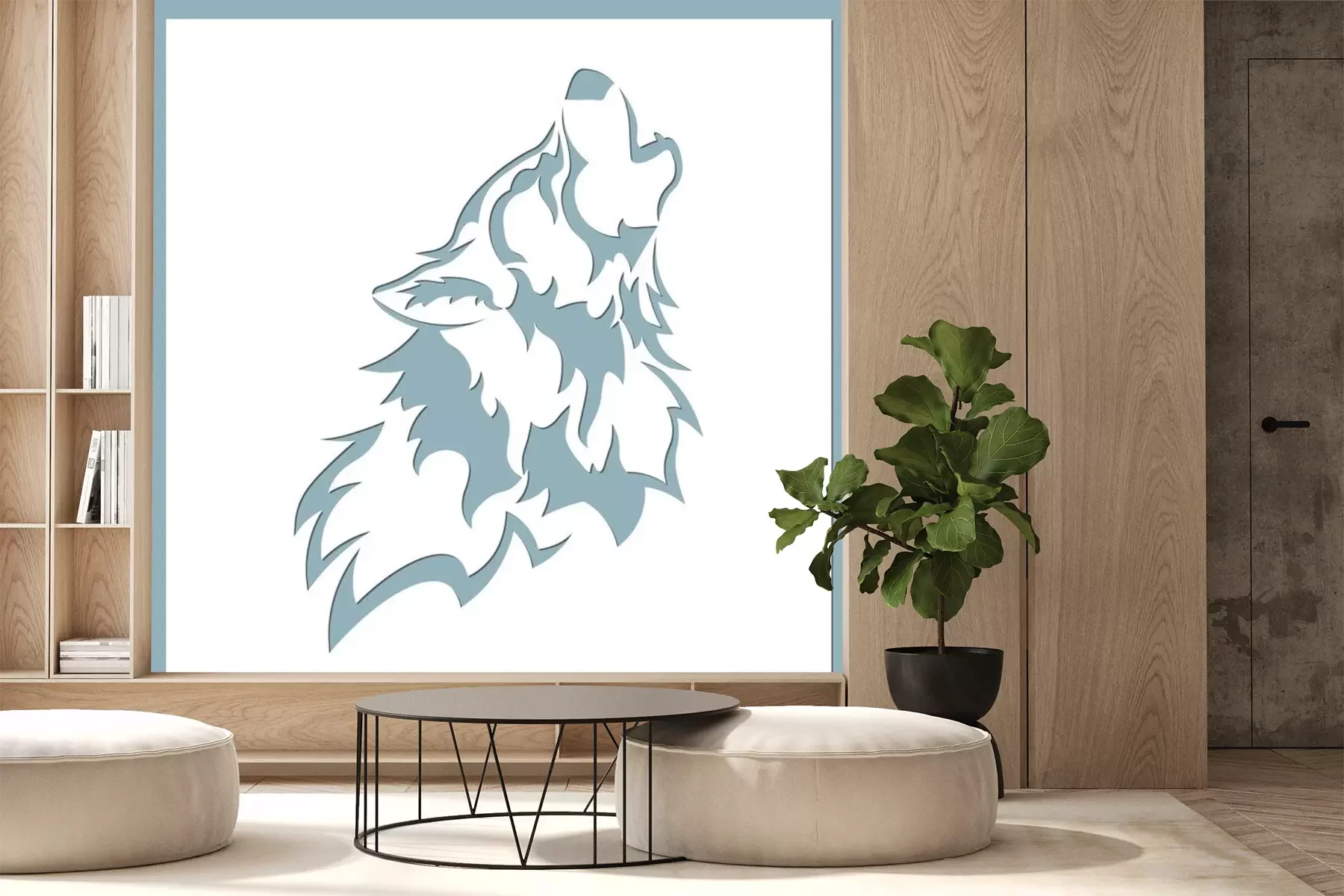 Sticker  Wolf vector illustration. Paper wolf sticker. Laser cut. Template for laser cutting and Plotter. Vector illustration. Sticker. Pattern for the laser cut, serigraphy, plotter and screen printing.